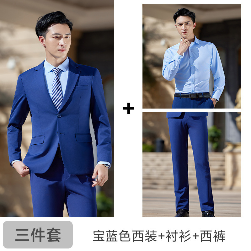 • 쓰리피스 슈트: 로얄 블루 남성 정장 + 블루 셔츠 + 바지