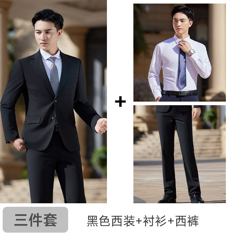 • 쓰리피스 슈트: 블랙 남성 정장 + 화이트 셔츠 + 바지