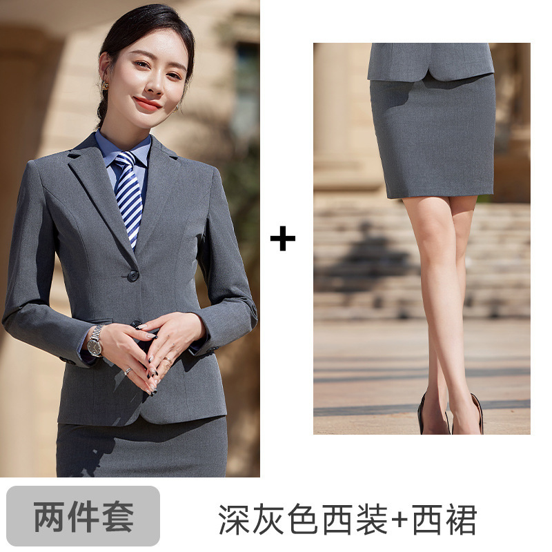 • 투피스 세트: 다크 그레이 여성 정장 + 스커트