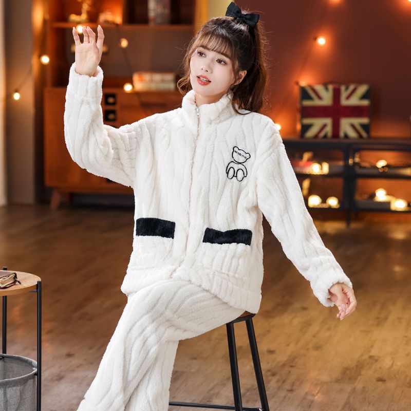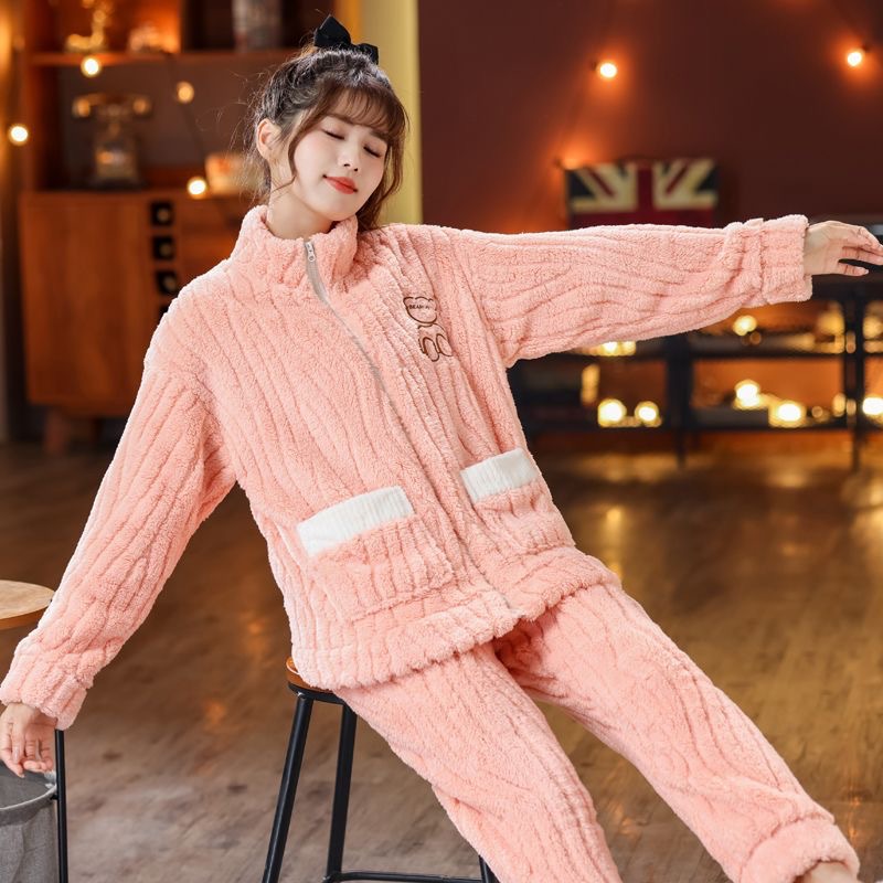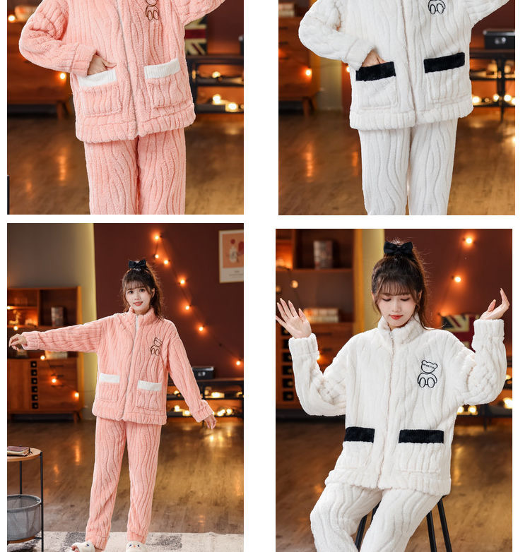 산호 양털 파자마 겨울 두꺼운 외부 착용 귀여운 패션 긴 홈 의류 파자마 높은 가치 홈 의류 세트스토어 가기