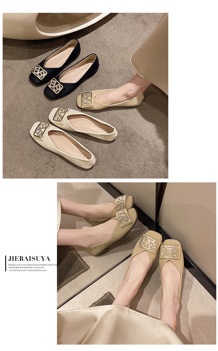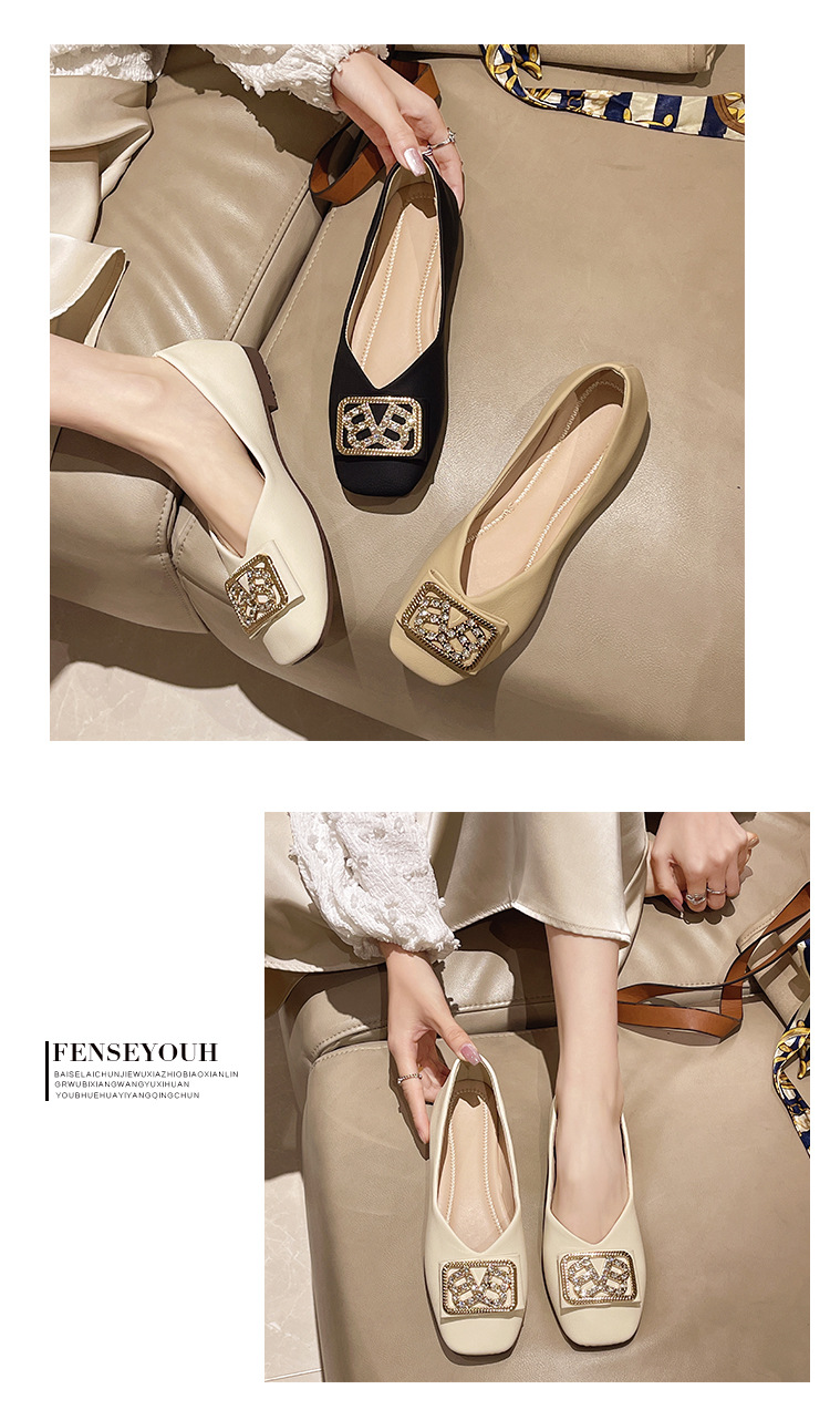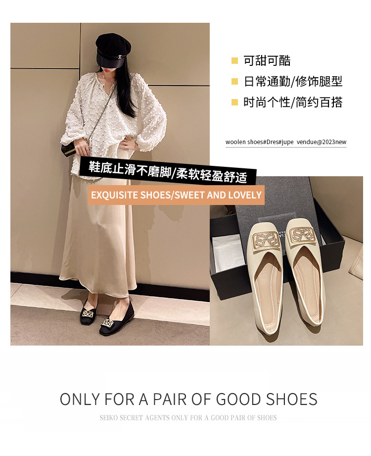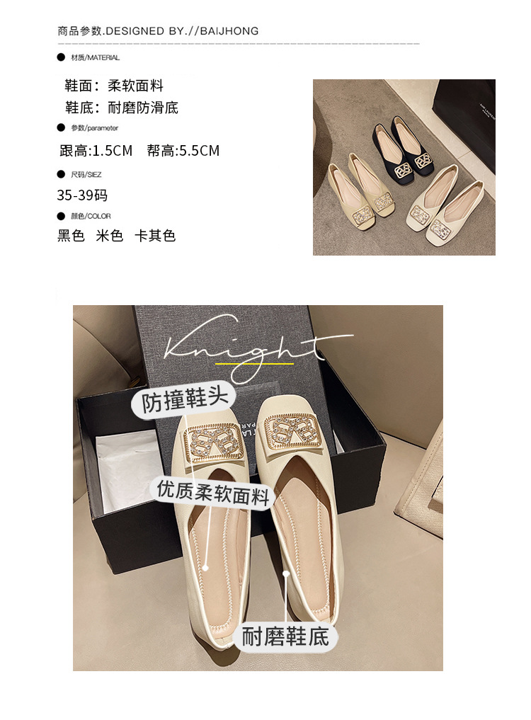 2024 년 봄과 가을을위한 여성용 플랫 신발 새로운 도착 얕은 입 올매치 포시즌 여성 신발 플러스 사이즈 더그 슈즈 스퀘어 젖꼭지 신발스토어 가기