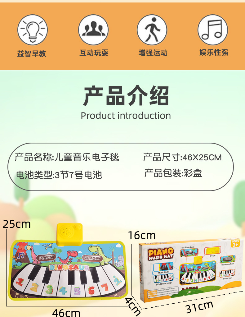 국경 새로운 어린이 음악 담요 발 피아노 게임 매트 퍼즐 조기 교육 장난감 아기 등반 매트스토어 가기