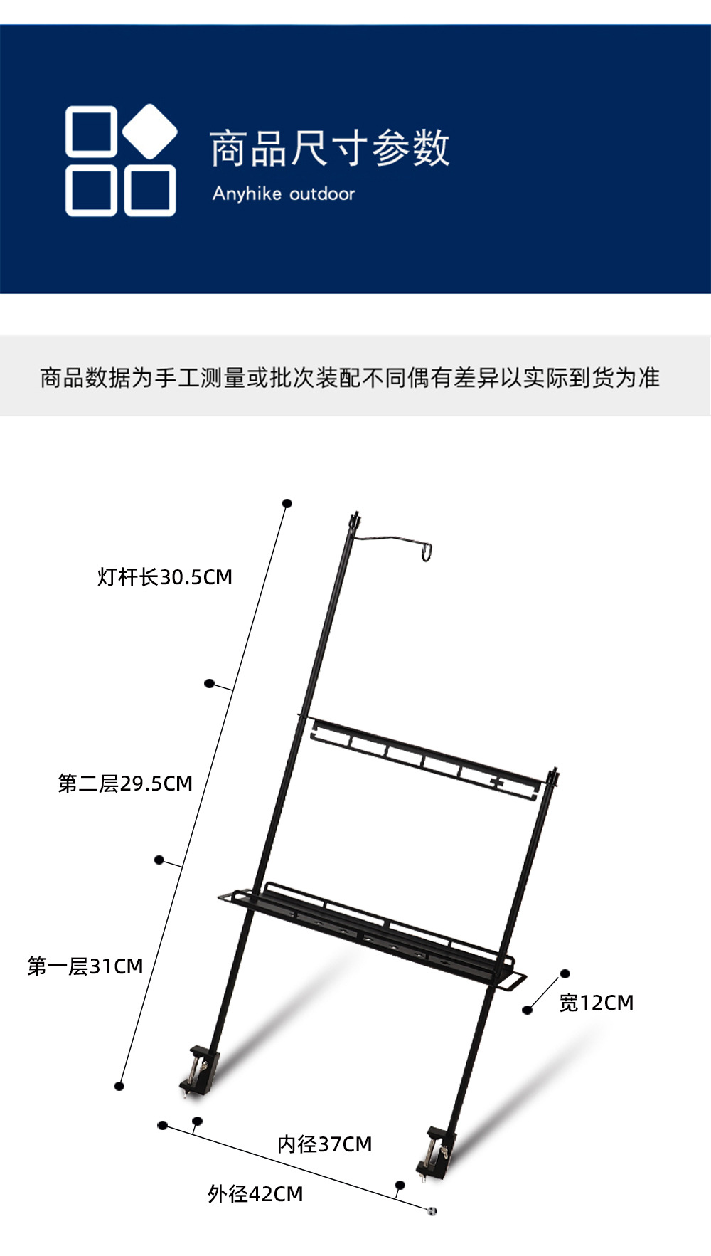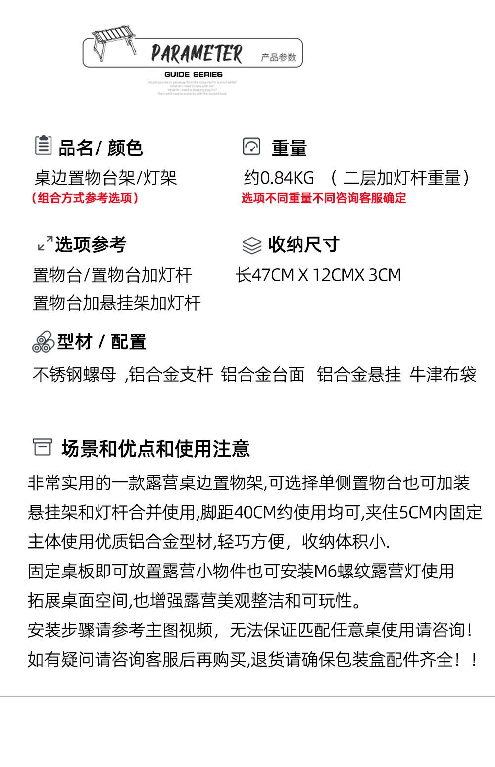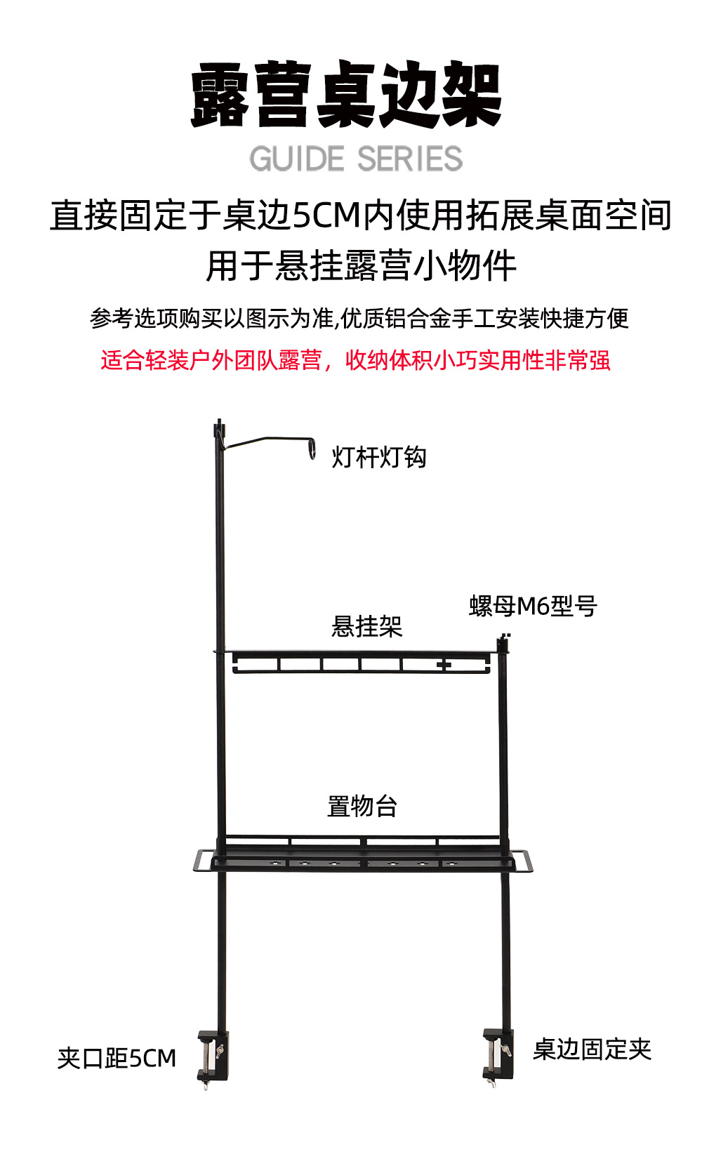 Shan Ye Bulin 가이드 시리즈 야외 캠핑 접이식 피크닉 테이블 사이드 액세서리 스토리지 랙 라이트 폴 교수형 랙스토어 가기