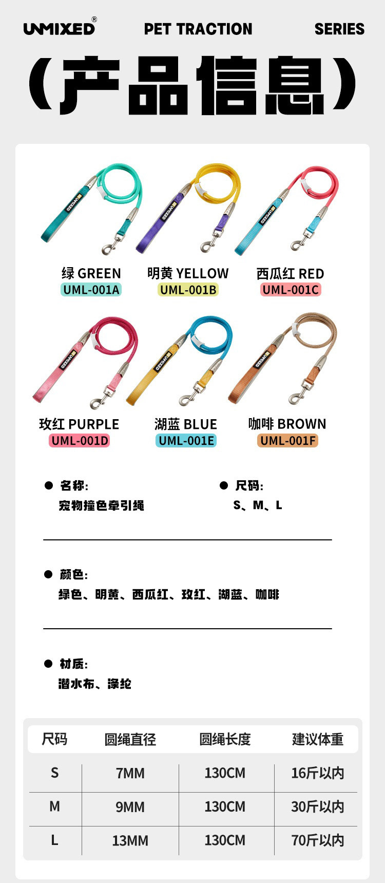 Unmixed contrast Color Dog Leash Chest Strap Collar Dog Leash 크고 작은 개 테디 골든 리트리버 개 워킹 가죽