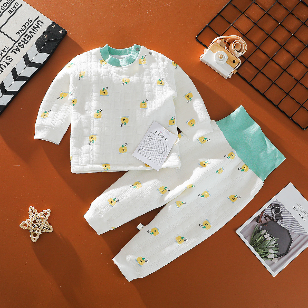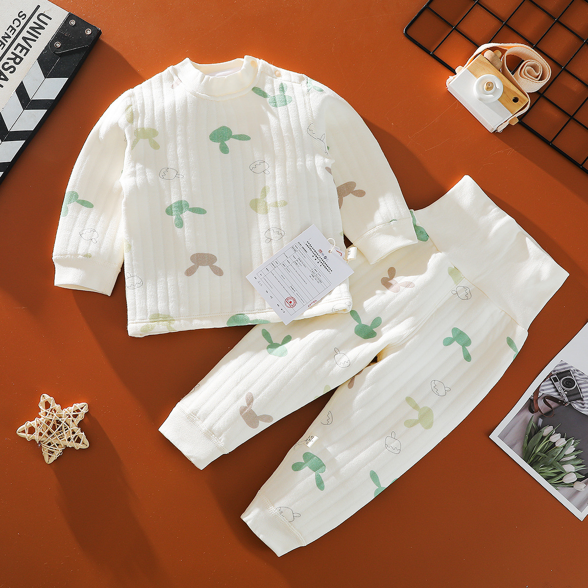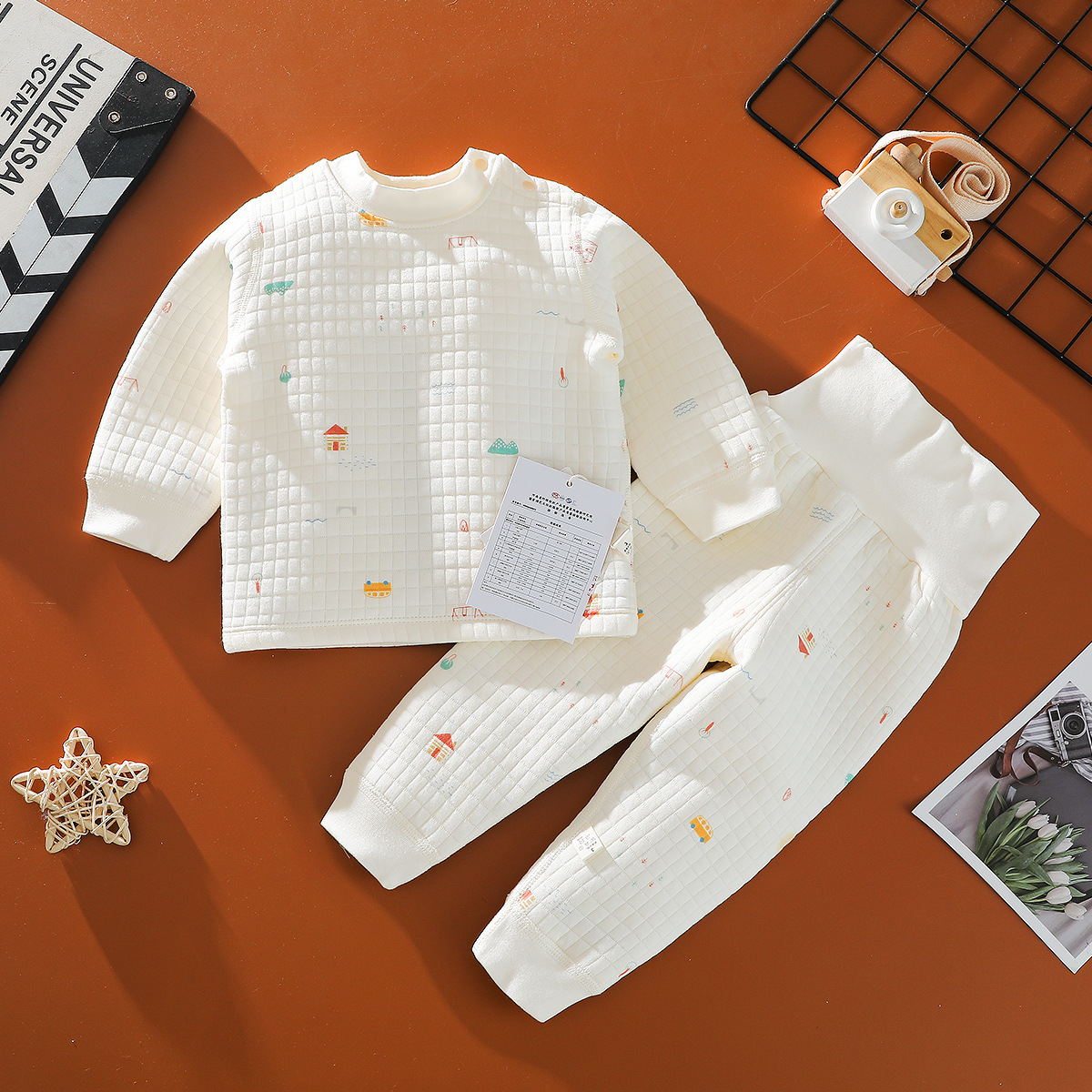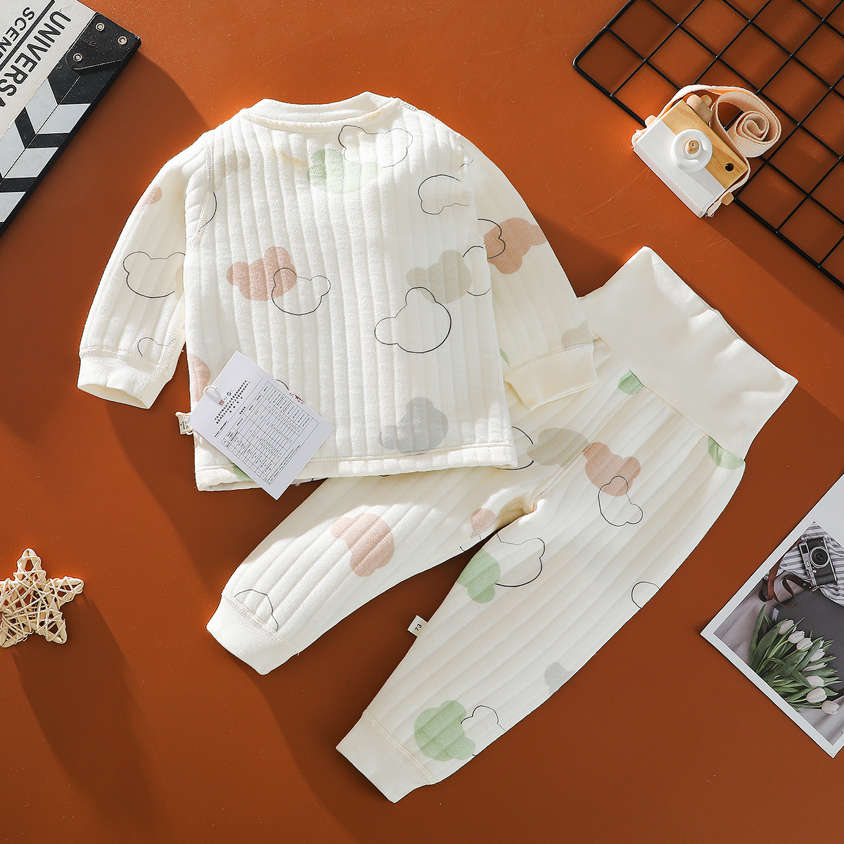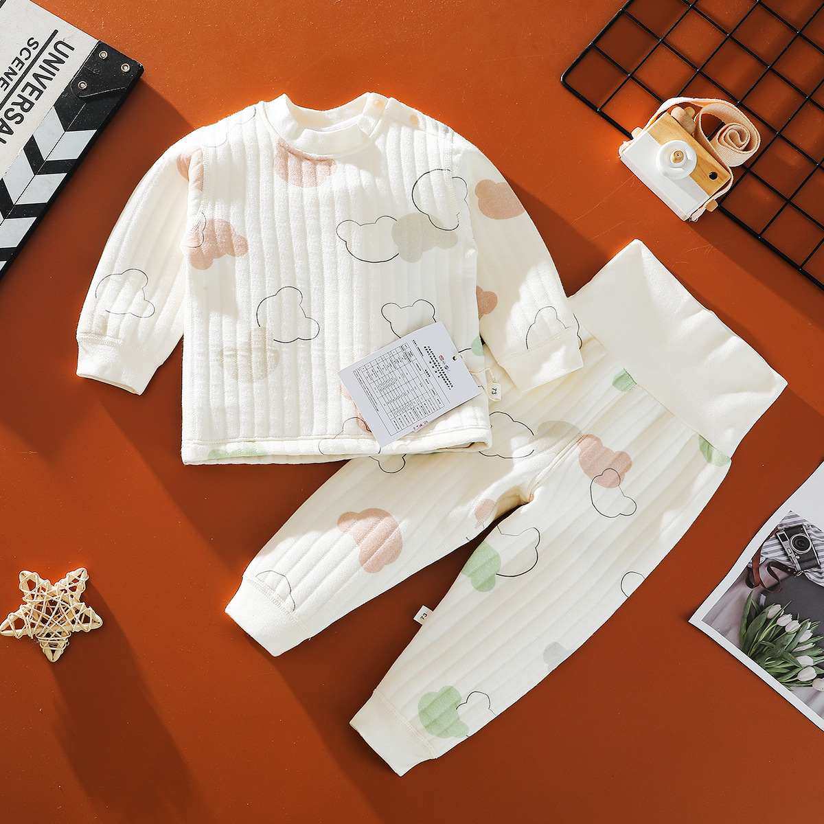 [뼈없는 따뜻한 면] A 급 아기 두꺼운 높은 허리 배 바지 세트 아기 면 속옷 얇은 면 가을 옷