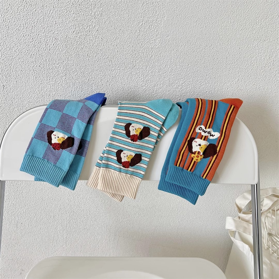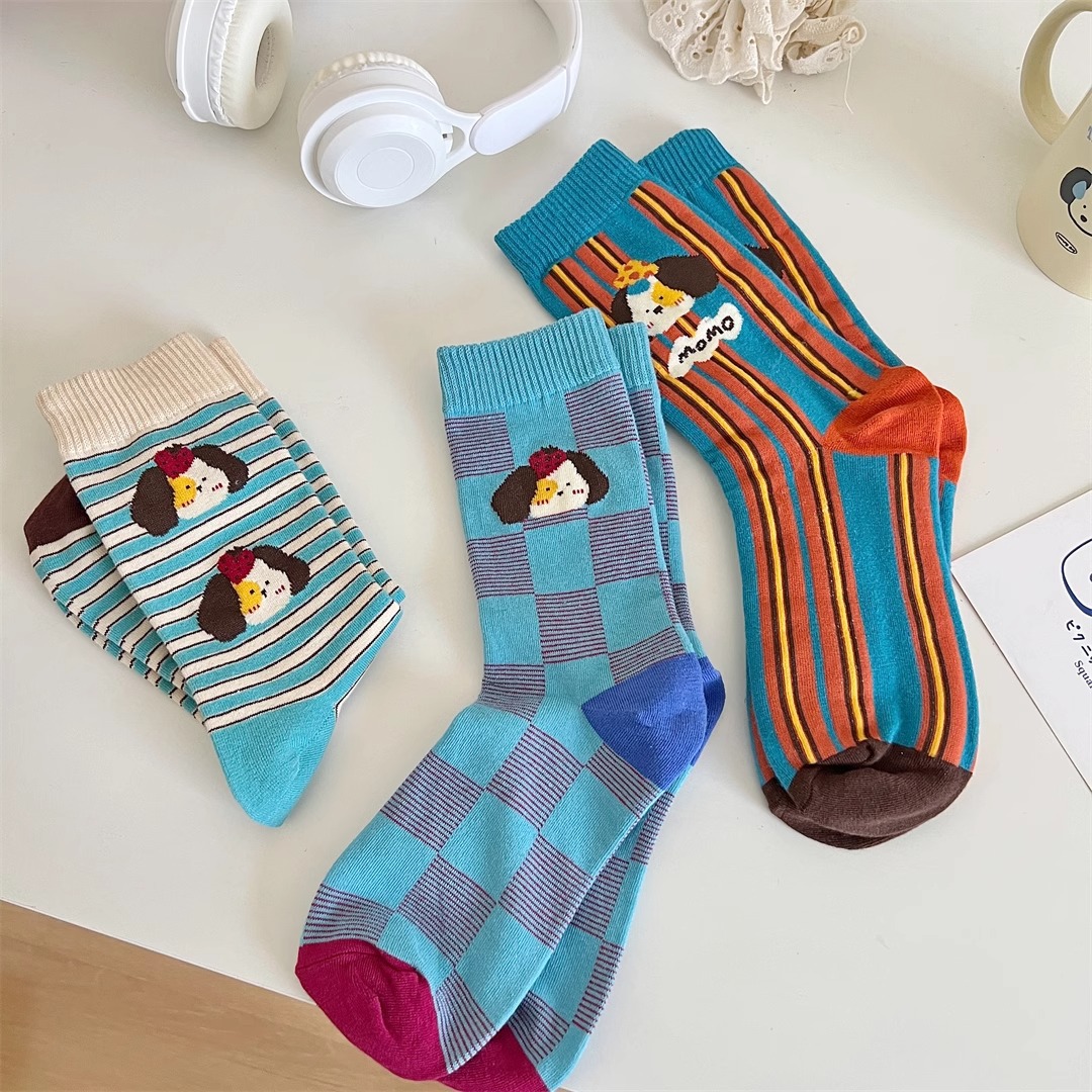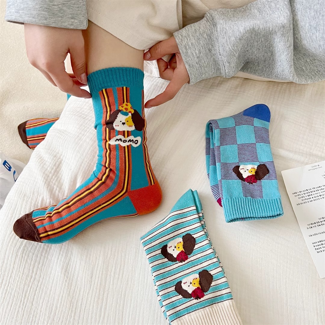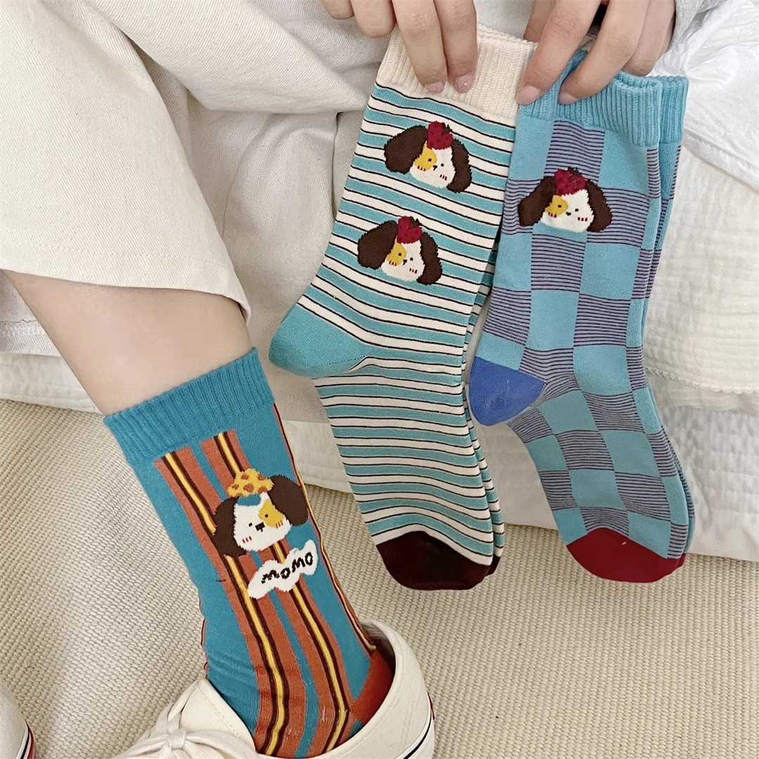 양말 여성의 봄과 가을 Ins 트렌디 한 일본 스타일 귀여운 만화 강아지 스트라이프 대학 스타일 스타킹