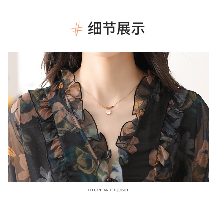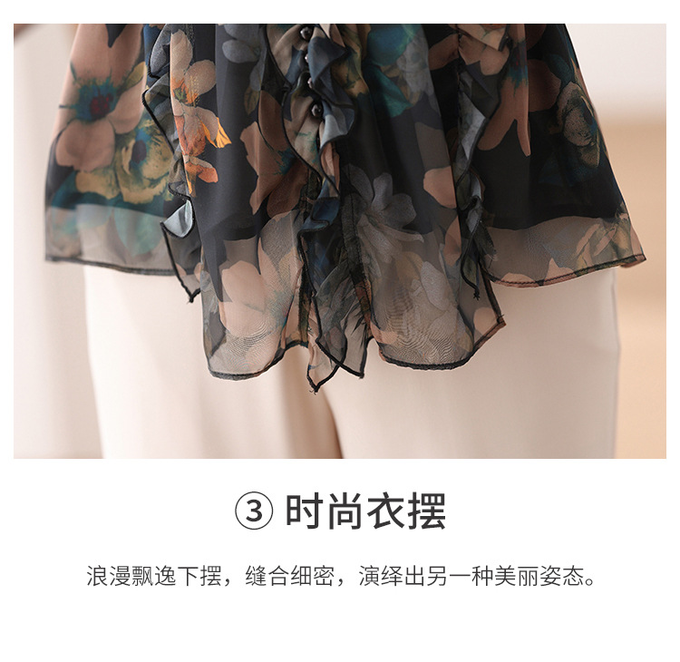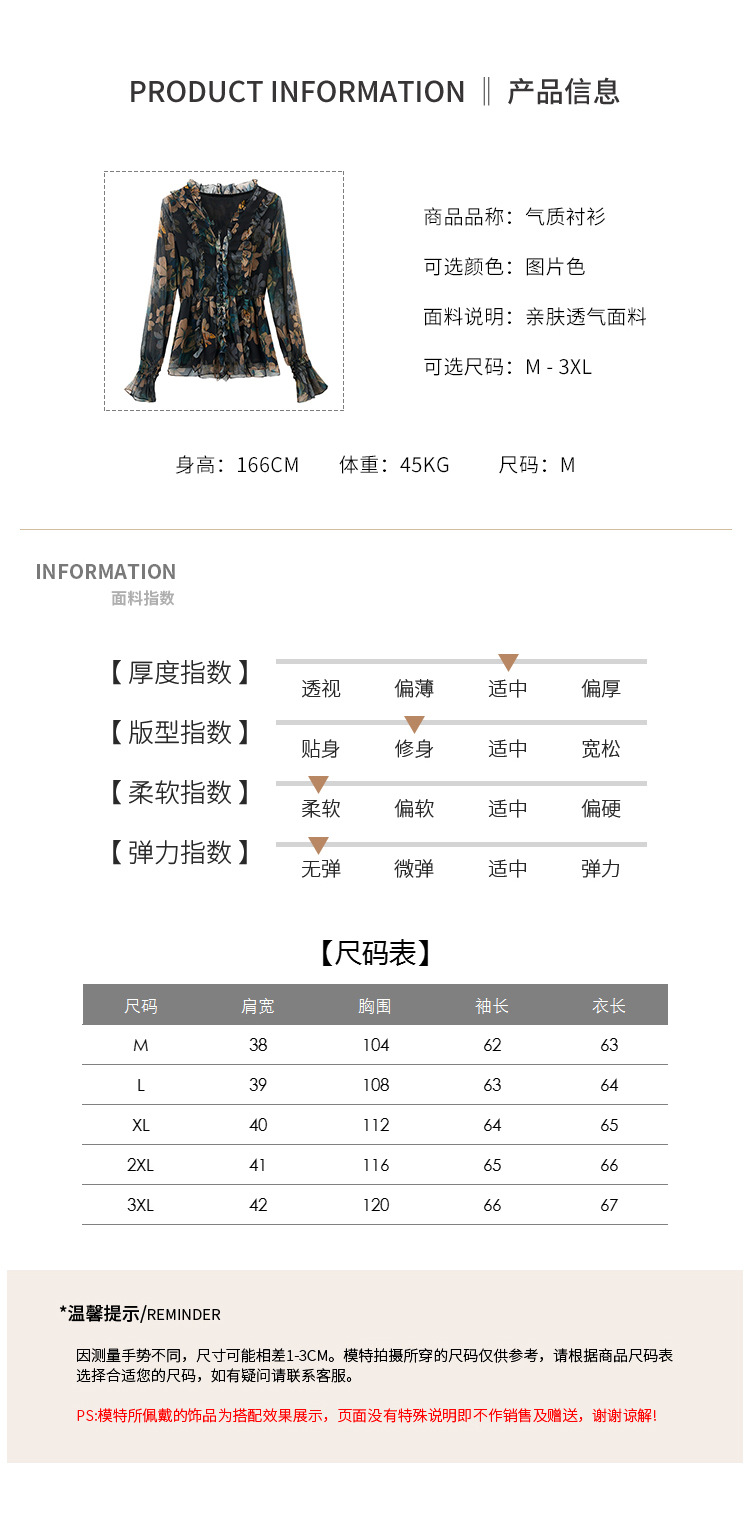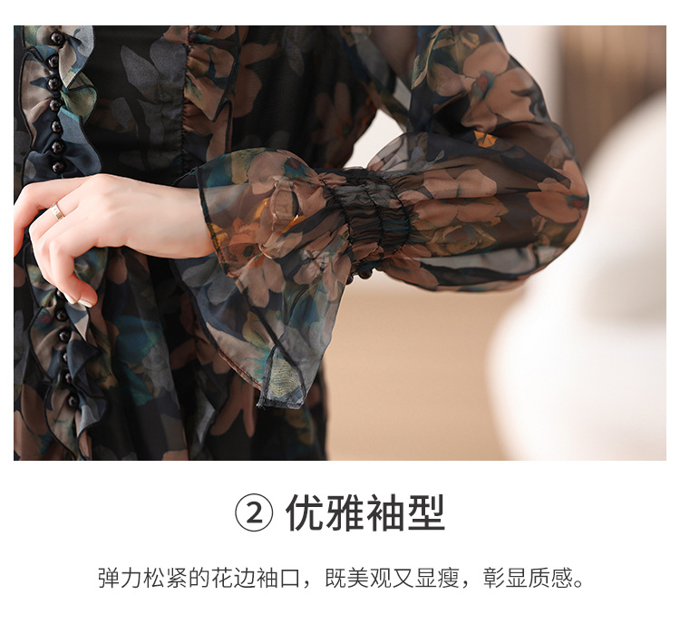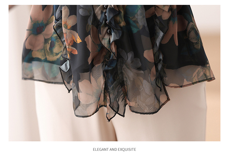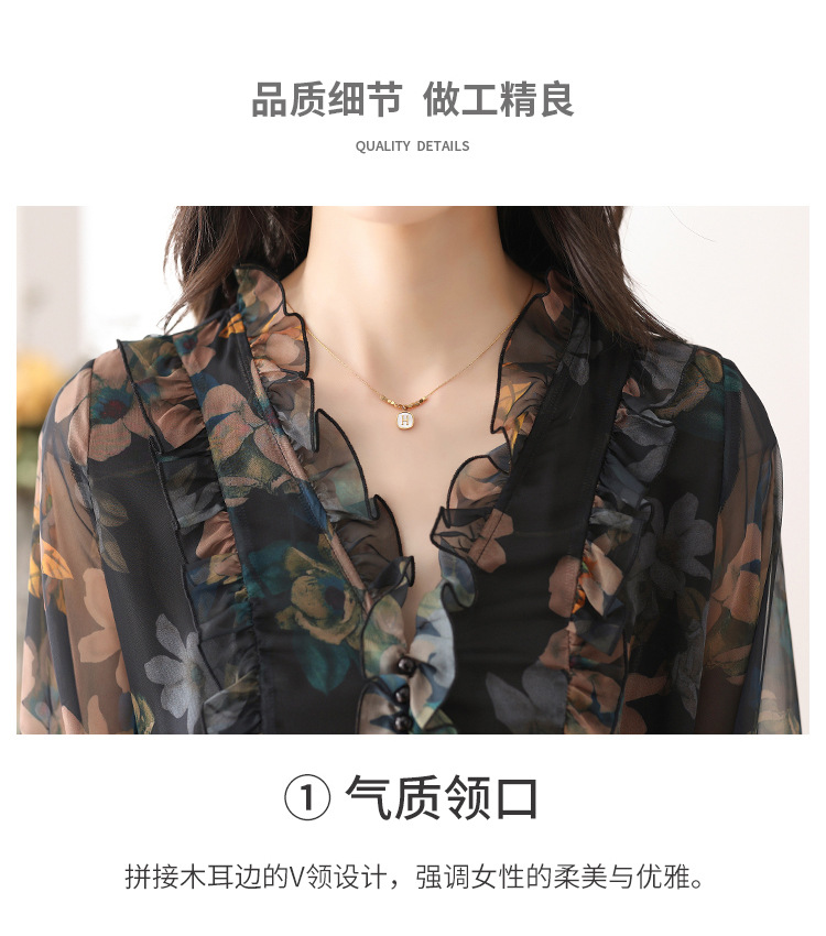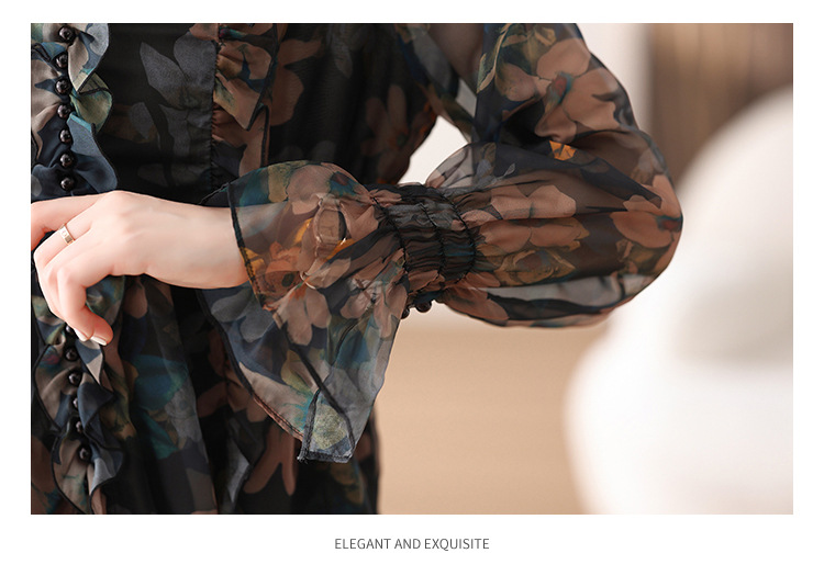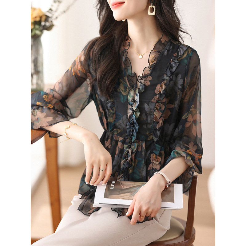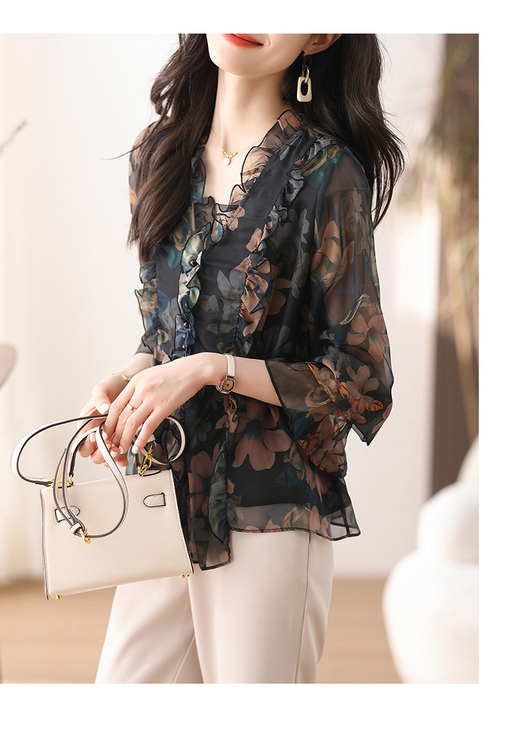 가을과 겨울 배 뒤덮인 슬리밍 꽃 셔츠 허리-단단한 외국 스타일 V-넥 트럼펫 슬리브 러플 쉬폰 탑스토어 가기