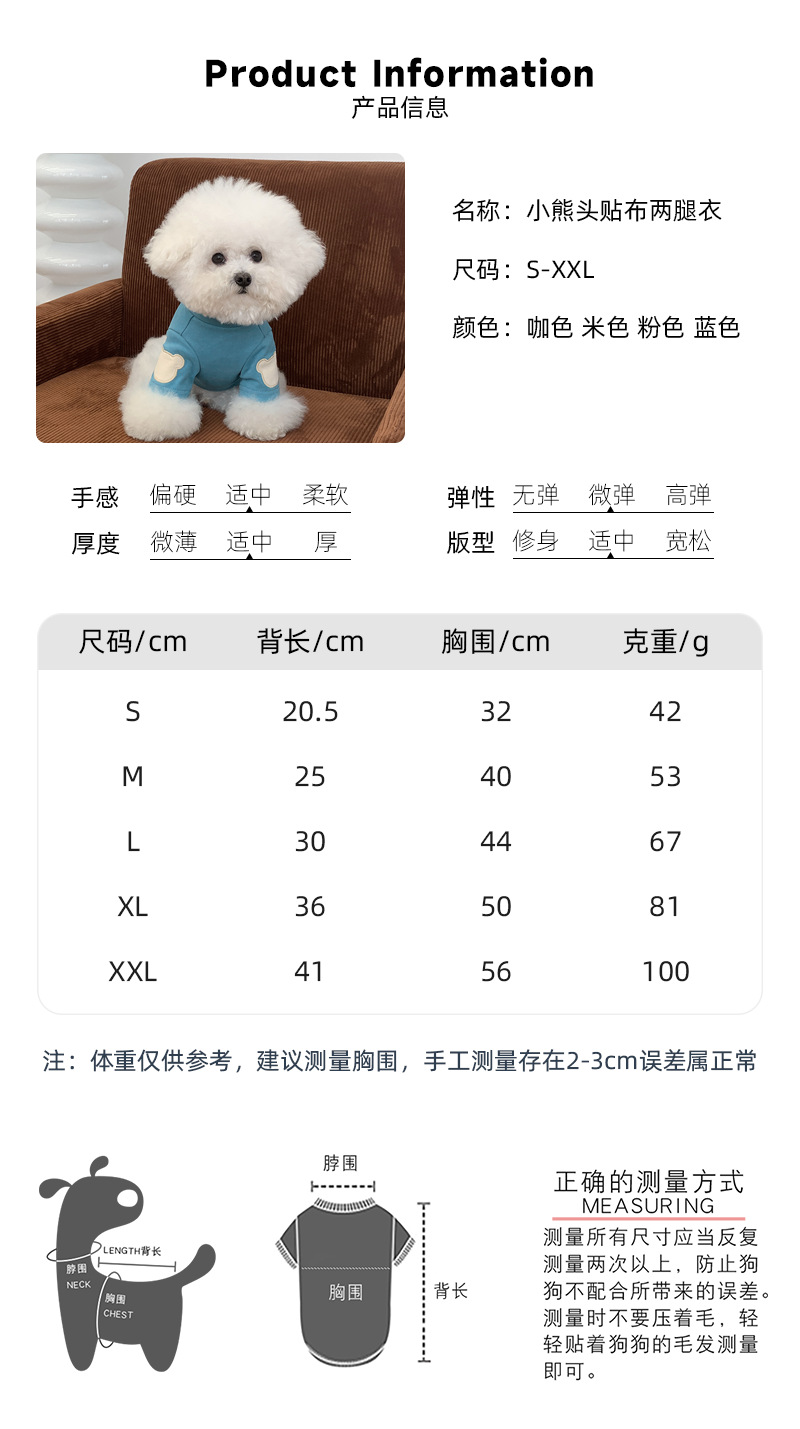 큐파이 애완동물 가을 겨울용 곰돌이 모양 이너웨어 비숑 테디 소형견 의류