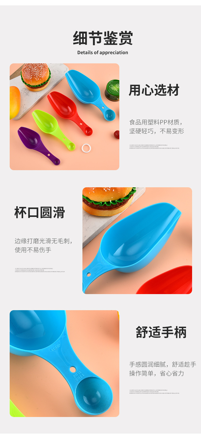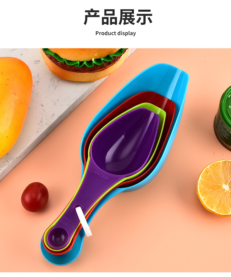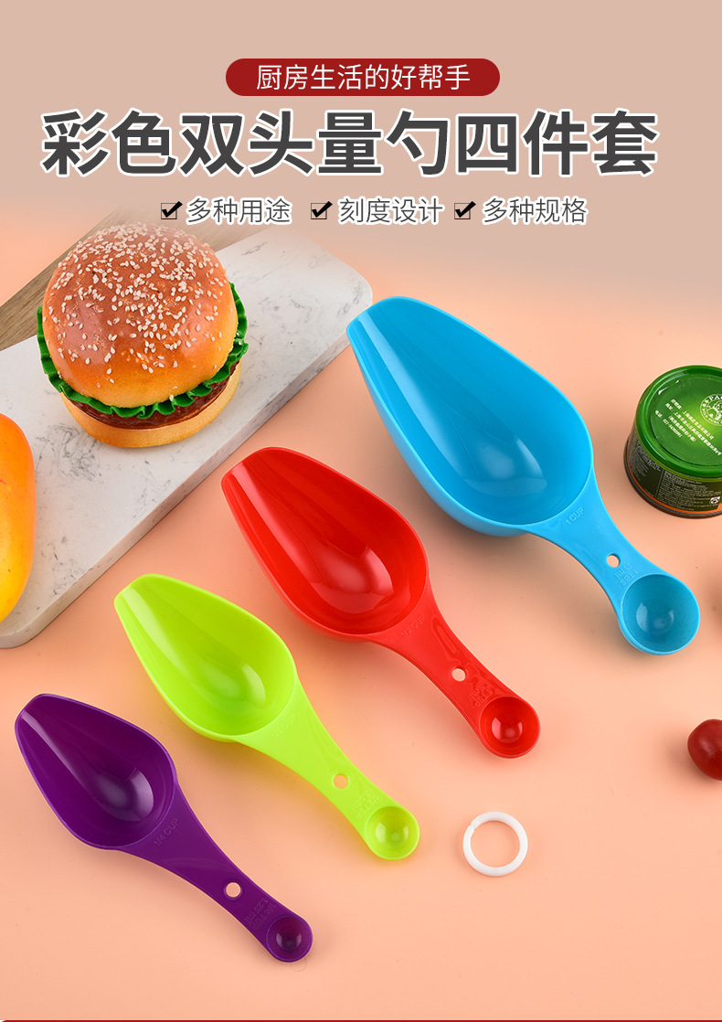 컬러 양두 측정 숟가락 4 피스 세트 플라스틱 비늘 부엌 쌀가루 삽 콩 멜론 씨앗 음식 삽스토어 가기