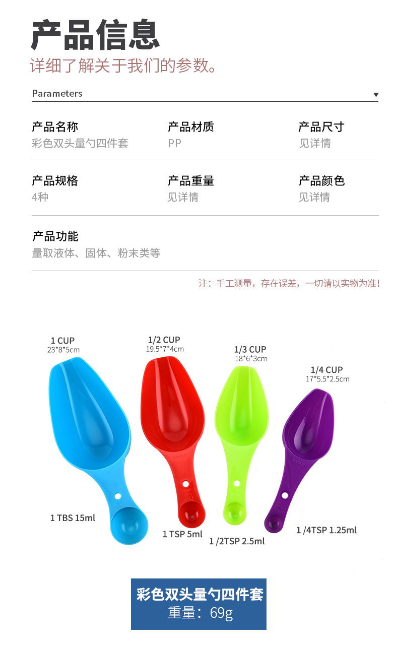 컬러 양두 측정 숟가락 4 피스 세트 플라스틱 비늘 부엌 쌀가루 삽 콩 멜론 씨앗 음식 삽