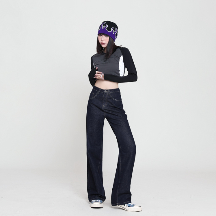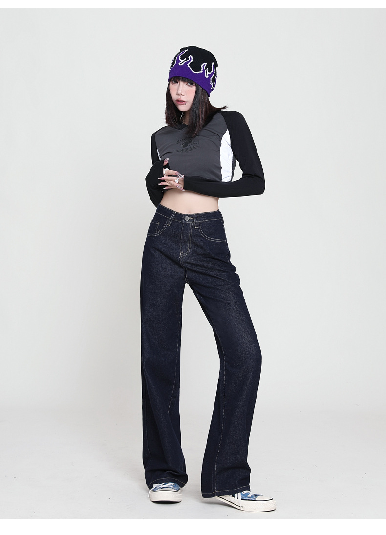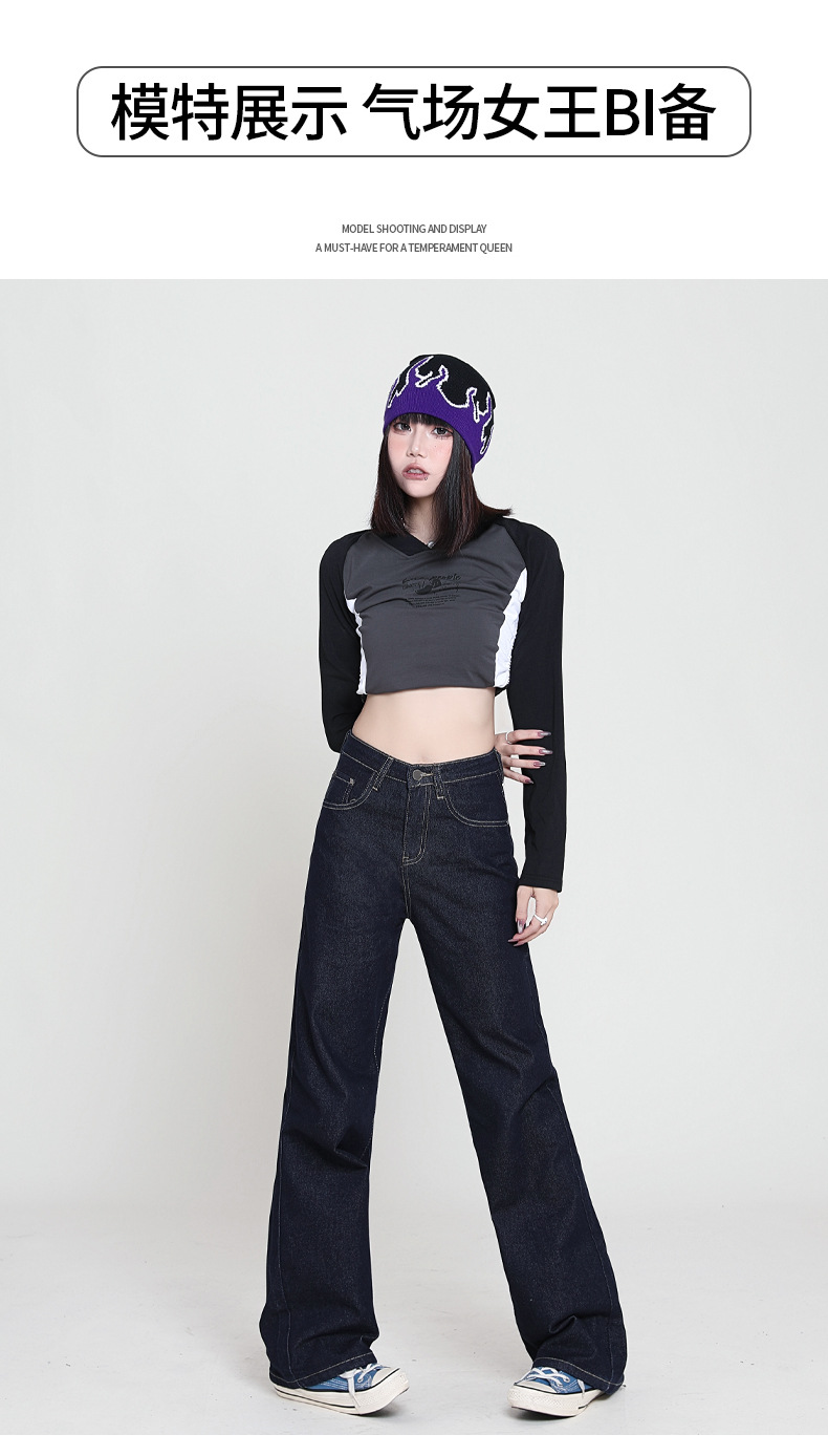가을 폭발 넓은 다리 바지 여성의 가을 색상없는 부드러운 높은 허리 슬림 넓은 다리 랩 청바지 여성의 가을과 겨울스토어 가기
