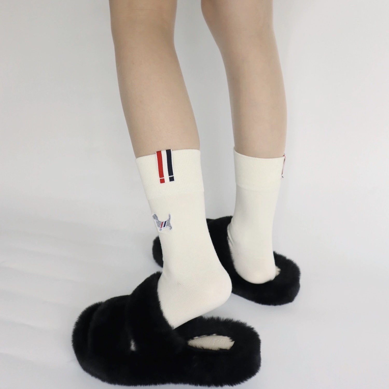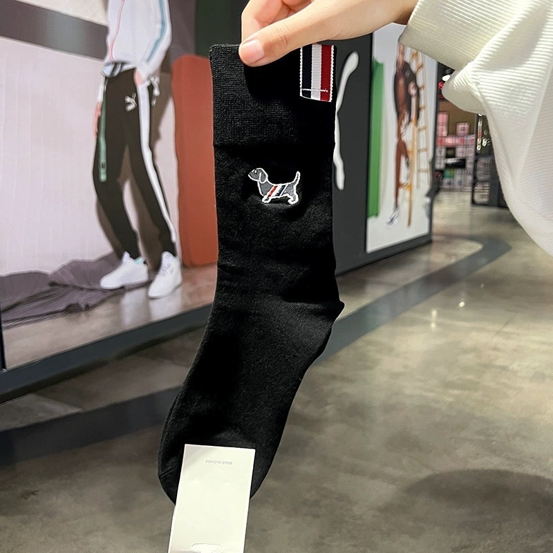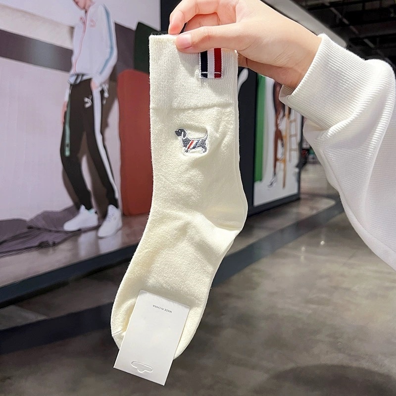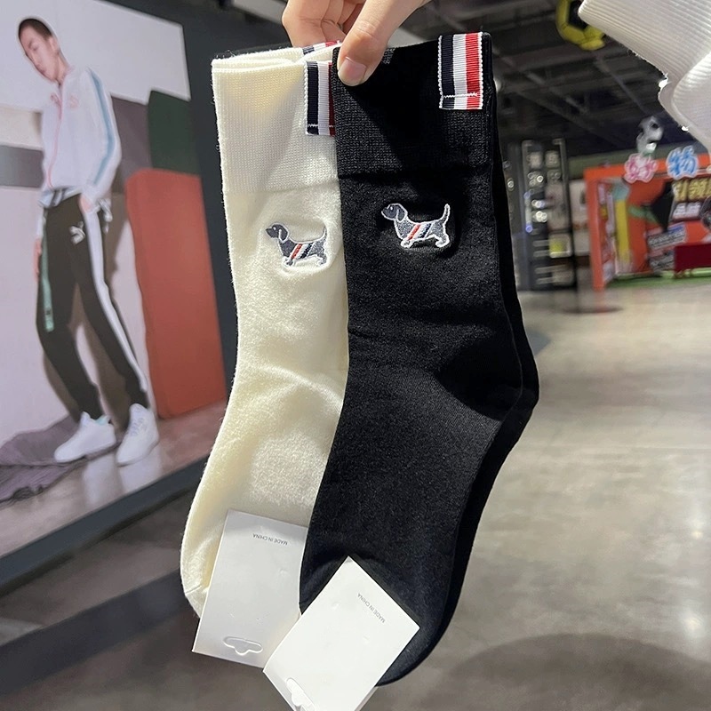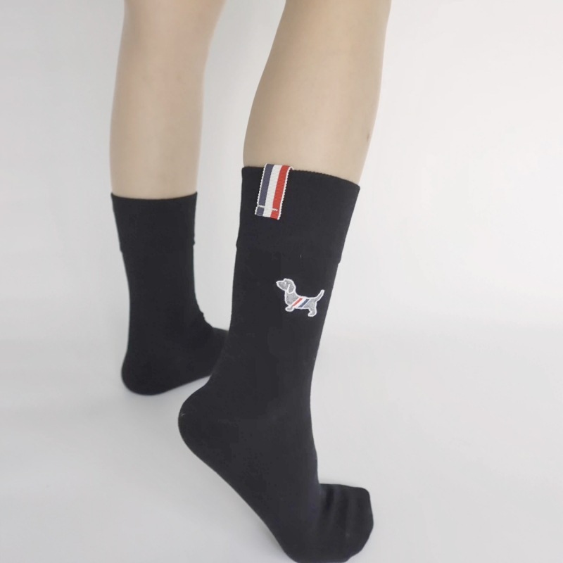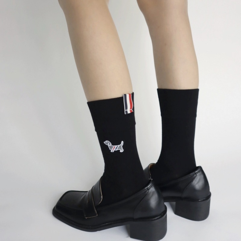 유럽 트렌디 브랜드 강아지 자수 미드 튜브 양말 틈새 영국 흑백 양말 남성 및 여성 유행 스택 양말