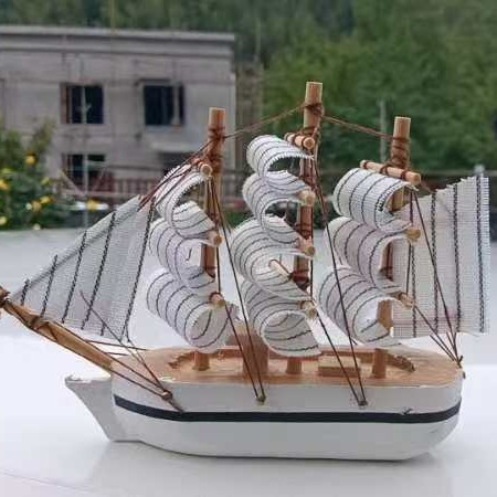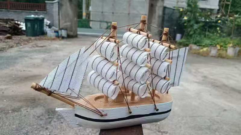 14公分无托底帆船-------白船白条纹帆船---------现货直发