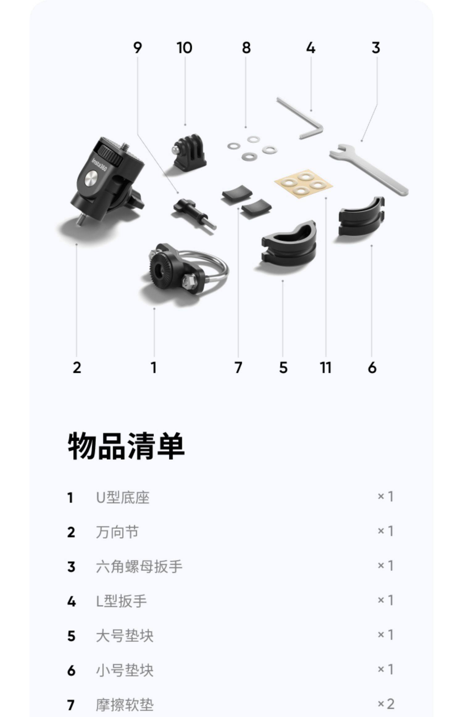 影石Insta360全新转向结构设计 新版摩托车尾杆套装配件