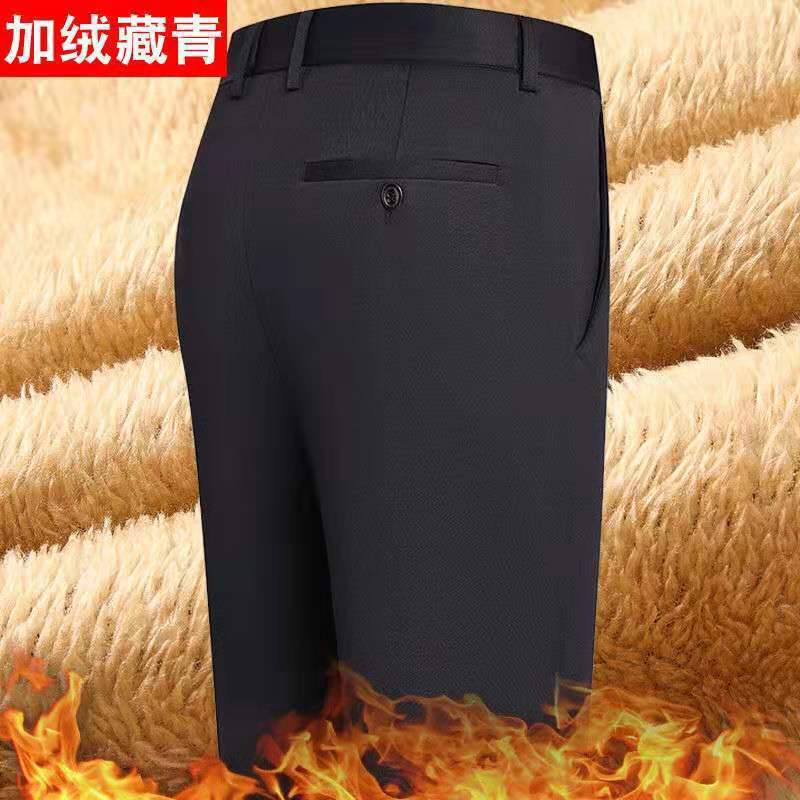 가을과 겨울 남자의 스트레치 캐주얼 바지 기모 바지 두꺼운 바지 플러스 사이즈 웨스턴 바지 뚱뚱한 남자 바지