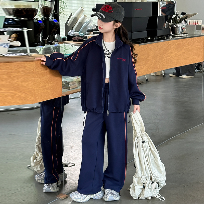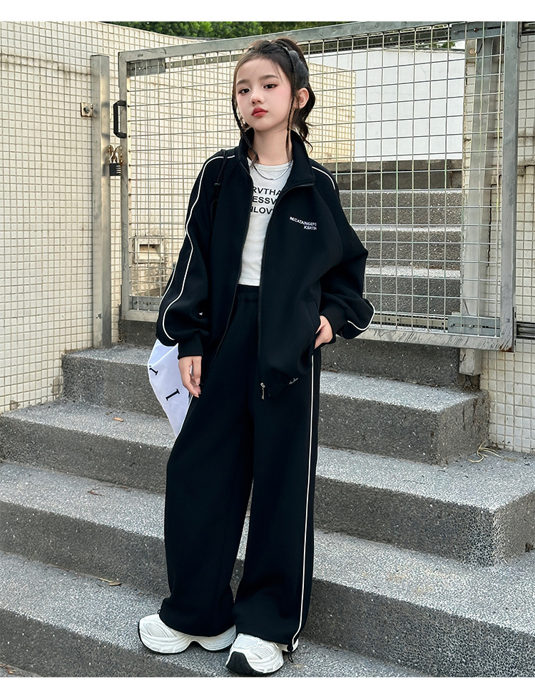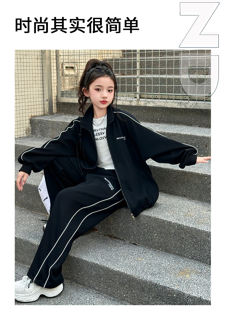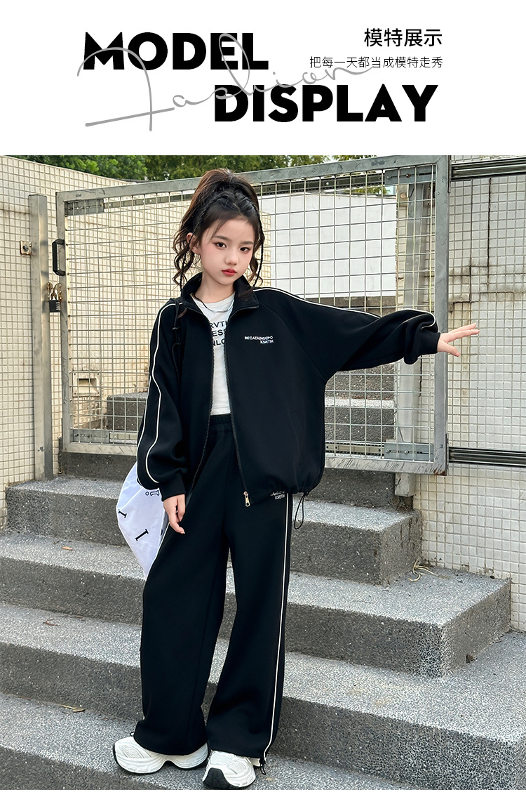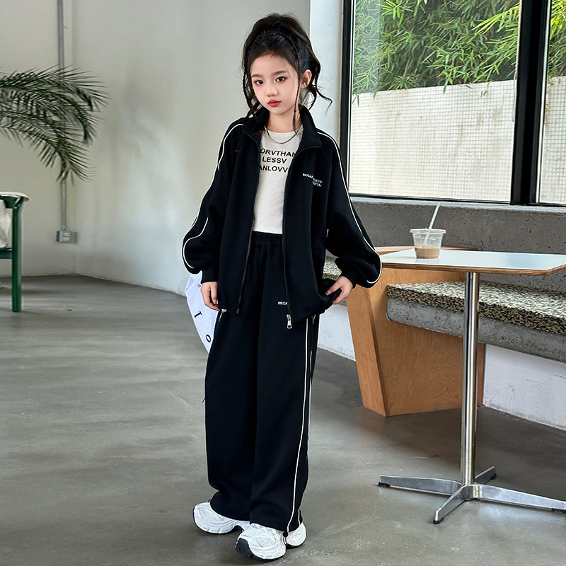 소녀 가을 원피스 세트 2024 새로운 어린이 서양식 한국 스타일 유행 소녀의 봄과 가을 캐주얼 스포츠 투피스 세트