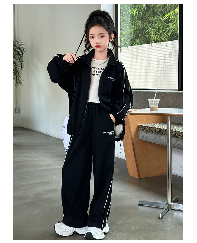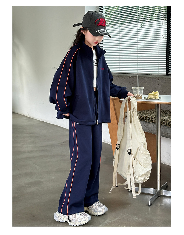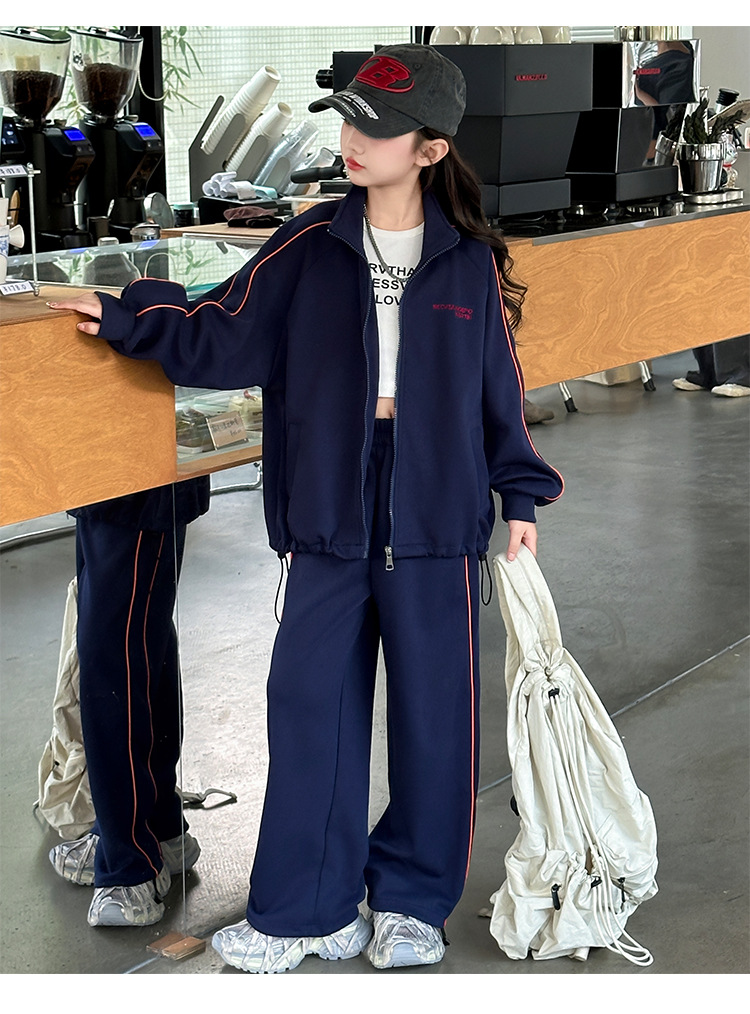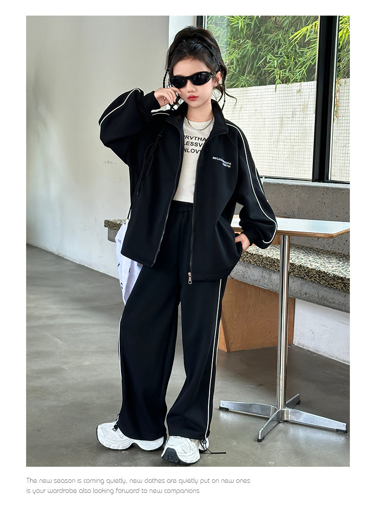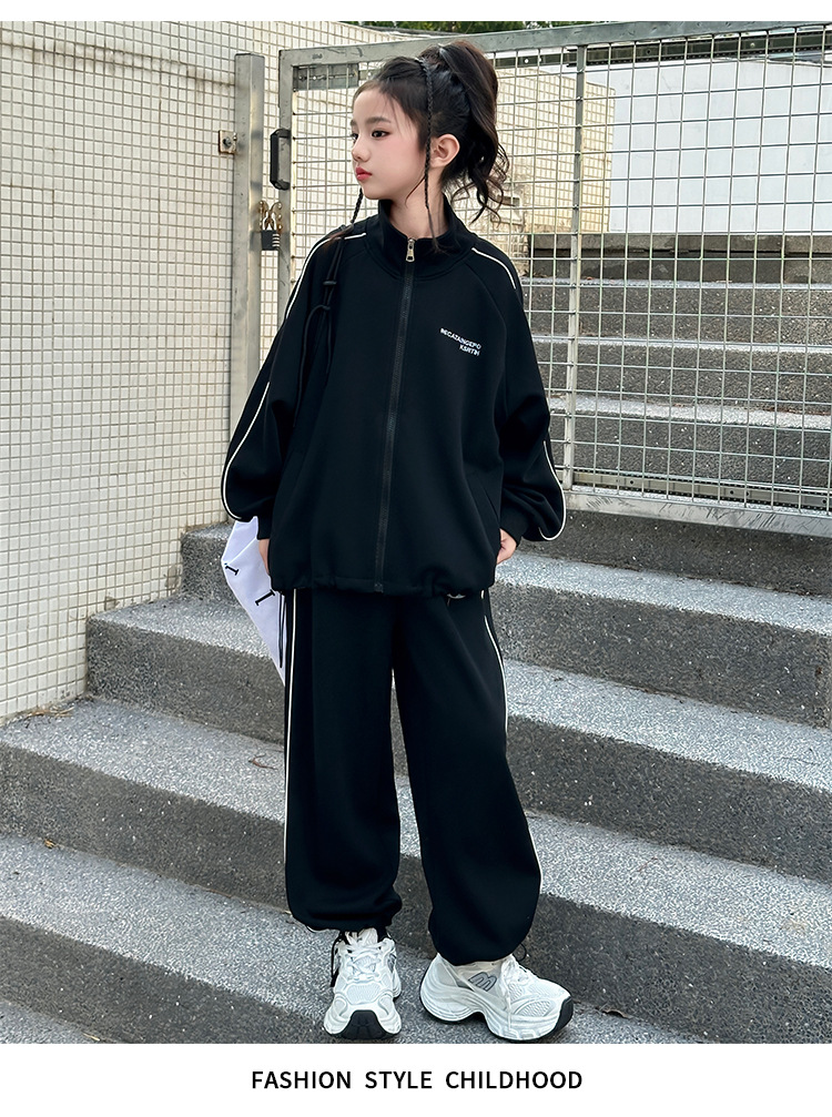 소녀 가을 원피스 세트 2024 새로운 어린이 서양식 한국 스타일 유행 소녀의 봄과 가을 캐주얼 스포츠 투피스 세트