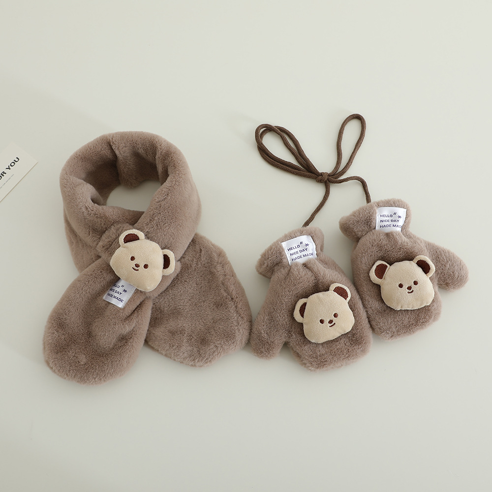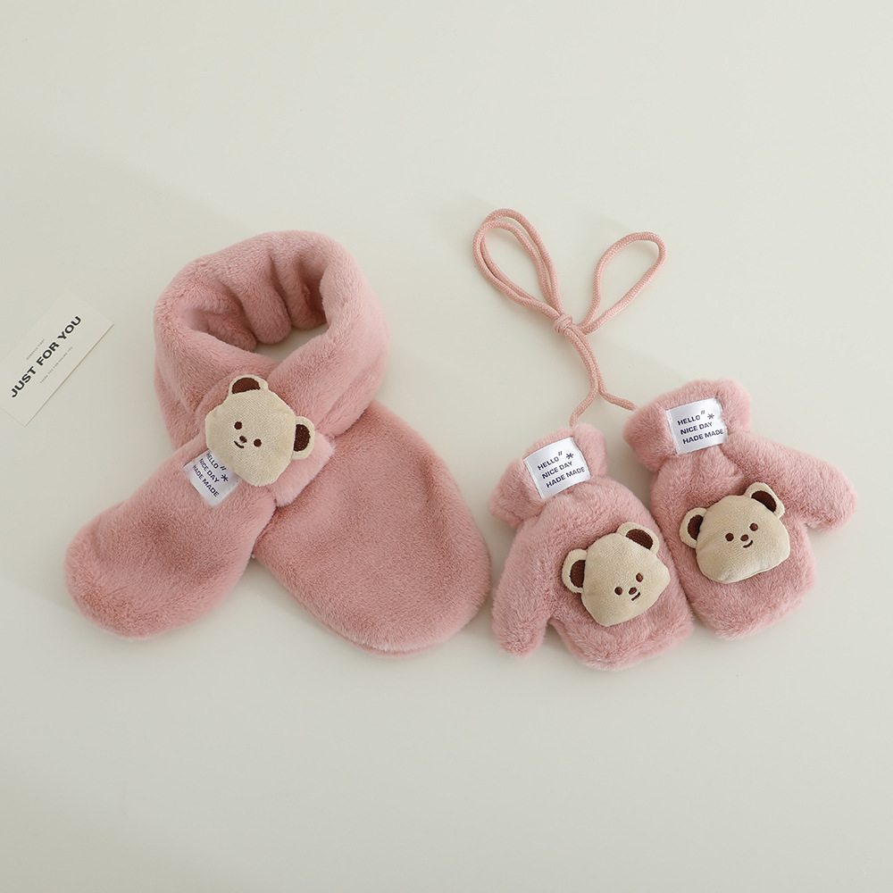 어린 이용 핸드백 장갑 겨울 만화 곰 기모 두꺼운 소년 목 따뜻한 야외 소녀 감기 장갑