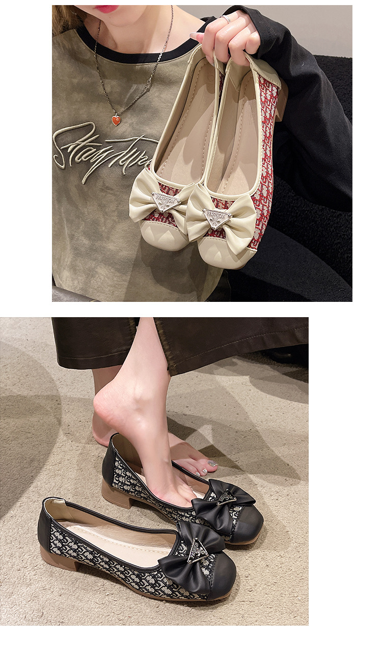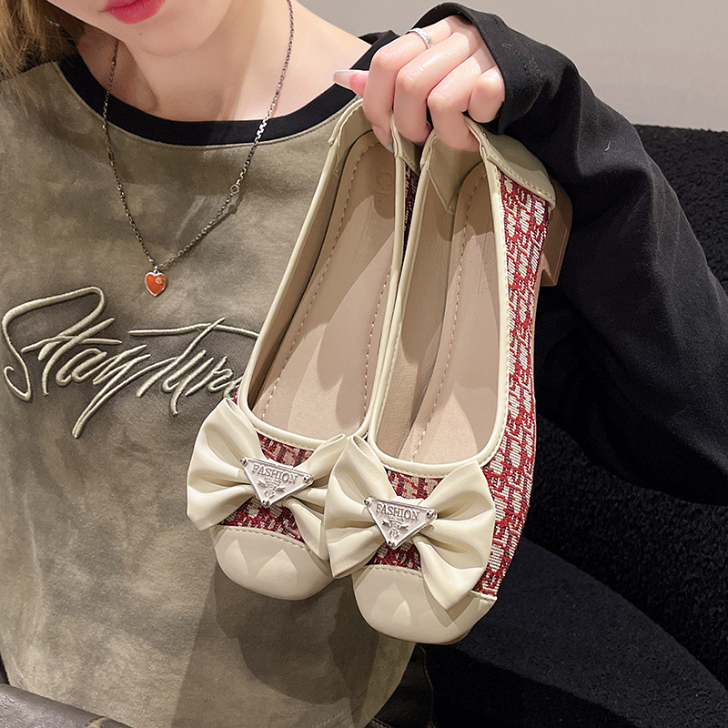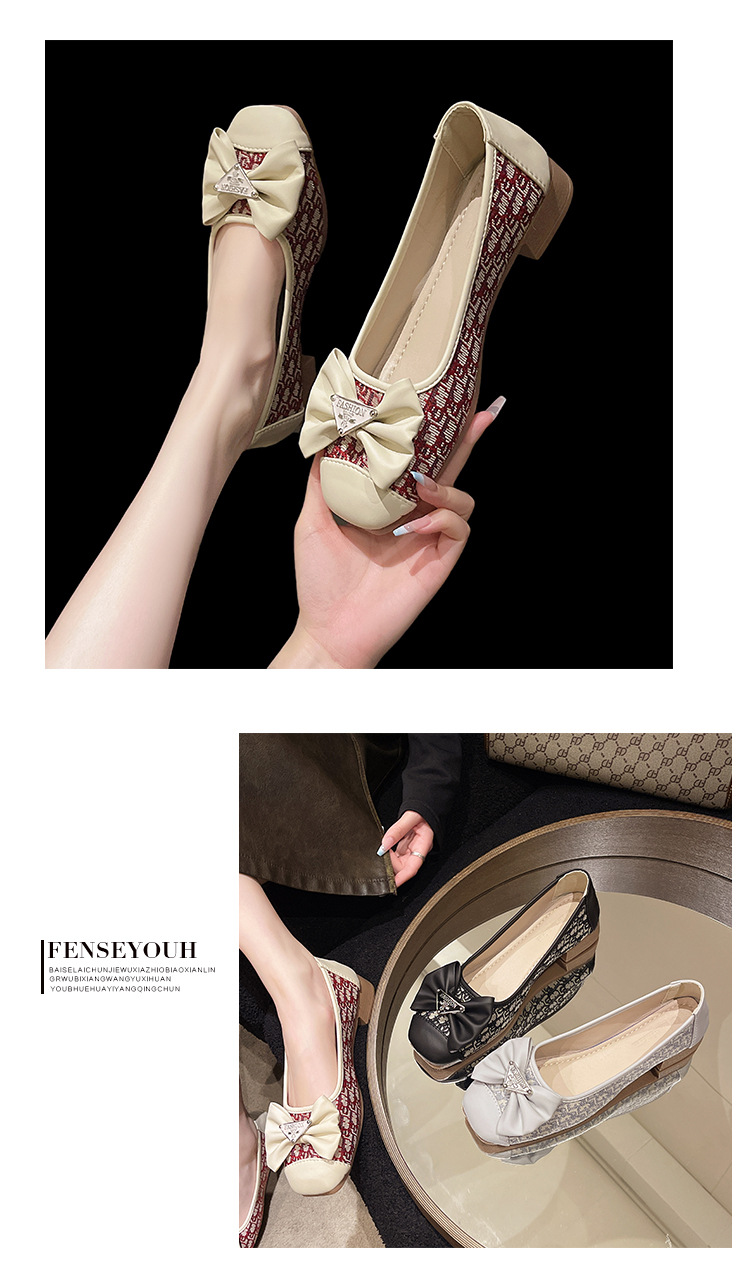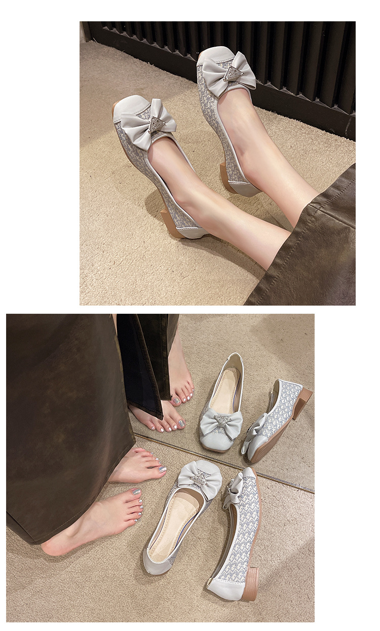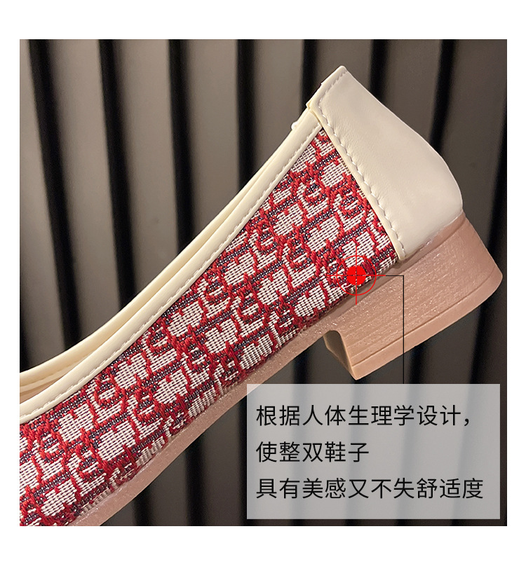 2024 봄과 가을 새로운 청키 힐링 패션 싱글 레이어 신발 한국 스타일 패션 활 얕은 입 세트 발 미드 힐 여성용 헤어 신발스토어 가기