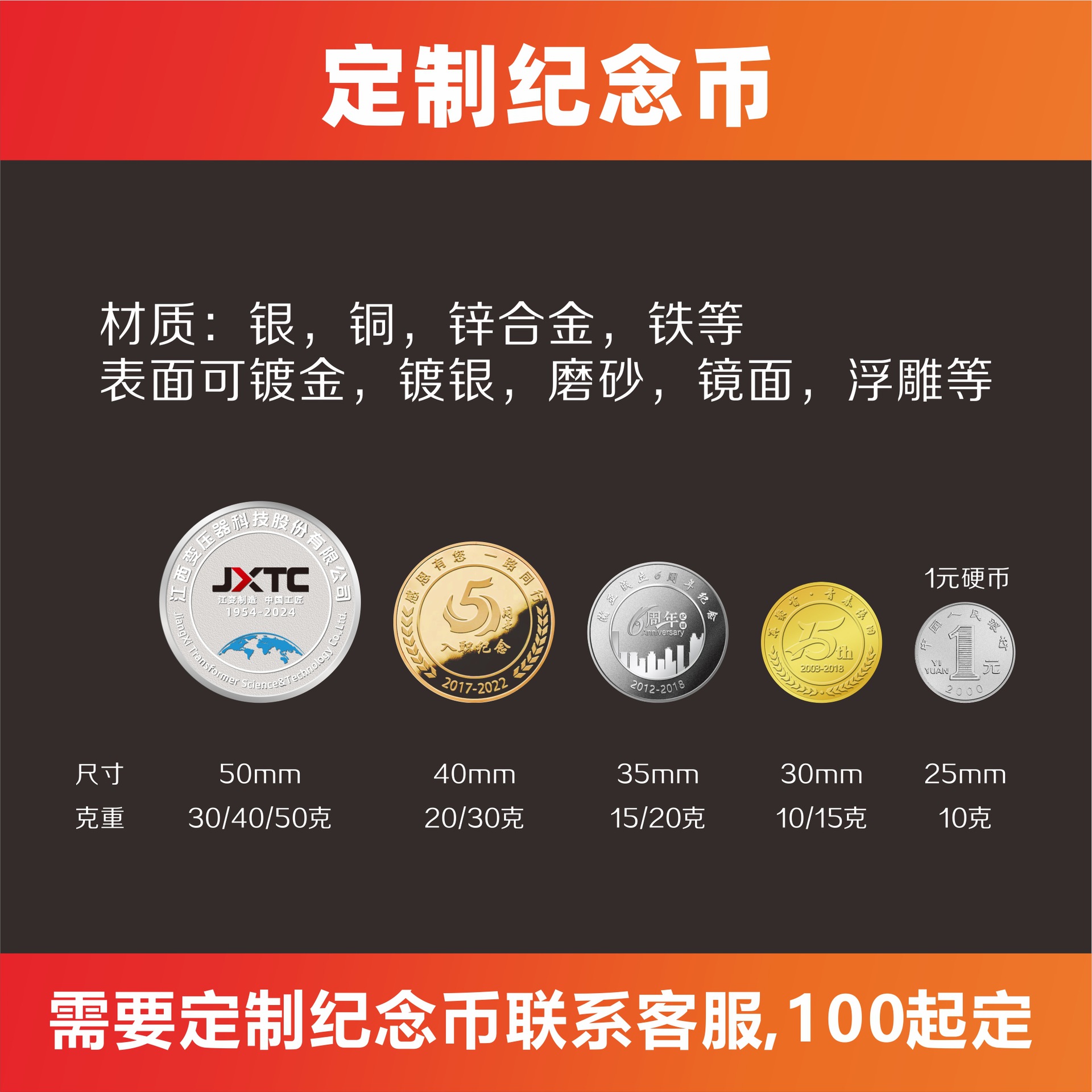 100个起可定制亚克力和纪念币