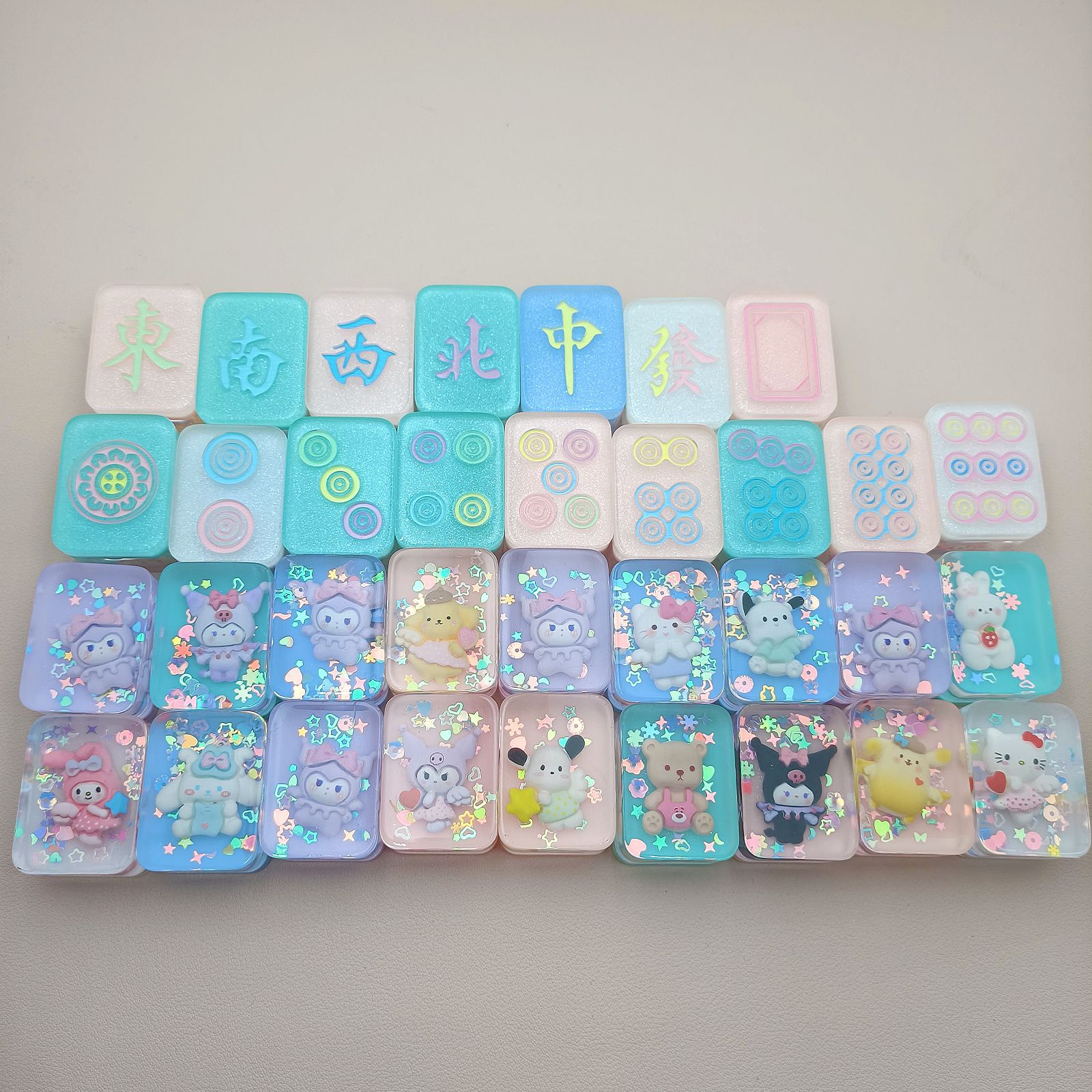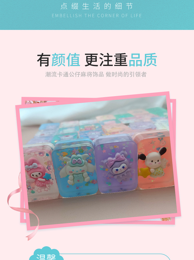흔들리는 음성 라이브 빛나는 마작 블라인드 박스 산리오 만화 조수 플레이 플래시 드롭 접착제 마작 장식품 선물