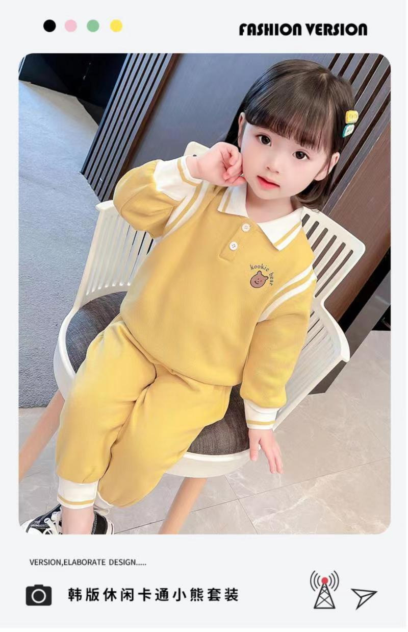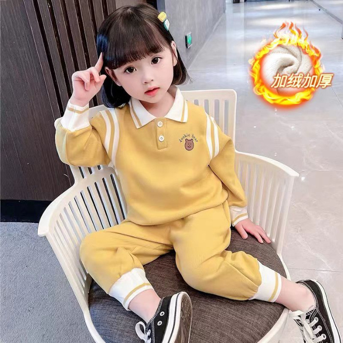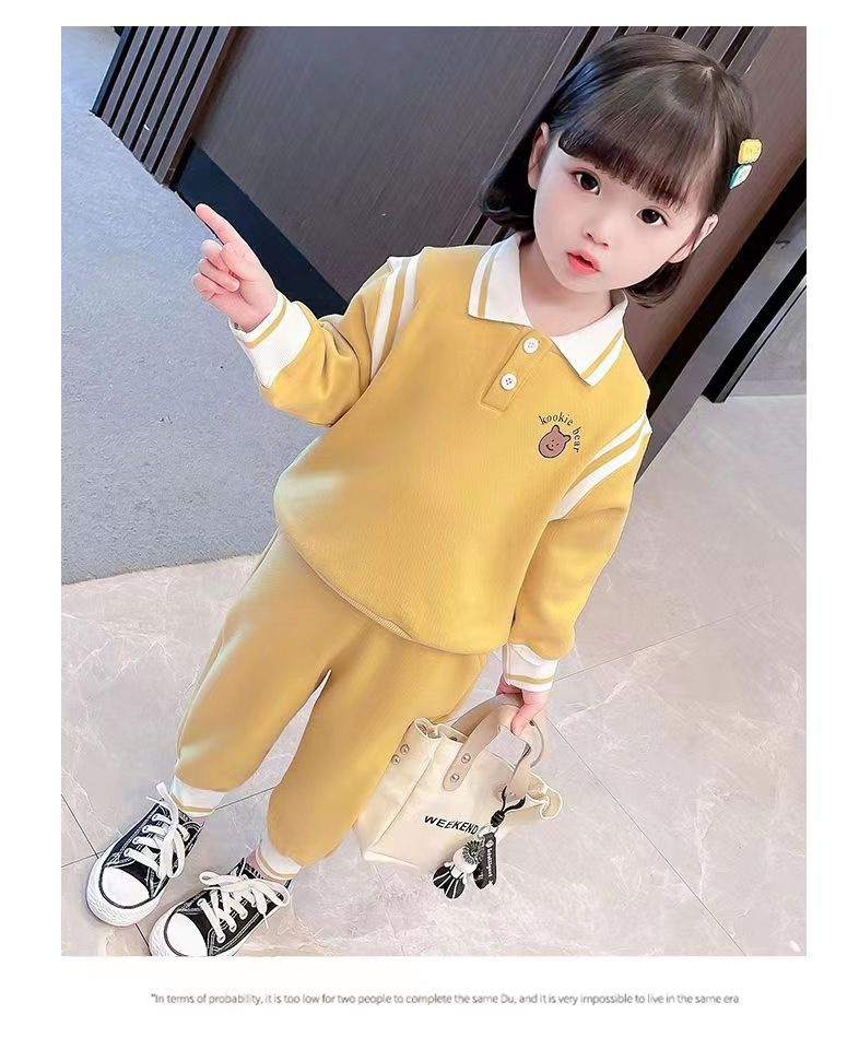 소녀 가을 폴로 셔츠 세트 서양식 2024 새로운 캐주얼 웨스턴 스타일 봄과 가을 아기 긴 소매 투피스 세트스토어 가기
