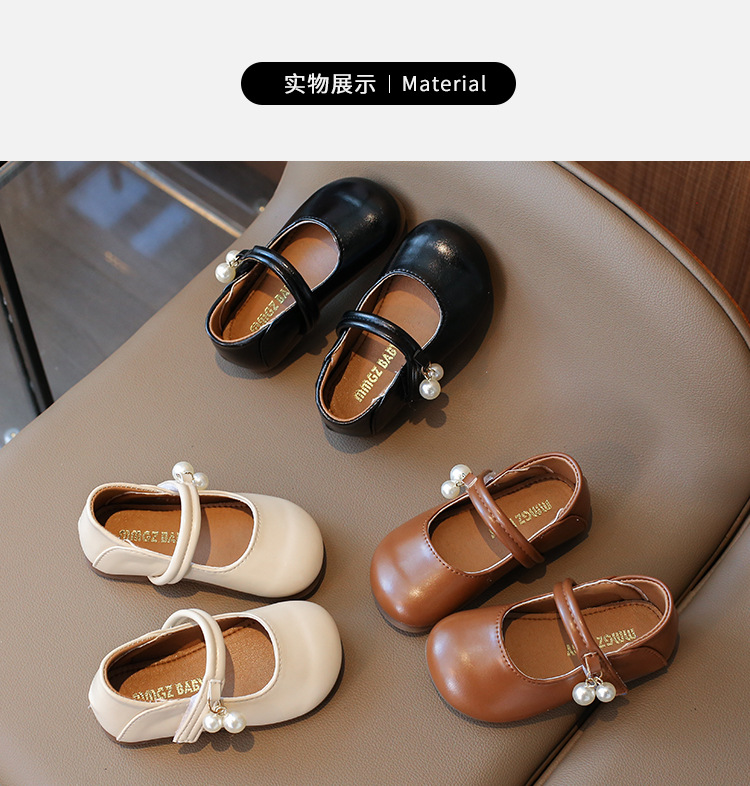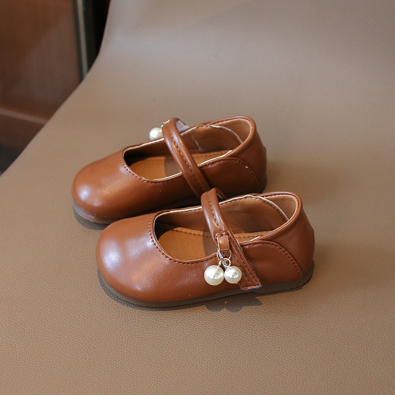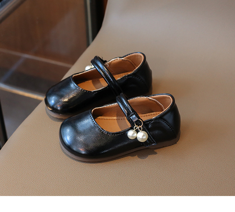 여자 작은 가죽 신발 2025 봄과 가을 새로운 어린이 부드러운 밑창 공주 신발 아기 소녀 패션 진주 신발