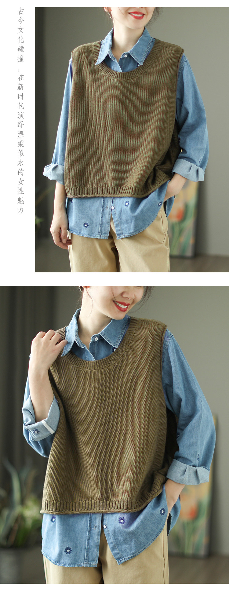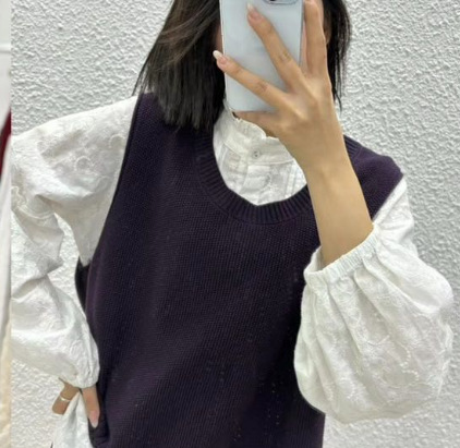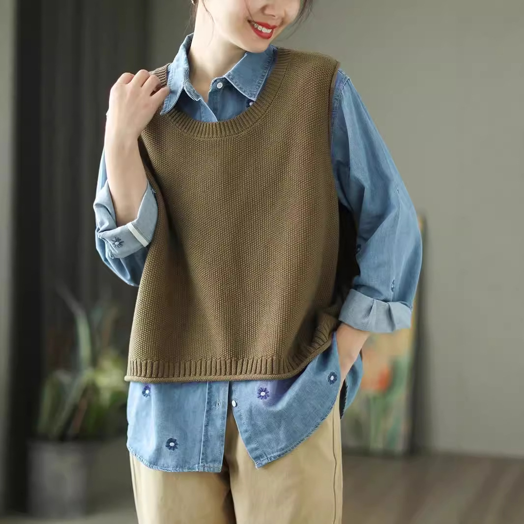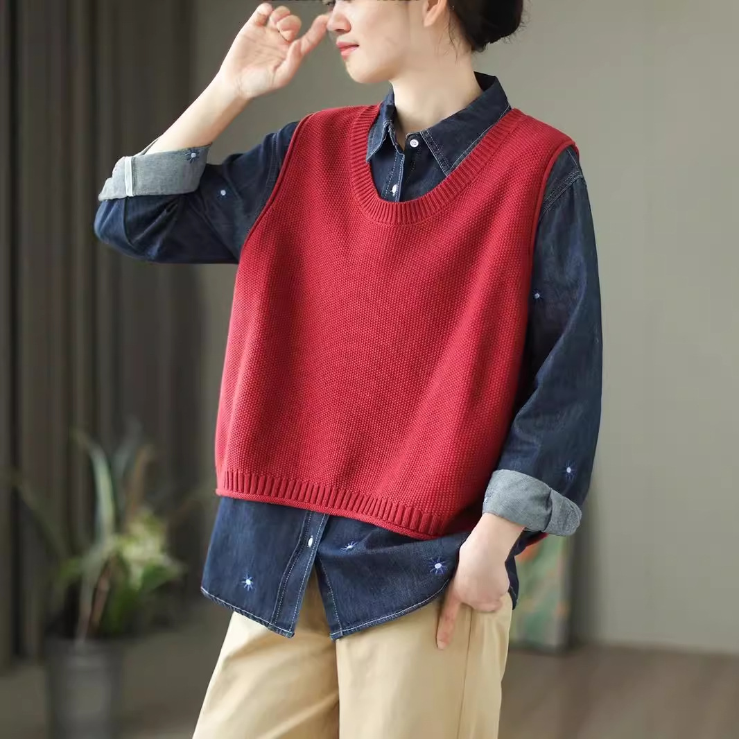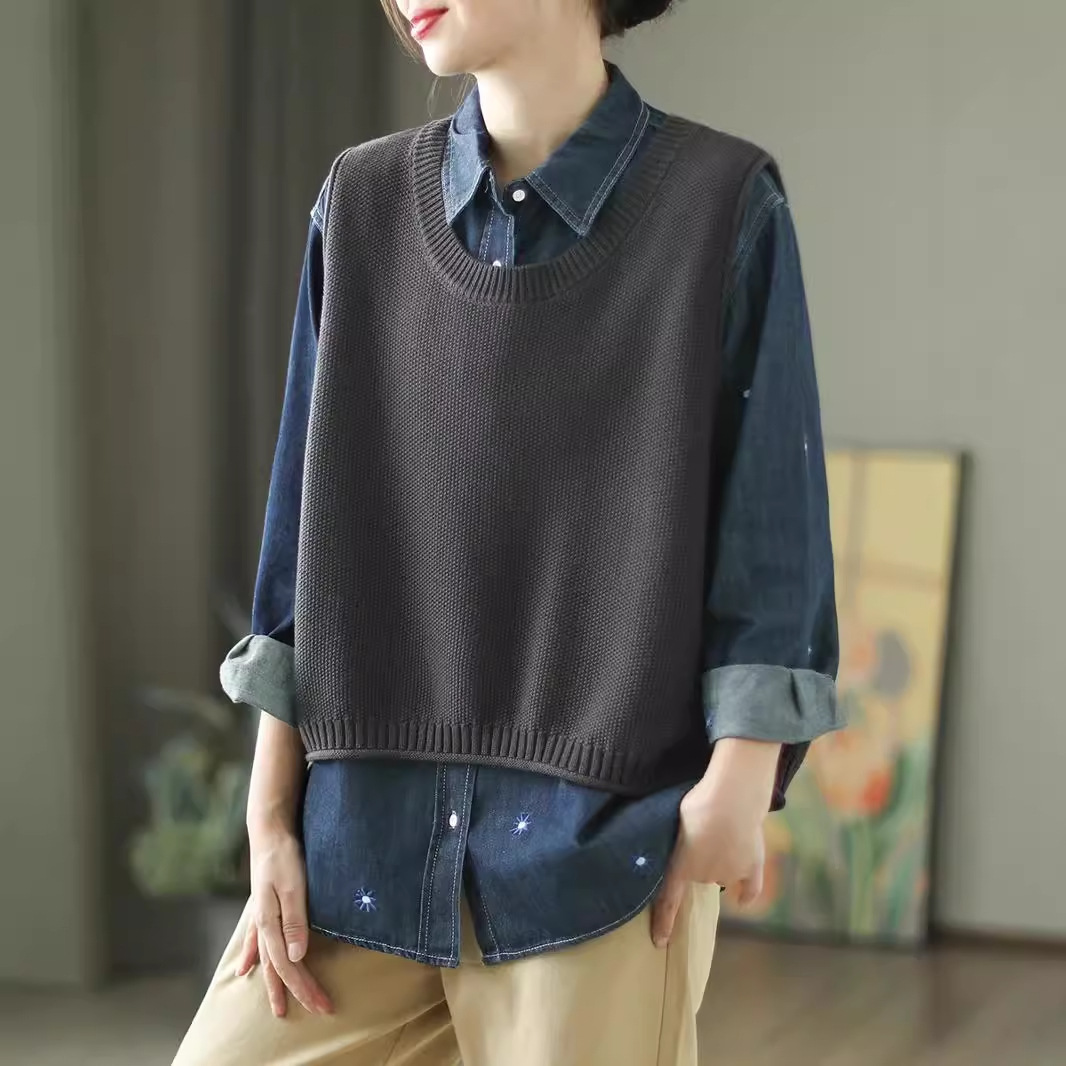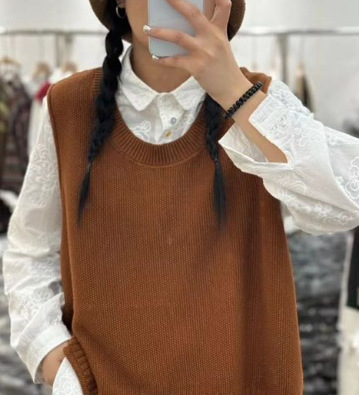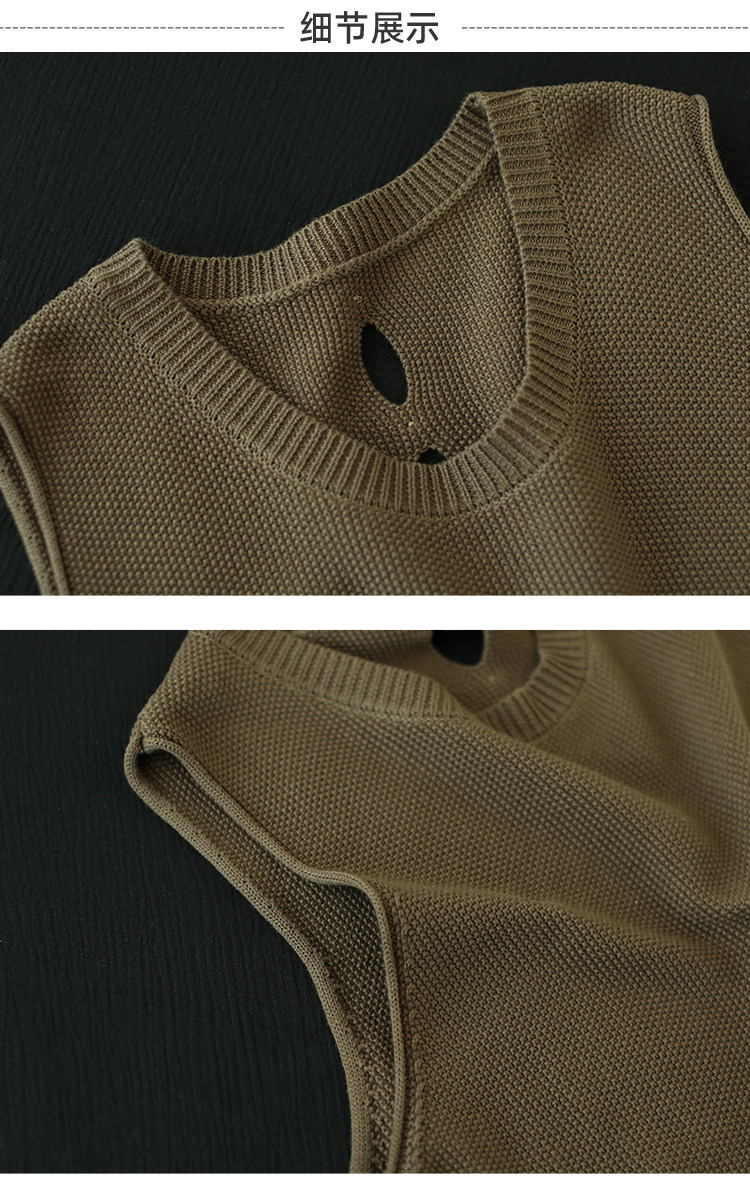 가을 예술면 니트 민소매 라운드 넥 조끼 여성 버튼 할로우 디자인 솔리드 컬러 탑스토어 가기