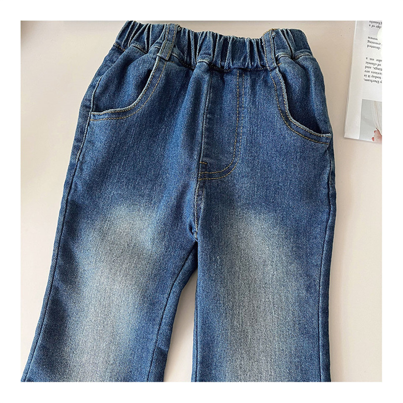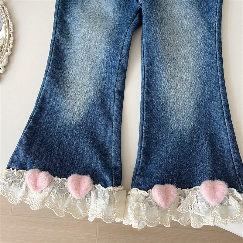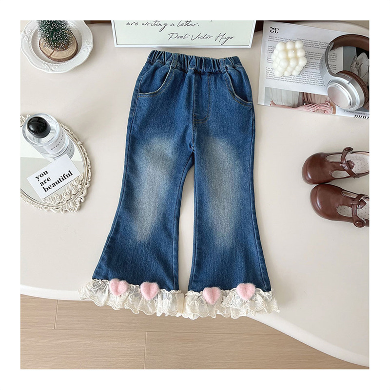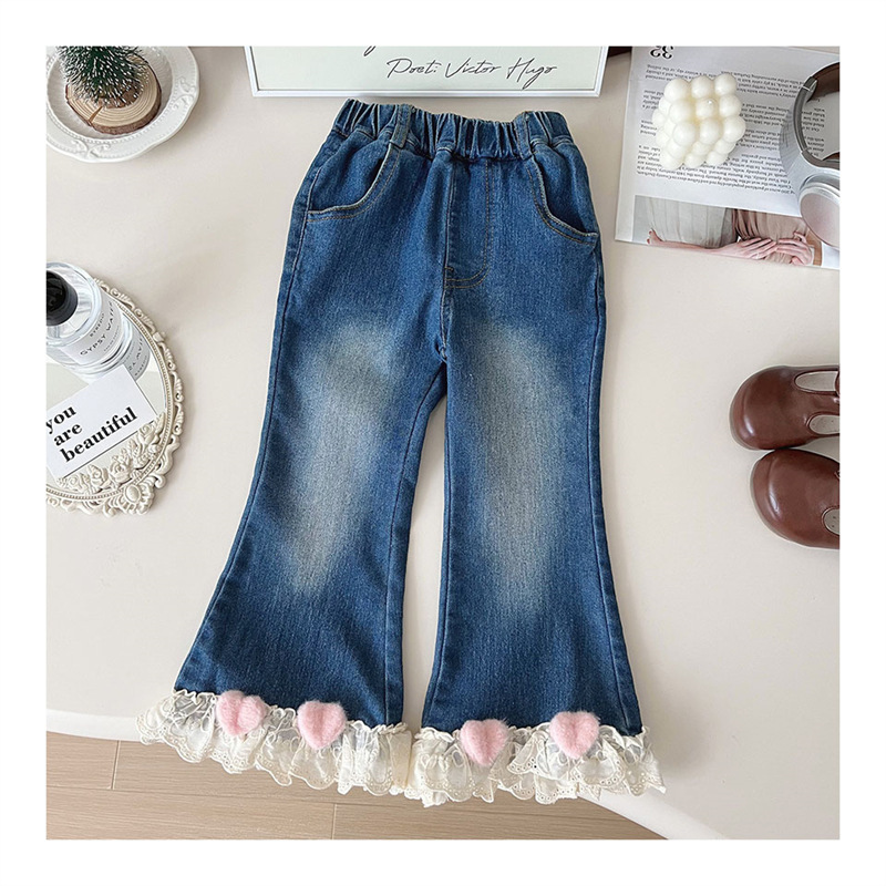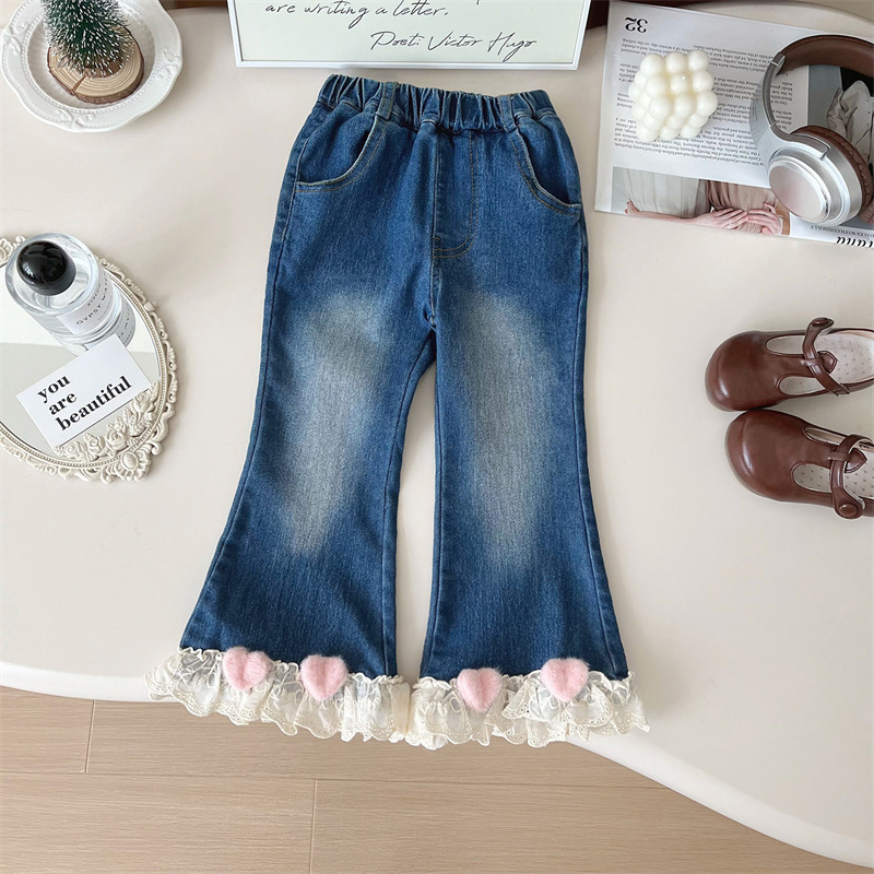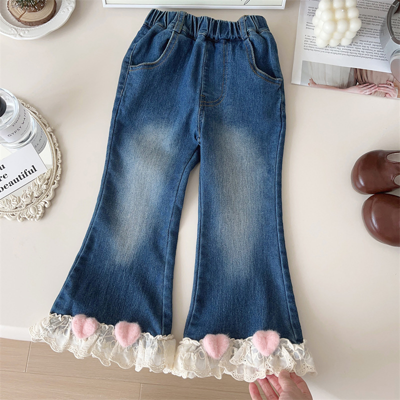 소녀 레이스 플라 드 청바지 가을 2024 새로운 봄과 가을 서양식 어린이 캐주얼 올 매치 아기 소녀 바지스토어 가기