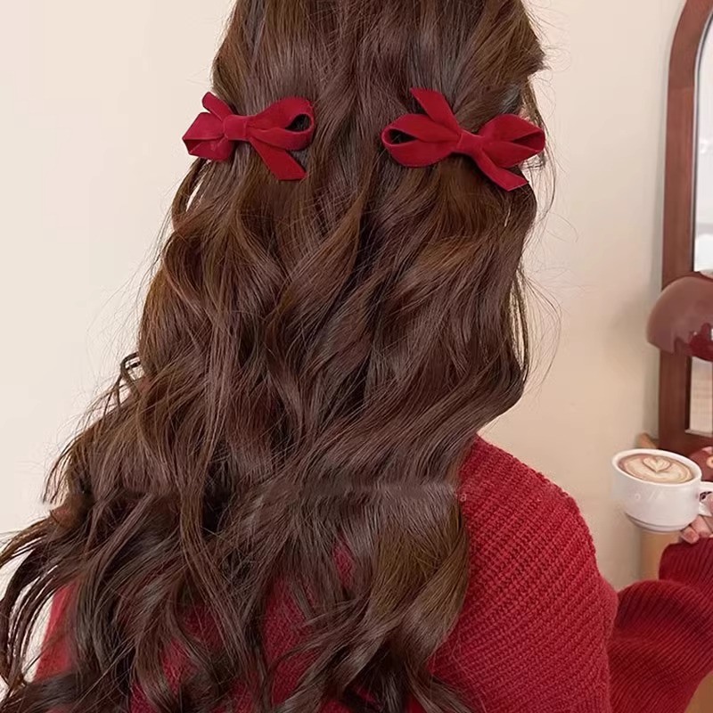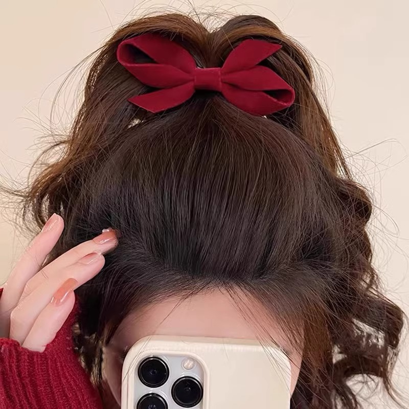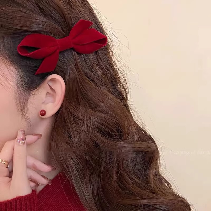 새해 빨간 활 머리 머리핀 여성의 2024 새로운 측면 깨진 머리 덕빌 클립 가을과 겨울 앞 프린지 클립