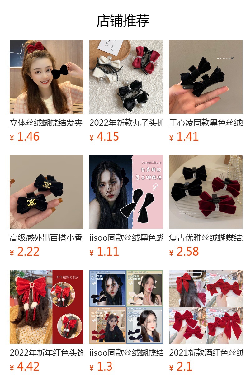 새해 빨간 활 머리 머리핀 여성의 2024 새로운 측면 깨진 머리 덕빌 클립 가을과 겨울 앞 프린지 클립스토어 가기
