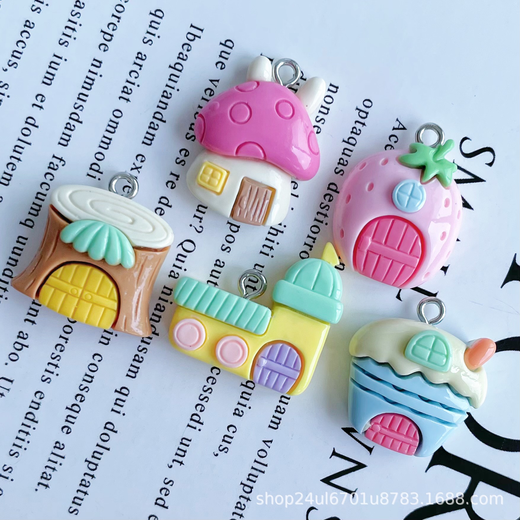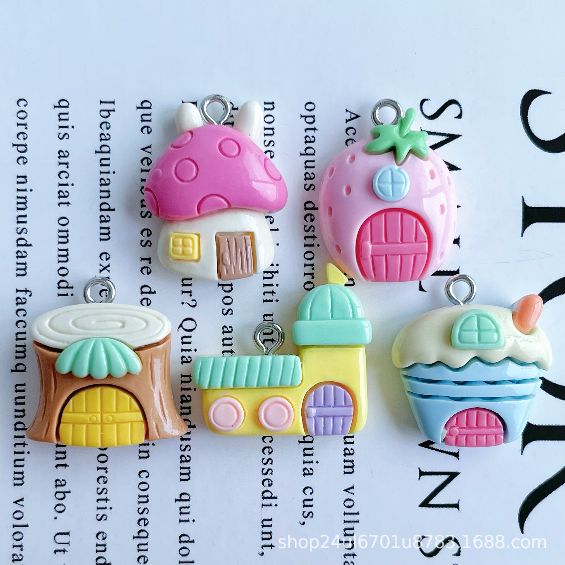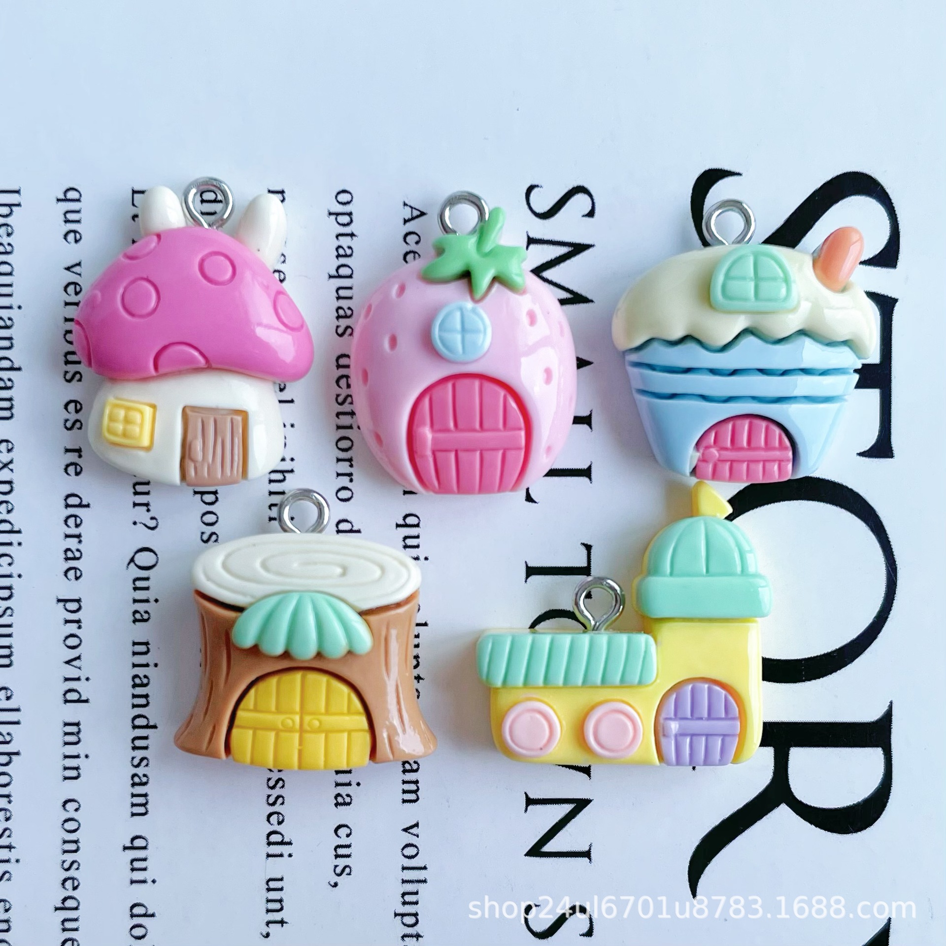 귀여운 밝은 숲 작은 집 수지 액세서리 펜던트 펜던트 천공 DIY 팔찌 목걸이 장식 소재 배치스토어 가기