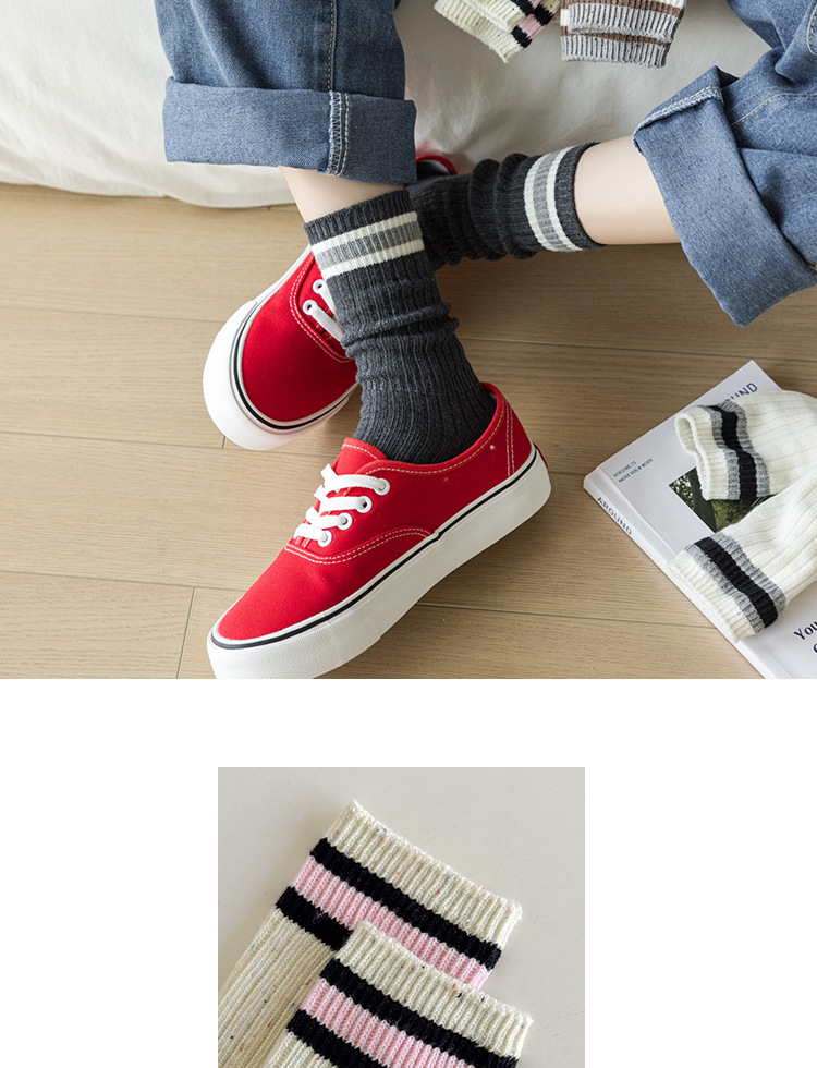 Suxinaimin 스택 양말 어린이 가을 및 겨울 중간 배럴 Ins 패셔너블 포인트 원사 Roarse Needle 2 바 스트라이프 Zhuji 스타킹