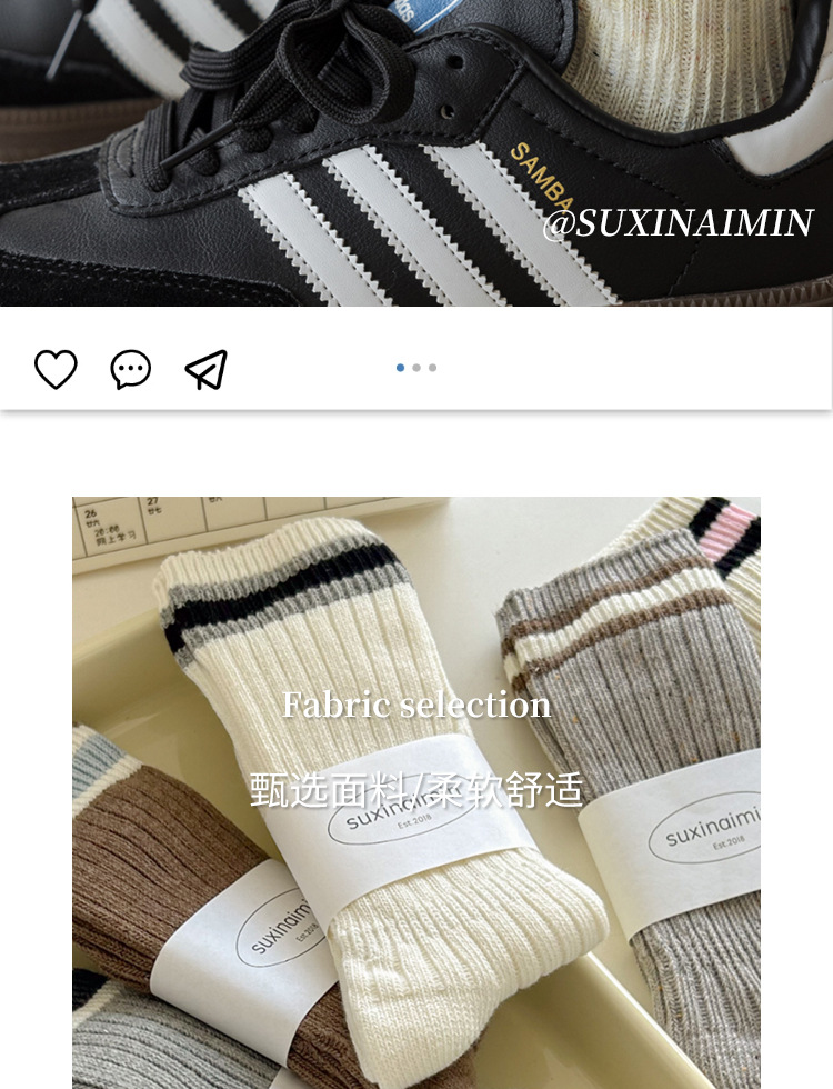 Suxinaimin 스택 양말 어린이 가을 및 겨울 중간 배럴 Ins 패셔너블 포인트 원사 Roarse Needle 2 바 스트라이프 Zhuji 스타킹스토어 가기