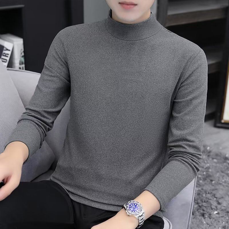 남성 양면 벨벳 긴팔 티셔츠 안에 반 높은 칼라 가을과 겨울 일정한 온도 열 속옷 단색 기본 셔츠 도매스토어 가기