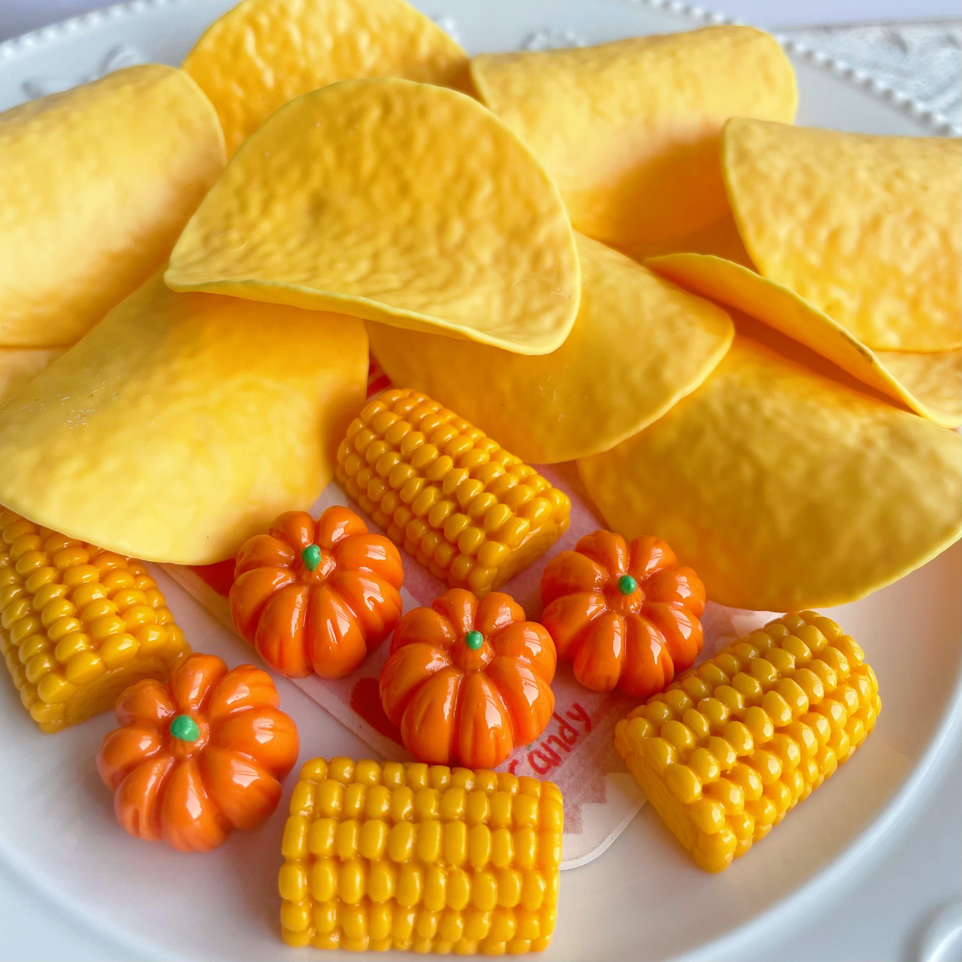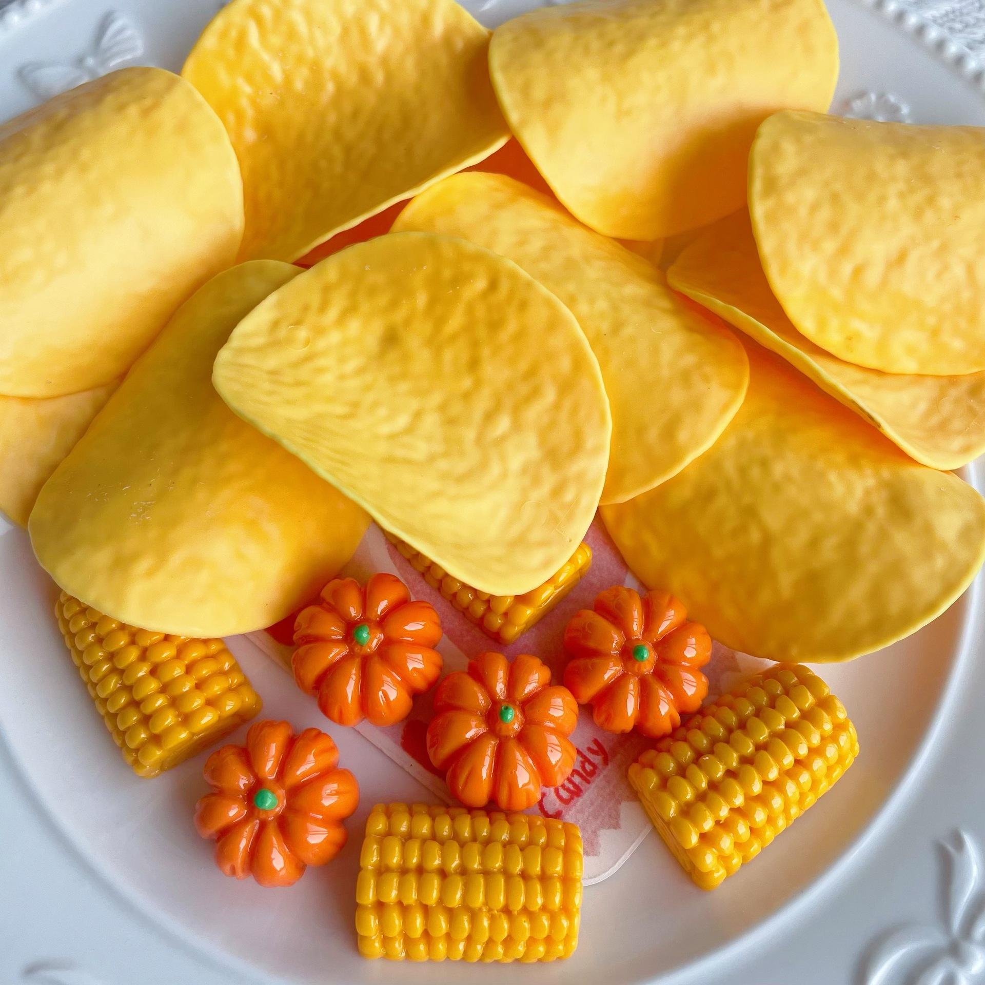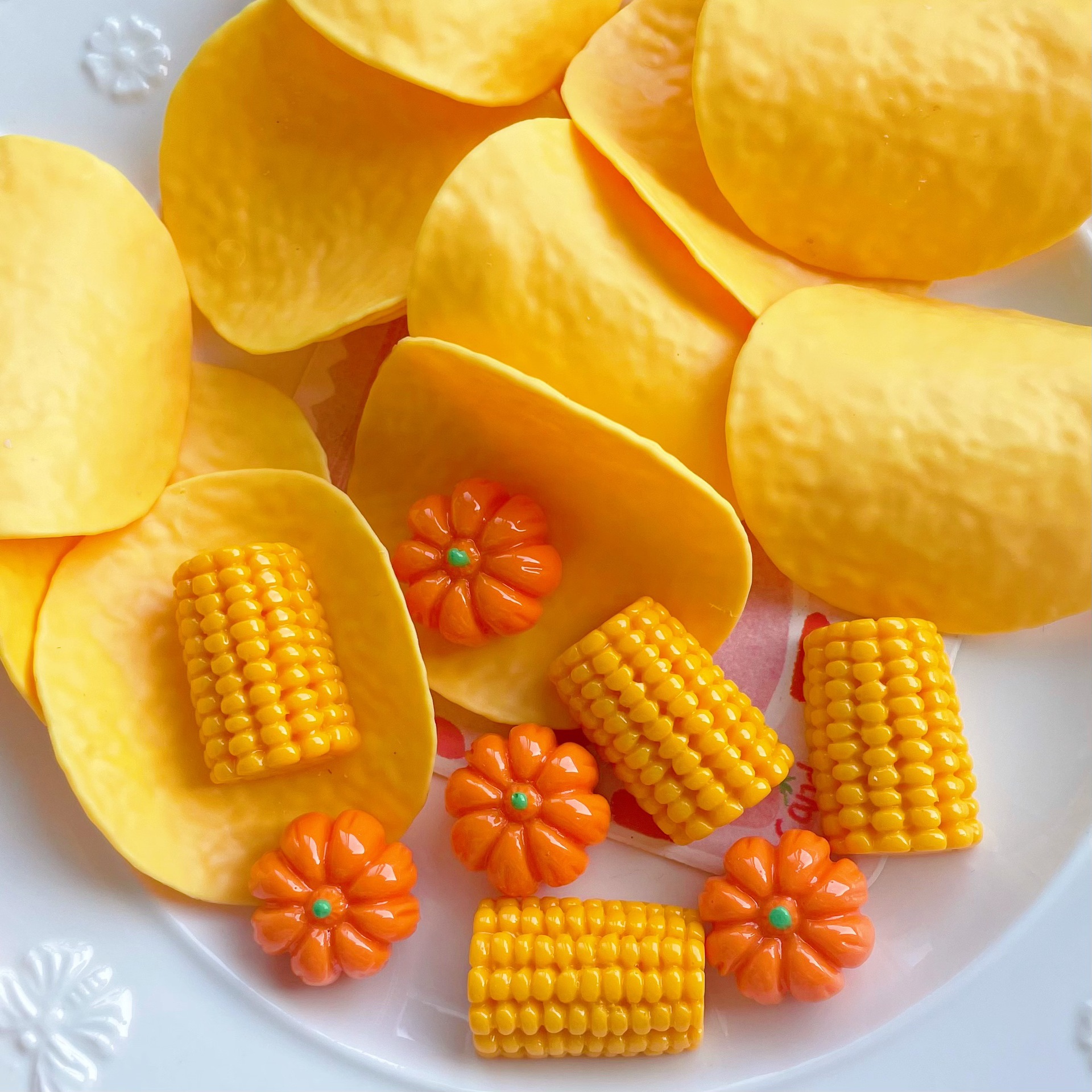 시뮬레이션 옥수수 3 차원 호박 음식 놀이 수지 액세서리 플라스틱 감자 칩 헤어핀 크림 접착제 키 체인 어린이 장난감스토어 가기