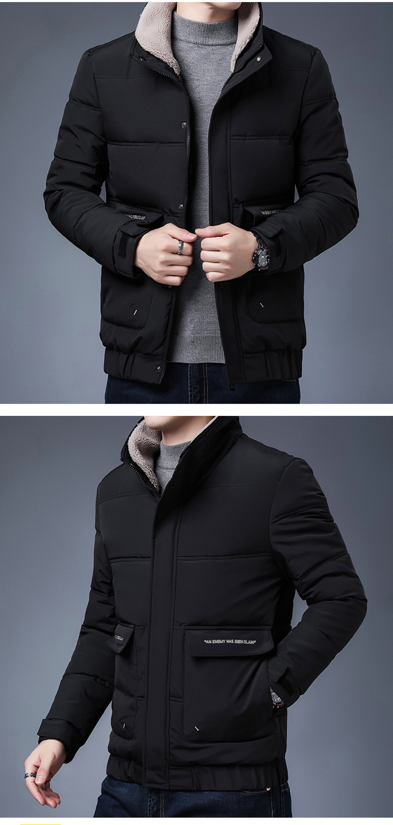 코튼 패딩 코트 남성용 코트 겨울 남성용 두꺼운 트렌디 한 겨울 모피 칼라 다운 코튼 패딩 재킷 캐주얼 따뜻한면 패딩 재킷스토어 가기