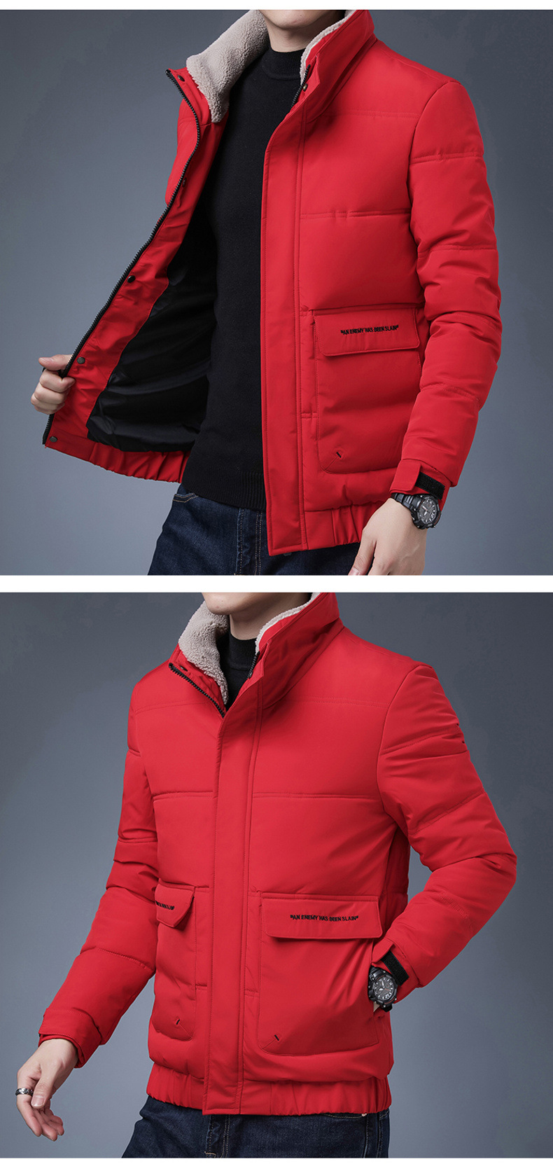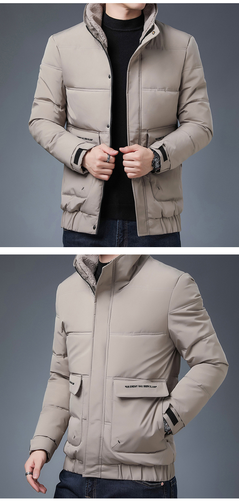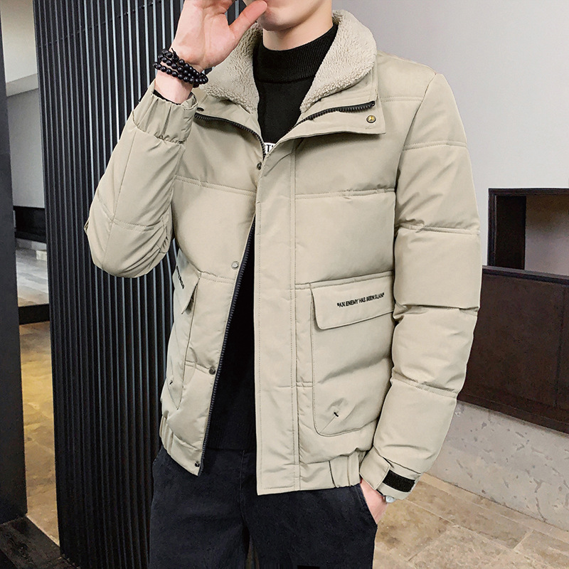 코튼 패딩 코트 남성용 코트 겨울 남성용 두꺼운 트렌디 한 겨울 모피 칼라 다운 코튼 패딩 재킷 캐주얼 따뜻한면 패딩 재킷