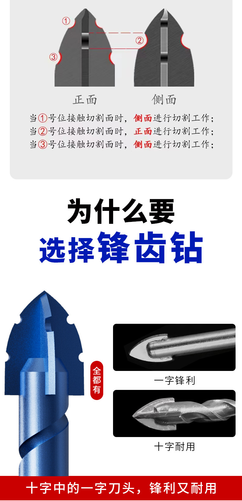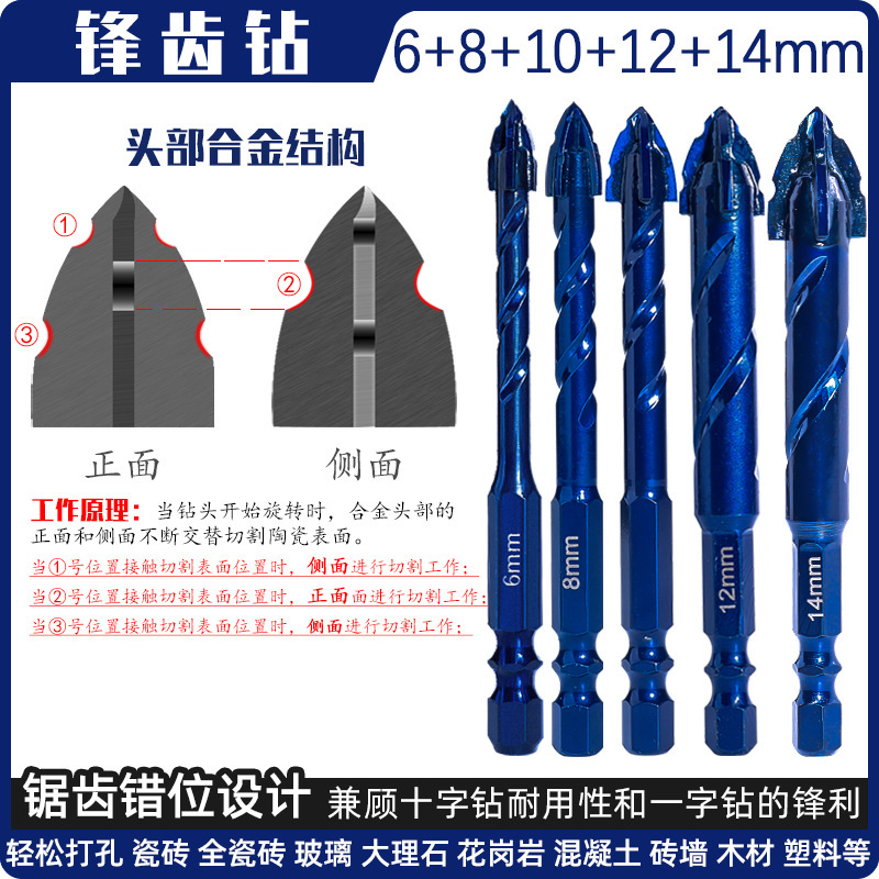 새로운 전면 치아 드릴 비트 건조 세라믹 타일 유리 대리석 콘크리트 스테인레스 스틸 천공 슈퍼 하드 전기 드릴 비트
