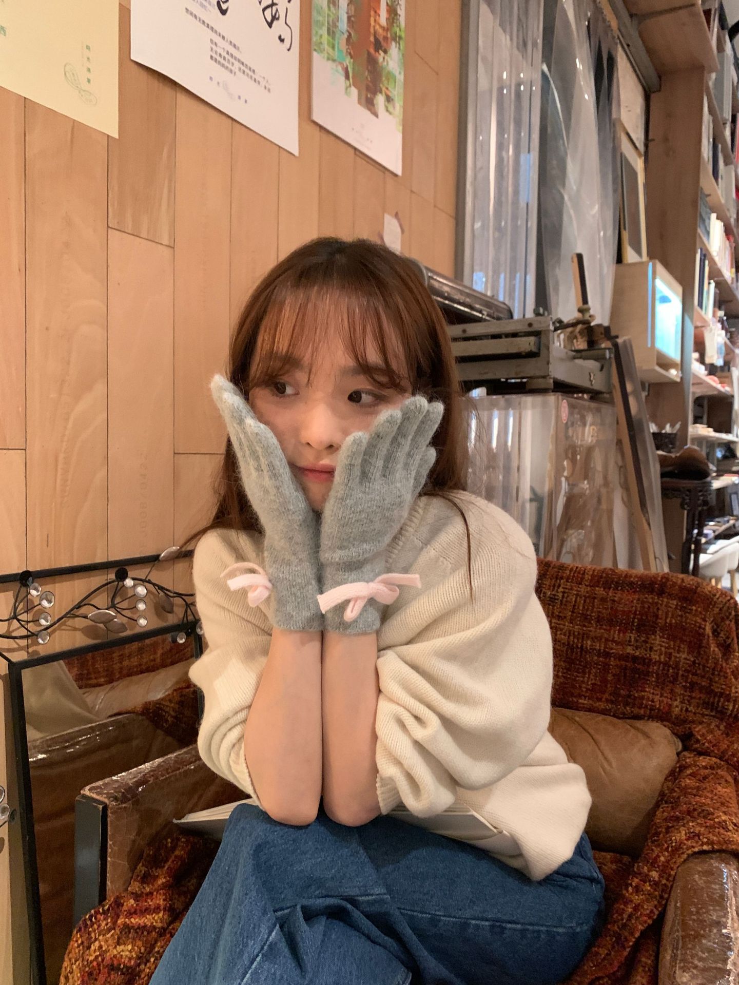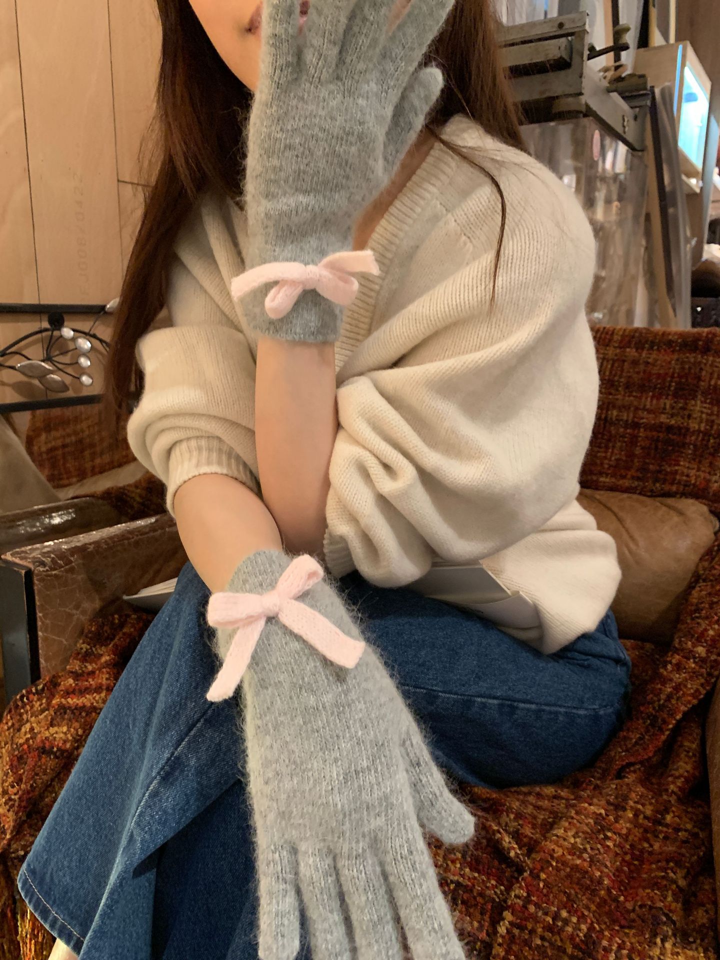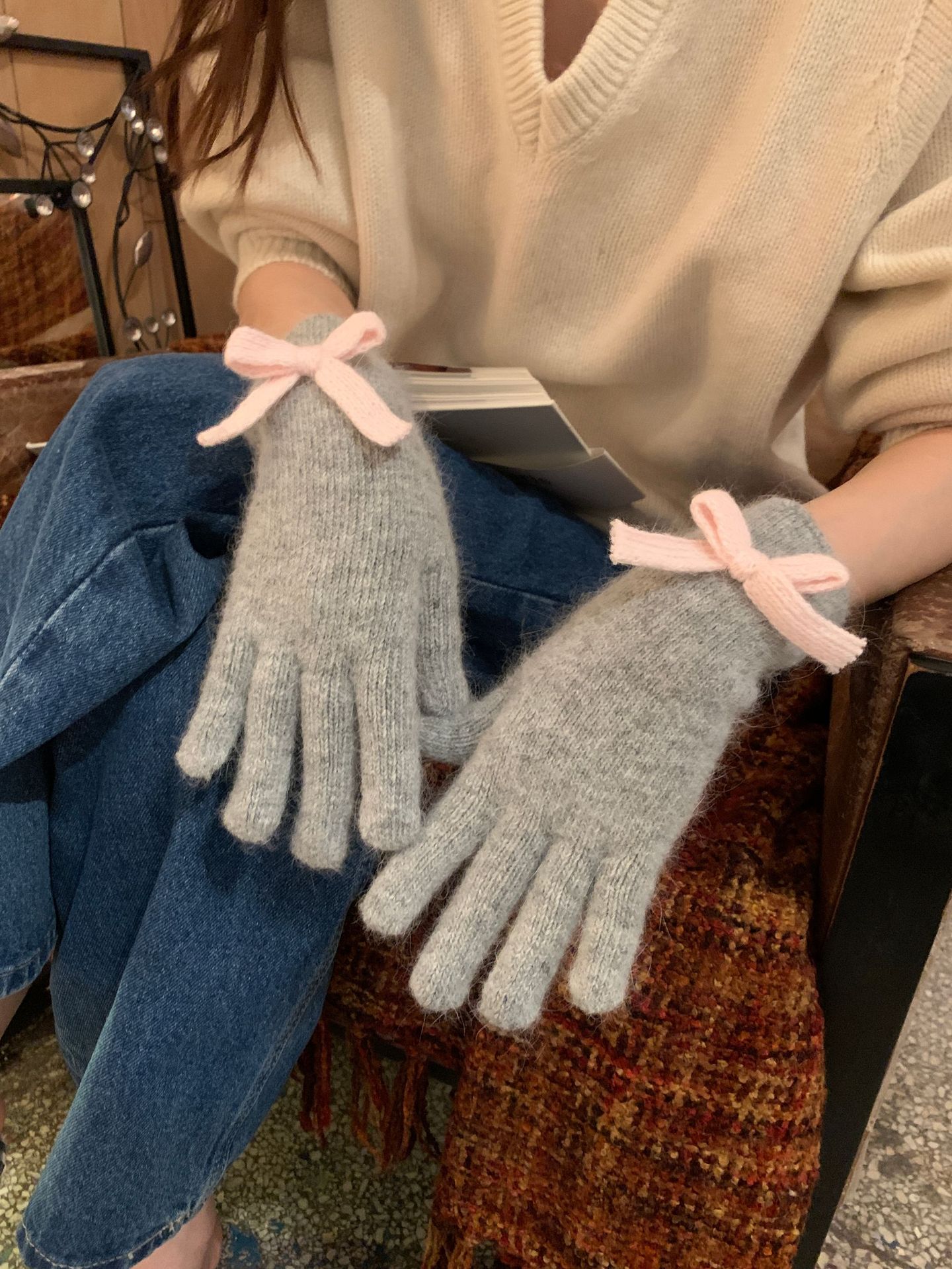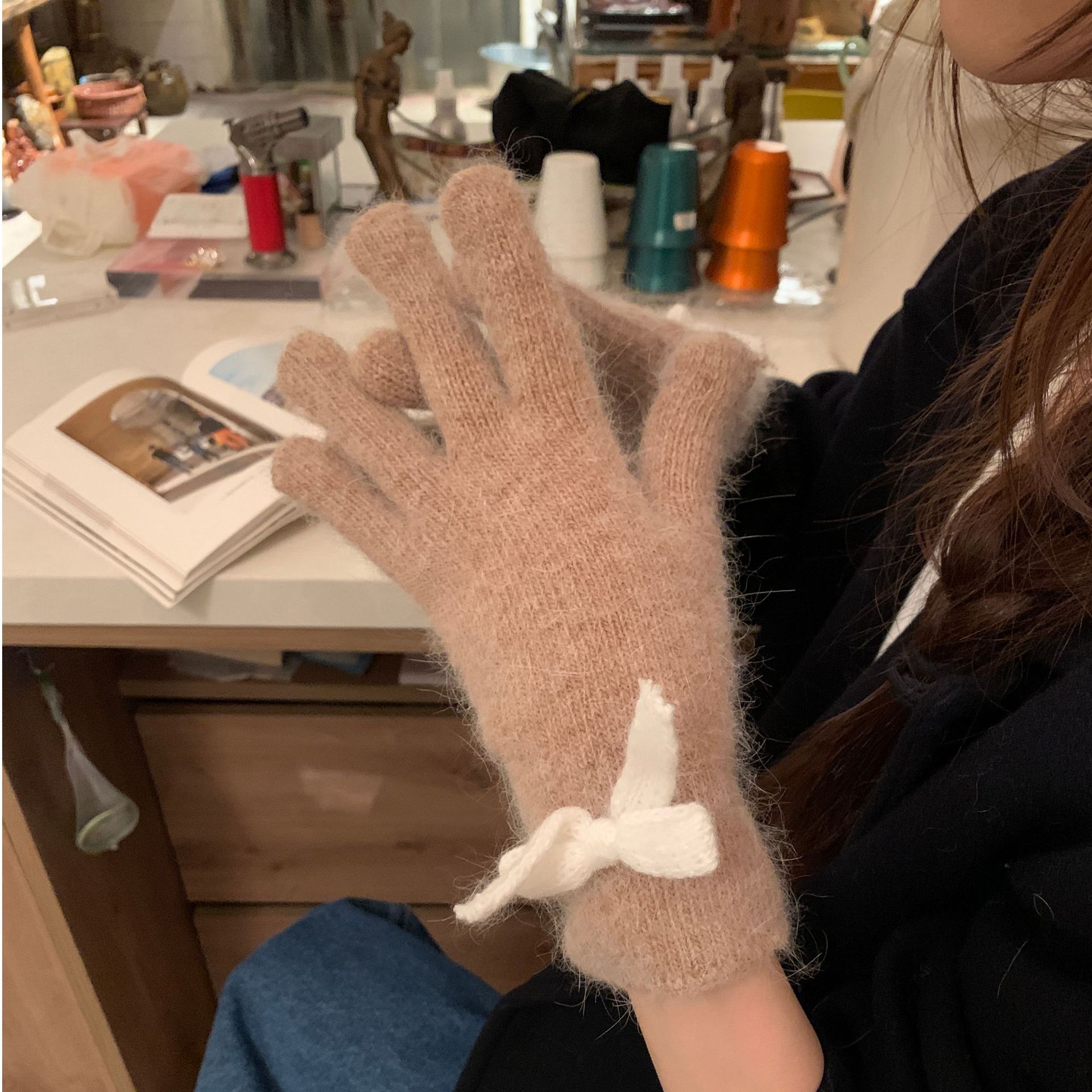 새로운 일본 가을과 겨울의 한국어 버전 다섯 손가락 따뜻한 울 니트 토끼 머리, 터치 스크린 서브 손가락 귀여운 학생 차가운 손스토어 가기