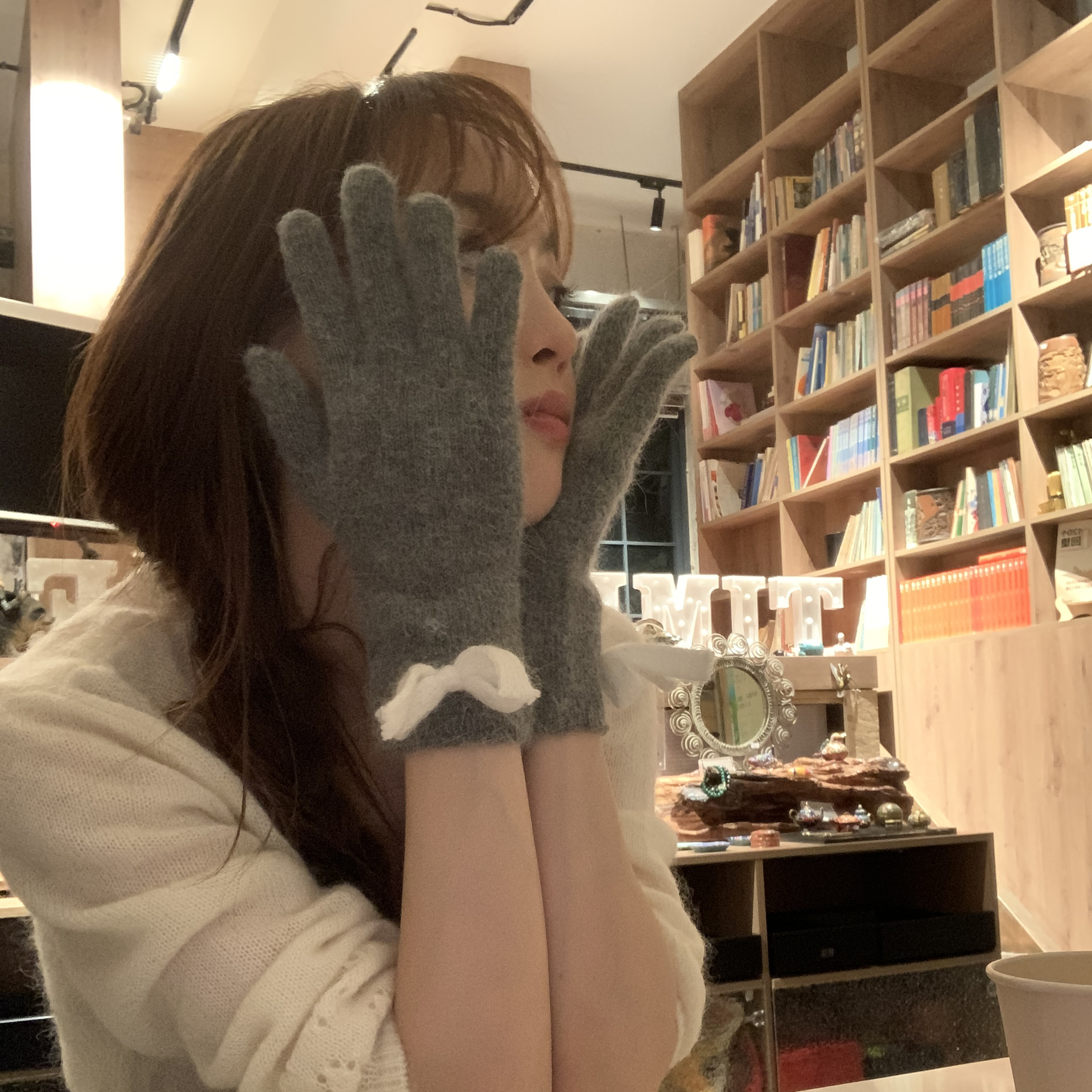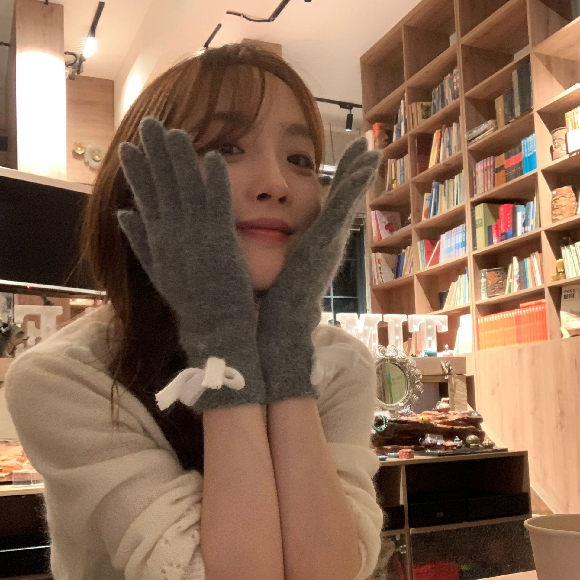 새로운 일본 가을과 겨울의 한국어 버전 다섯 손가락 따뜻한 울 니트 토끼 머리, 터치 스크린 서브 손가락 귀여운 학생 차가운 손