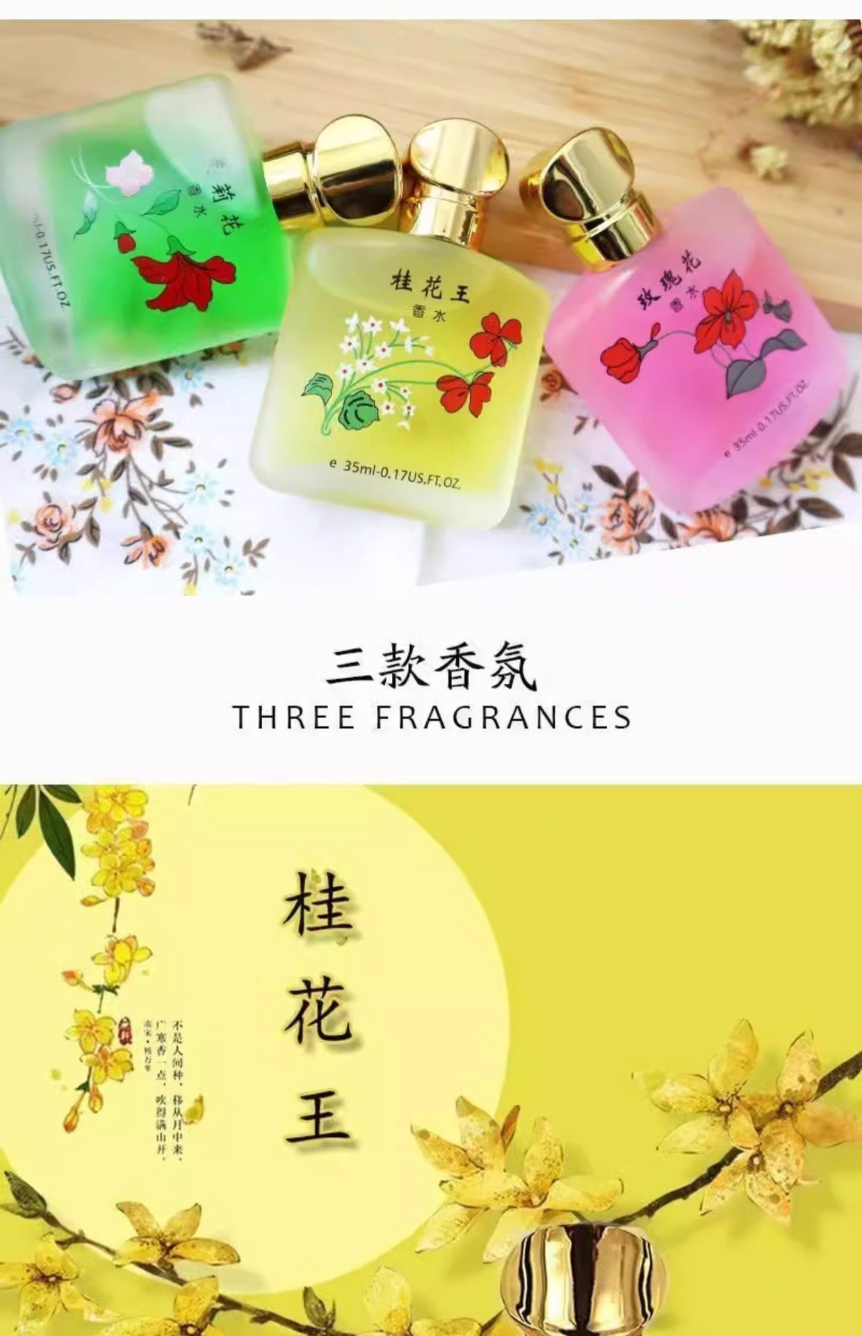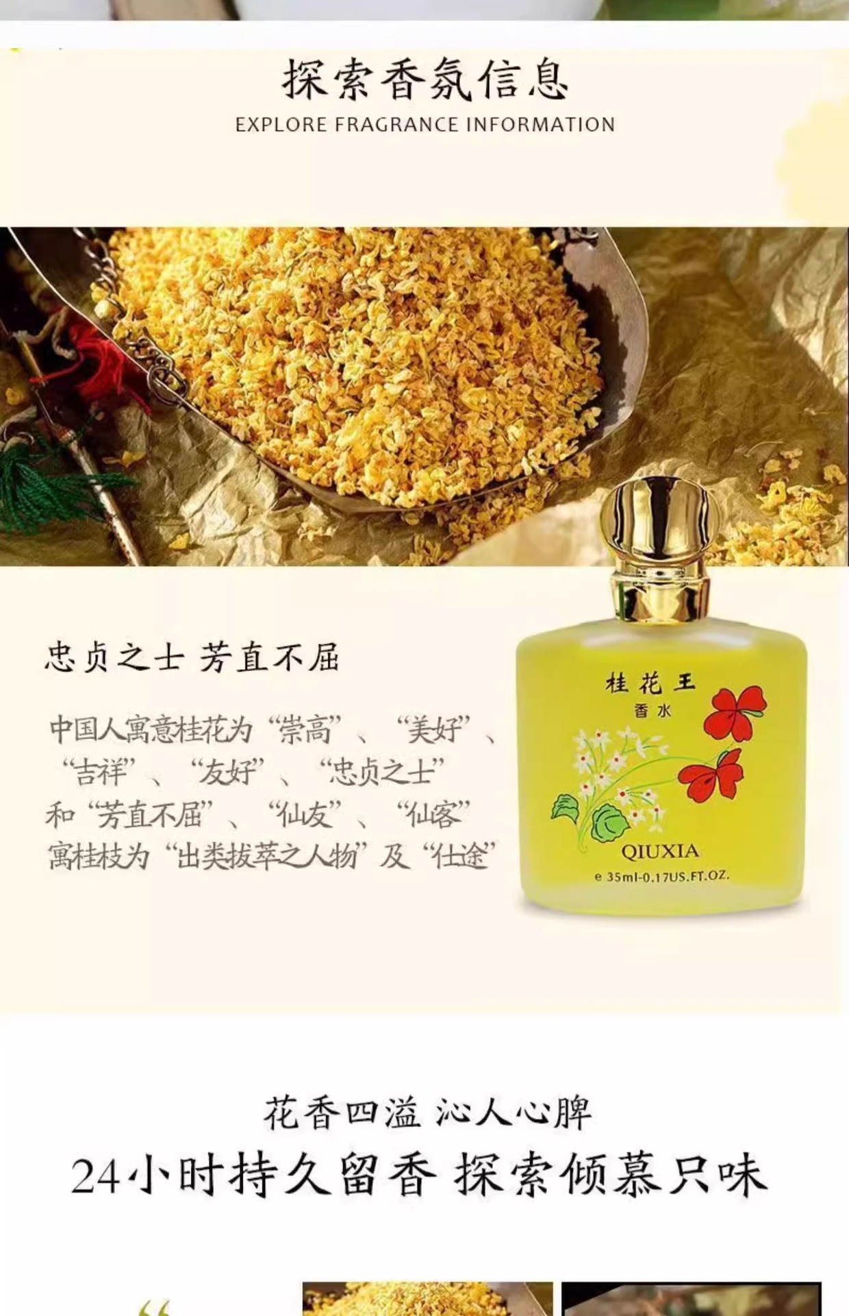 올드 브랜드 중국 Qiuxia Osmanthus King 향수 향기 향기 향기 장미와 여성을 위한 신선한 빛 향기