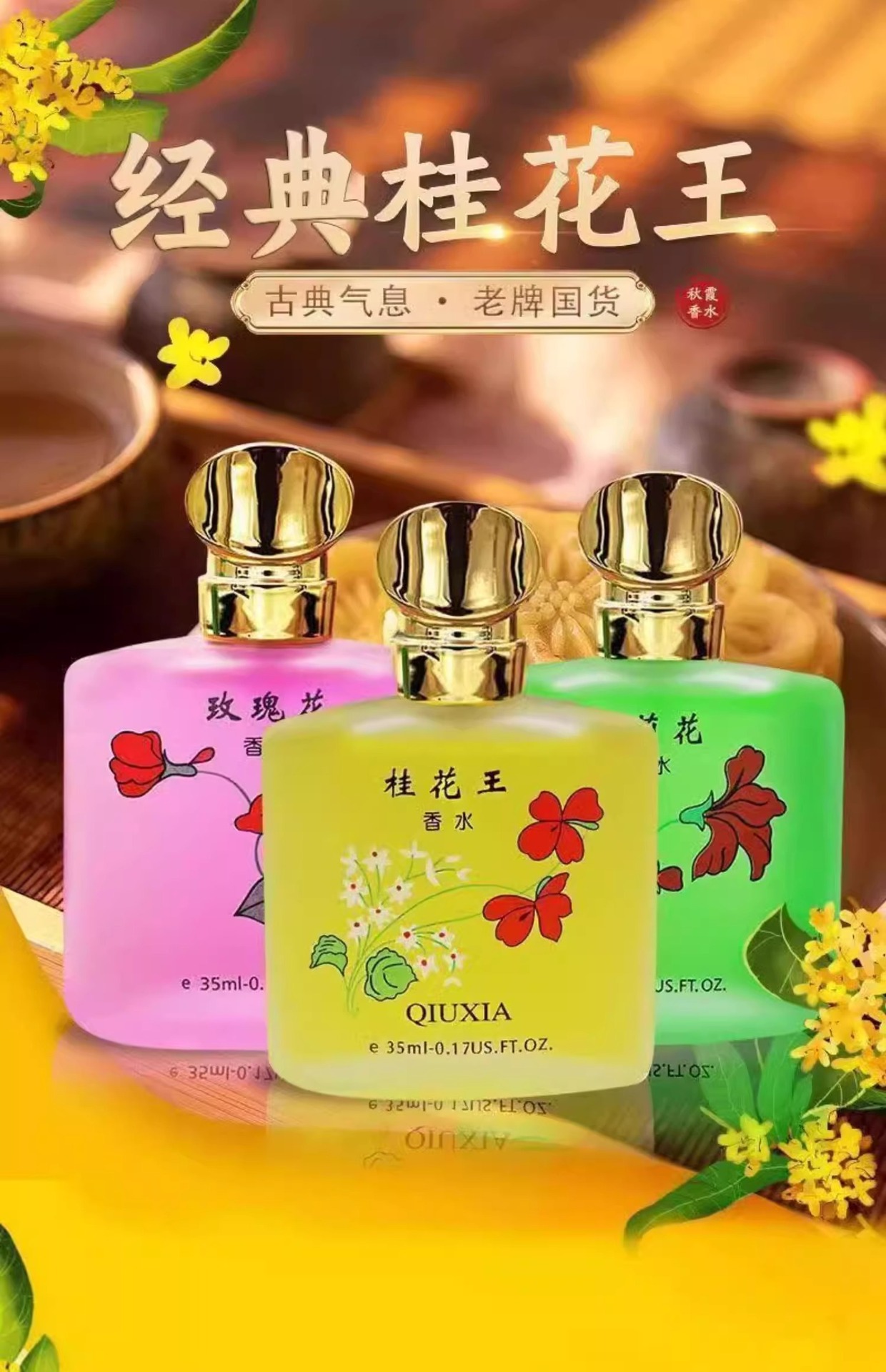 올드 브랜드 중국 Qiuxia Osmanthus King 향수 향기 향기 향기 장미와 여성을 위한 신선한 빛 향기스토어 가기