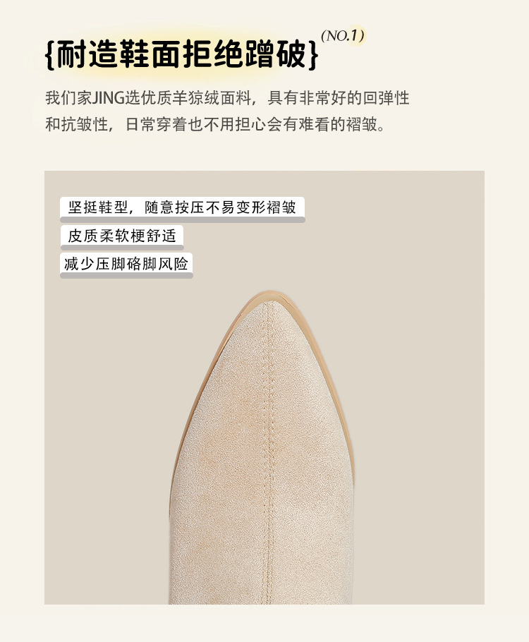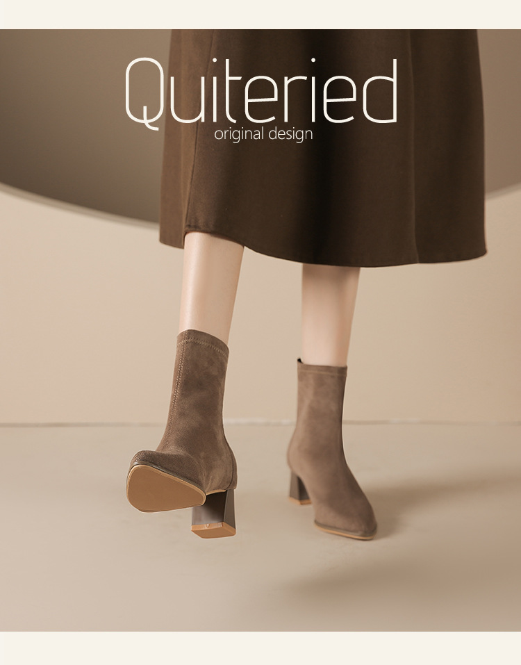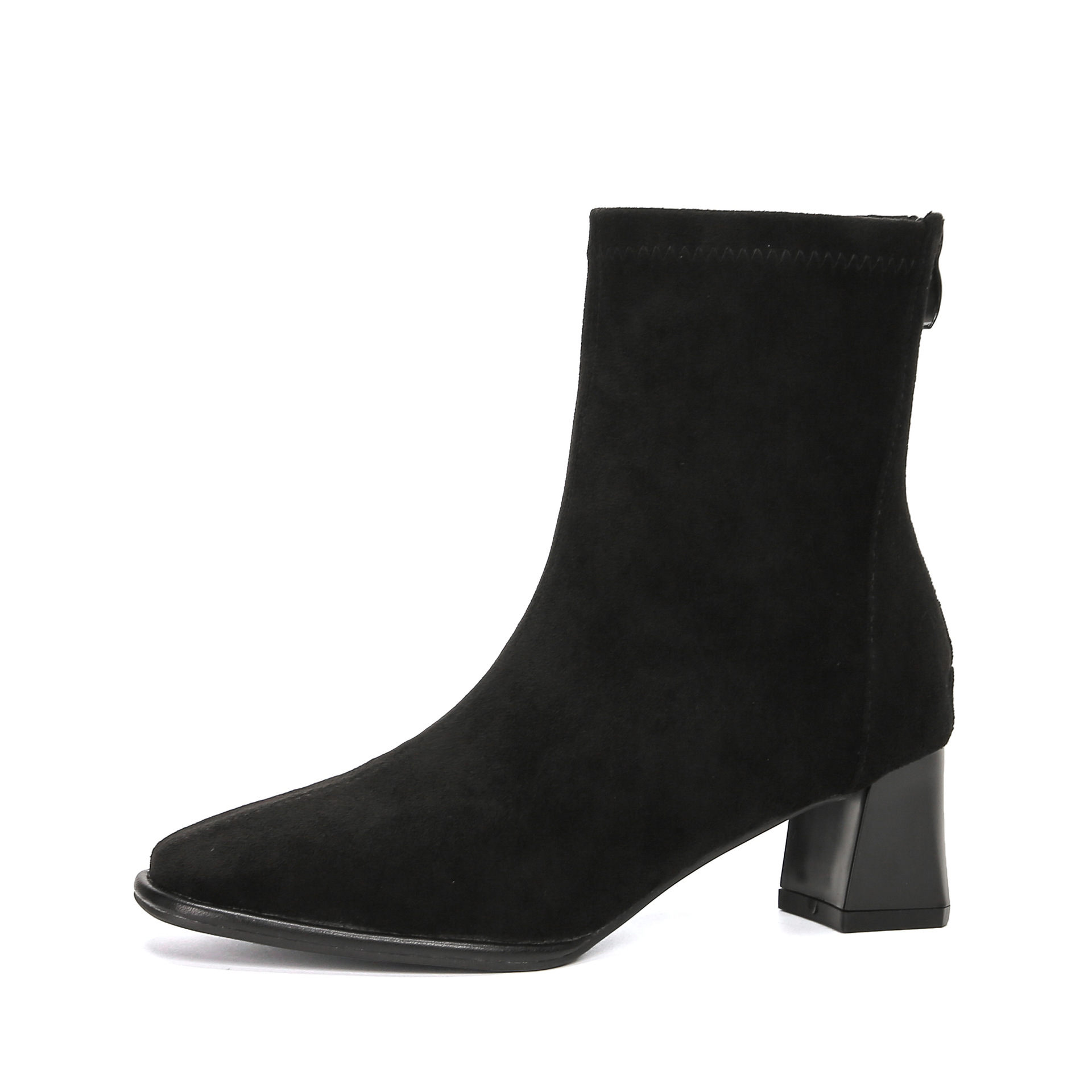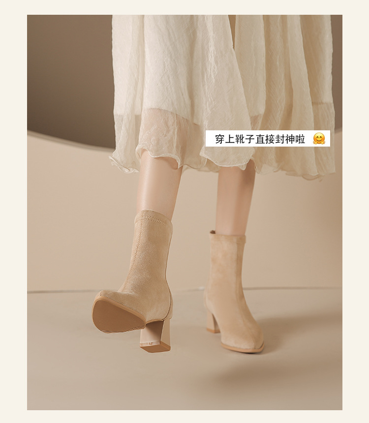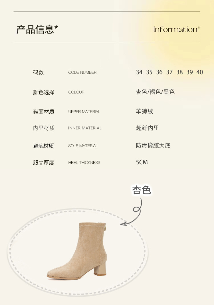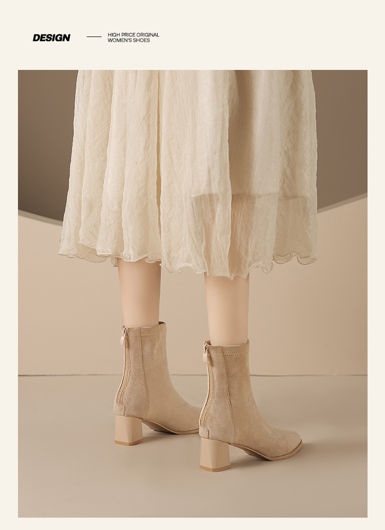 5cm 굽 높이, 사이즈 31-40, 뾰족코, 미들굽, 숏부츠, 가을/겨울용, 뒷지퍼, 스웨이드, 굵은 굽, 슬림핏 부츠