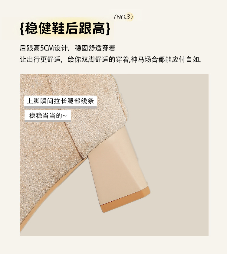 5cm 굽 높이, 사이즈 31-40, 뾰족코, 미들굽, 숏부츠, 가을/겨울용, 뒷지퍼, 스웨이드, 굵은 굽, 슬림핏 부츠스토어 가기