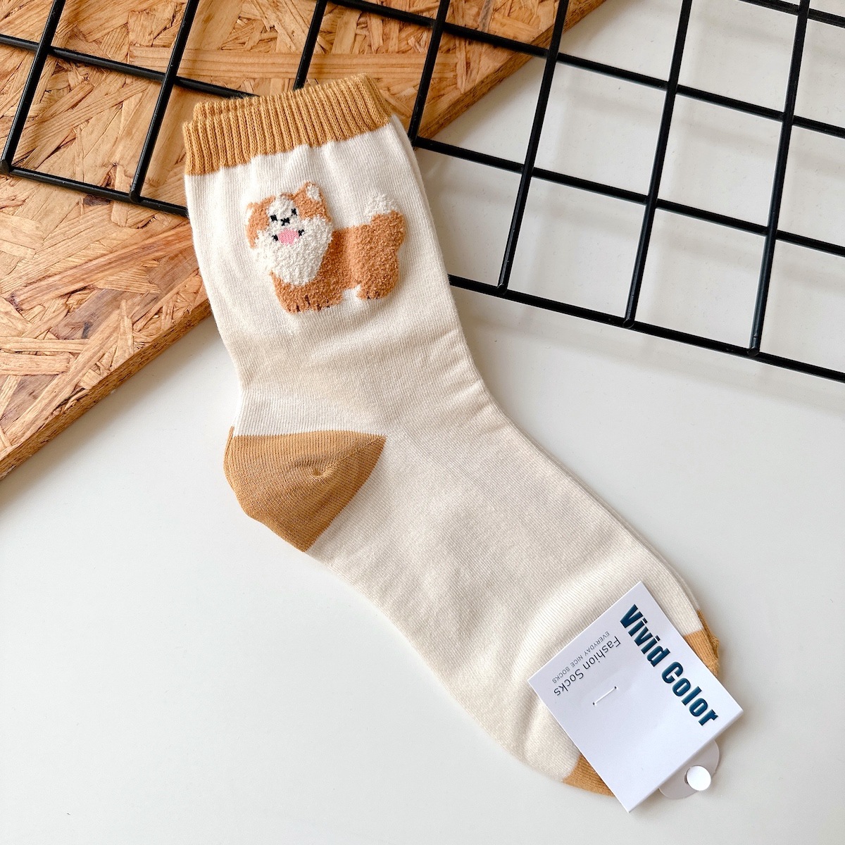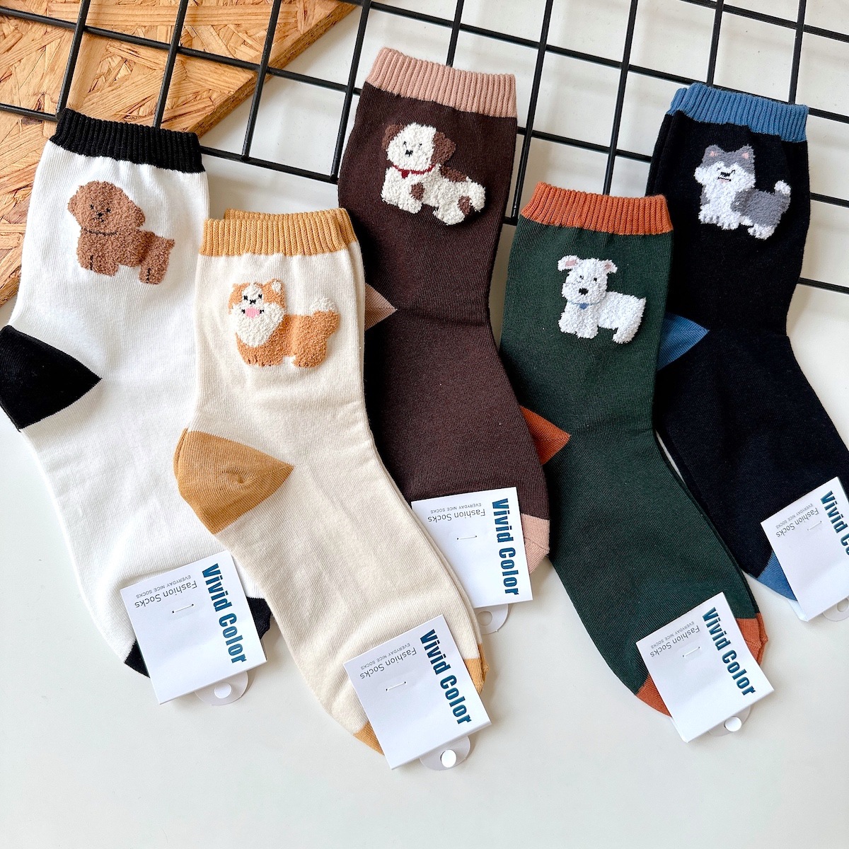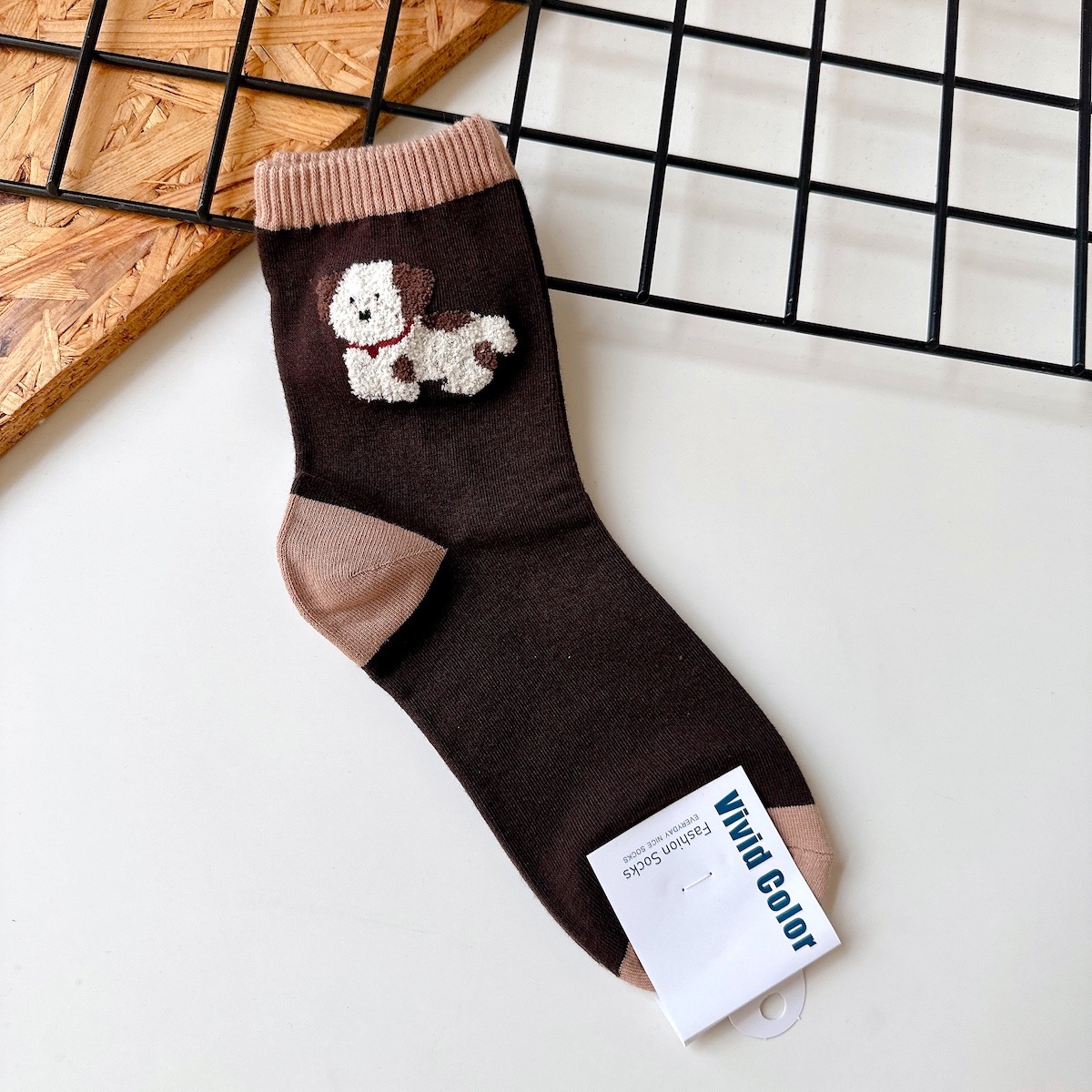 한국 컬러 매칭 스타킹 여성 2435 가을과 겨울 새로운 몰려 강아지 만화 소녀 양말 통기성 숙녀 양말스토어 가기