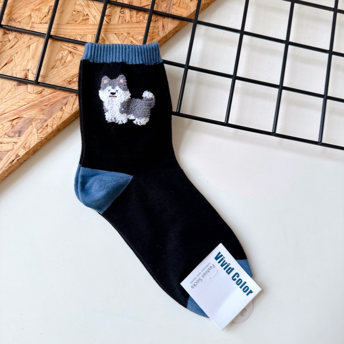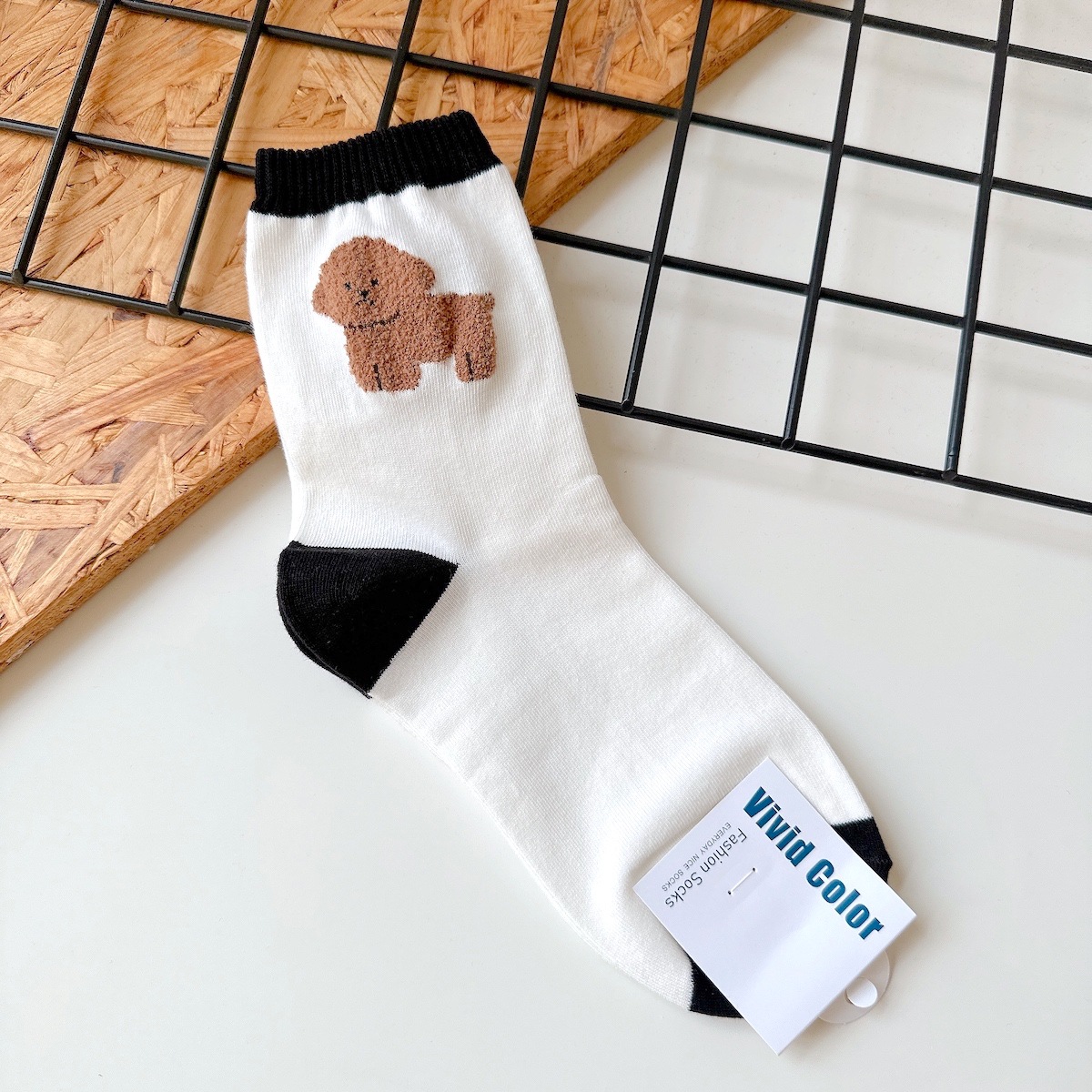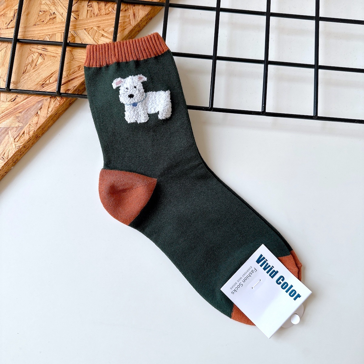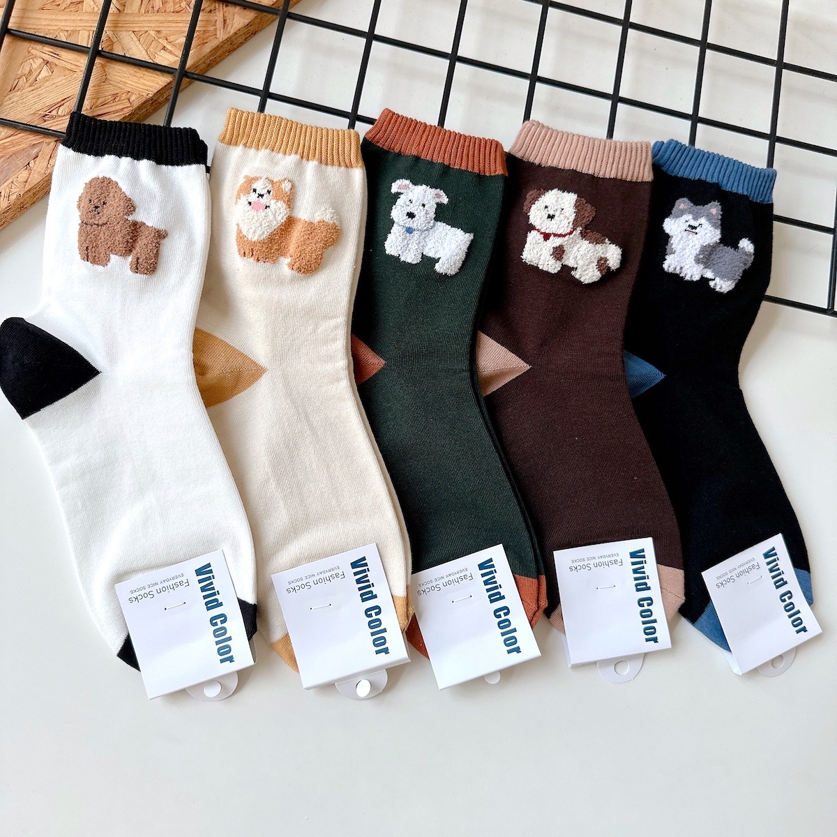 한국 컬러 매칭 스타킹 여성 2435 가을과 겨울 새로운 몰려 강아지 만화 소녀 양말 통기성 숙녀 양말스토어 가기