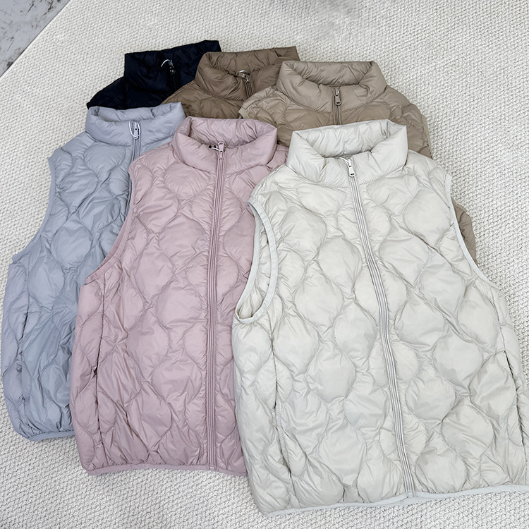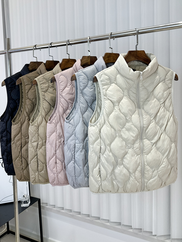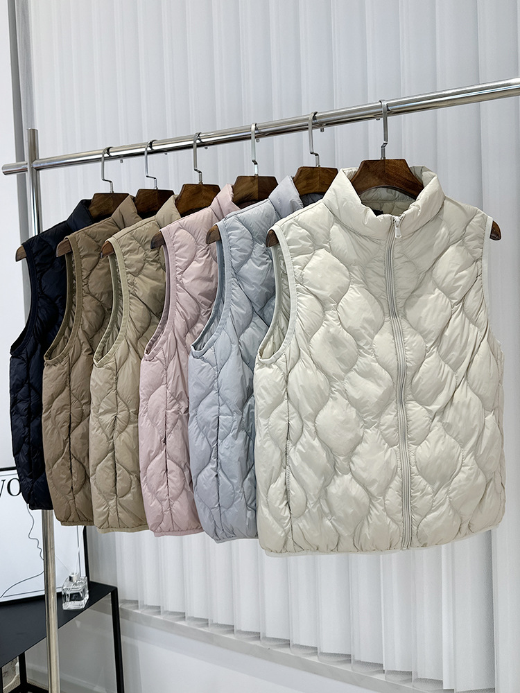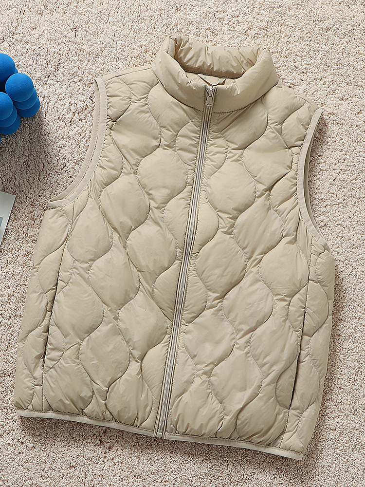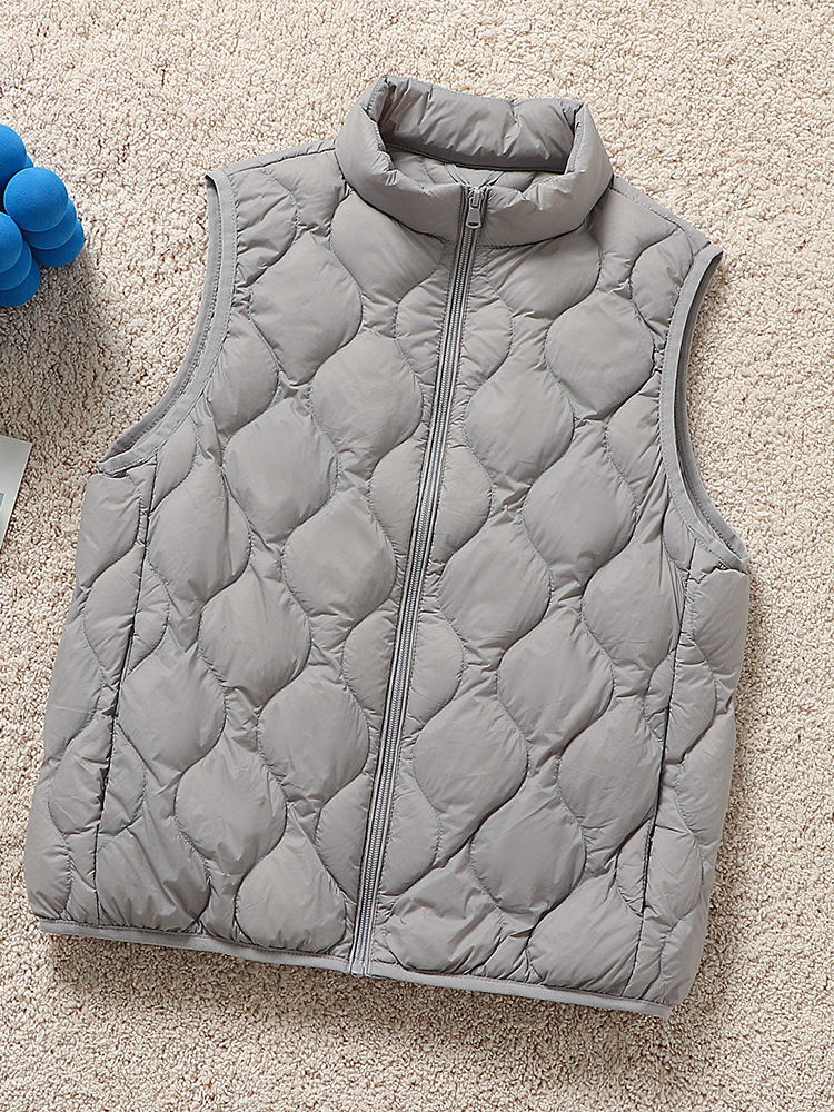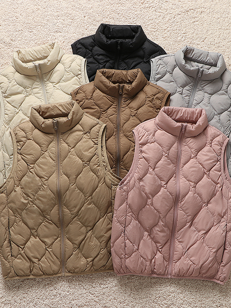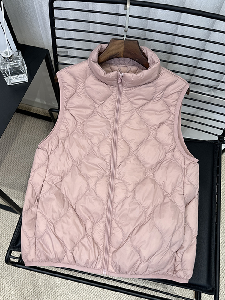 중년 및 노인 라이트 다운 재킷 조끼 여성용 짧은 스탠드 칼라 플러스 사이즈 따뜻한 흰색 오리 소매 편리한 양복 조끼스토어 가기