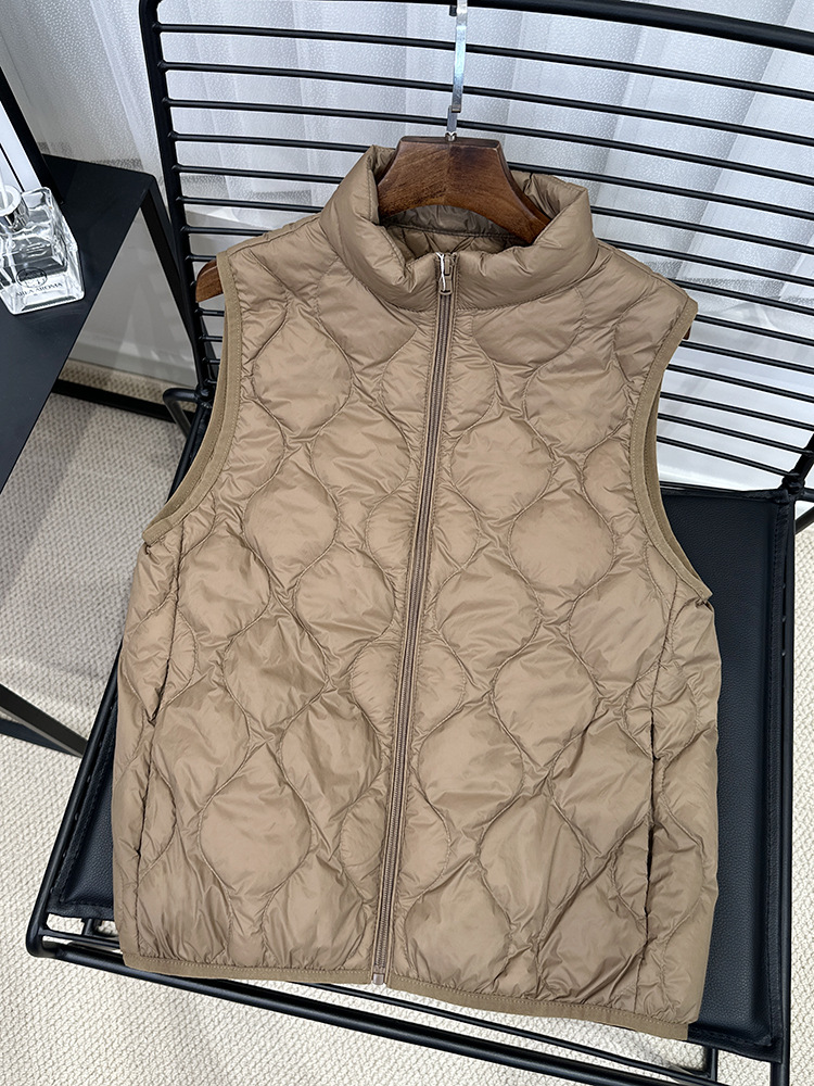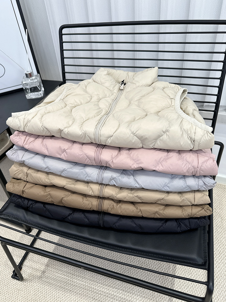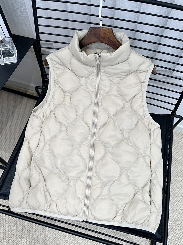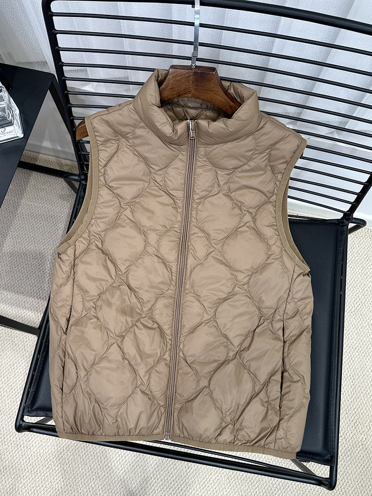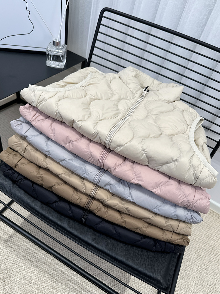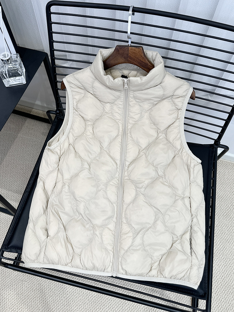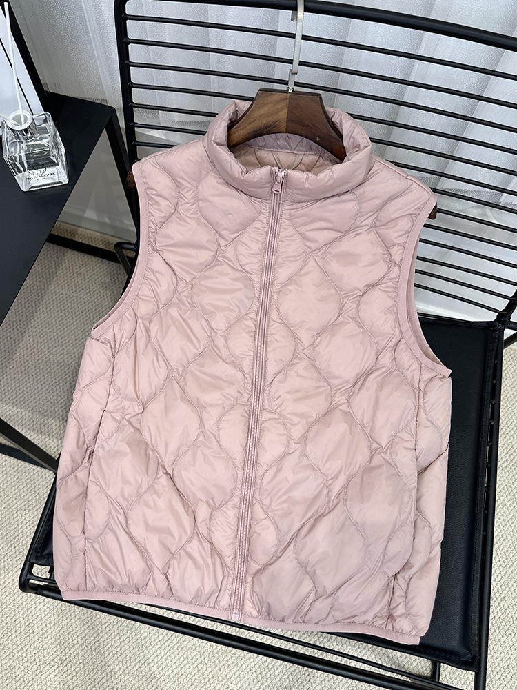 중년 및 노인 라이트 다운 재킷 조끼 여성용 짧은 스탠드 칼라 플러스 사이즈 따뜻한 흰색 오리 소매 편리한 양복 조끼스토어 가기
