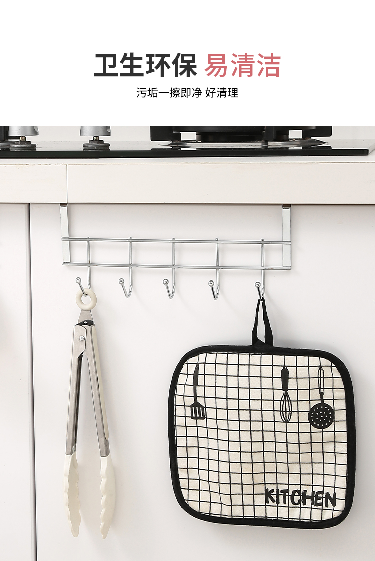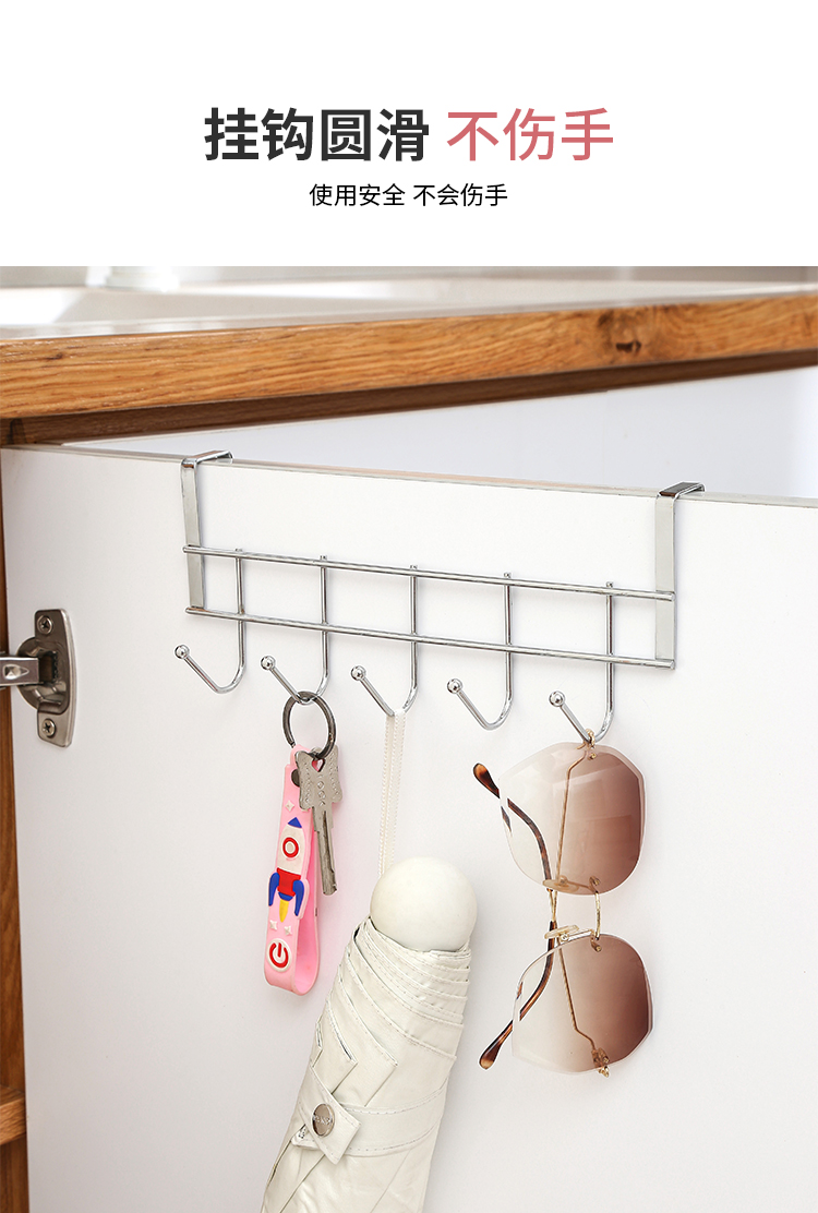 스테인레스 스틸 캐비닛 도어 후면 5 후크 무료 주방 보관 침대 측면 교수형 의류 후크 스토리지 랙 후크 옷장 하중 베어링